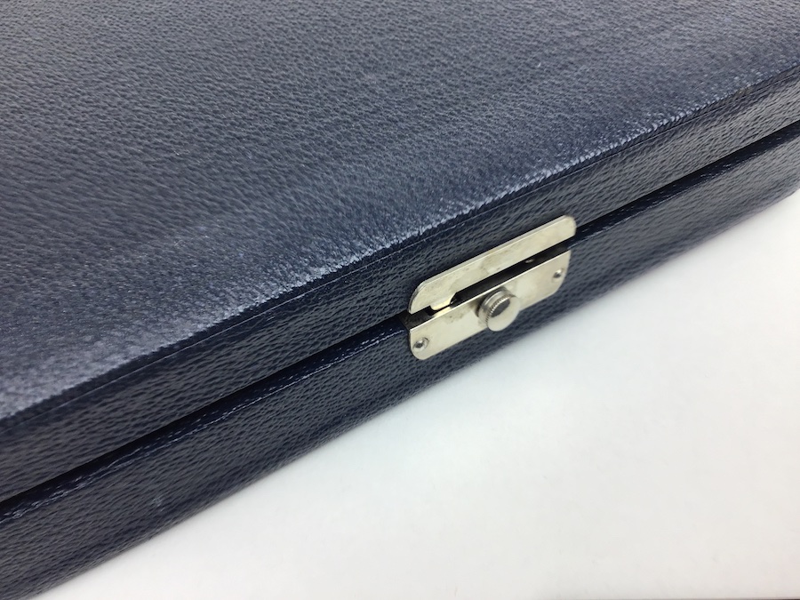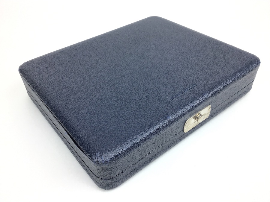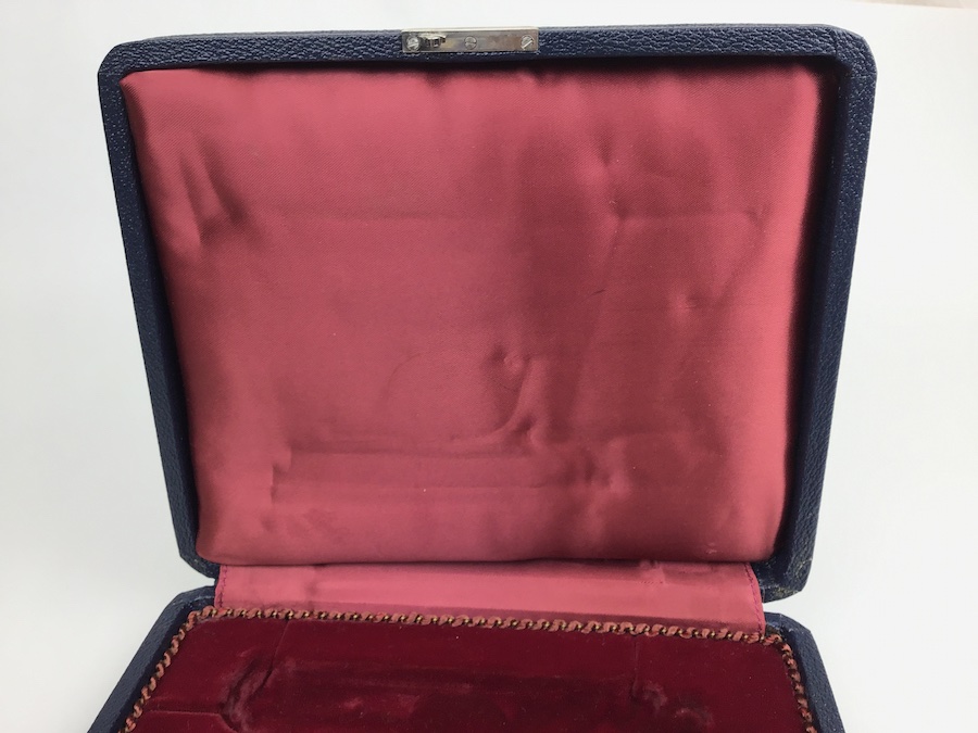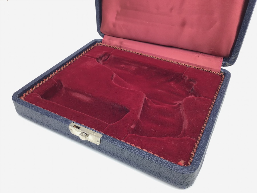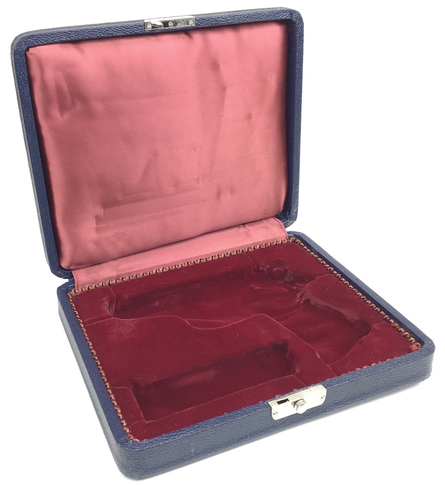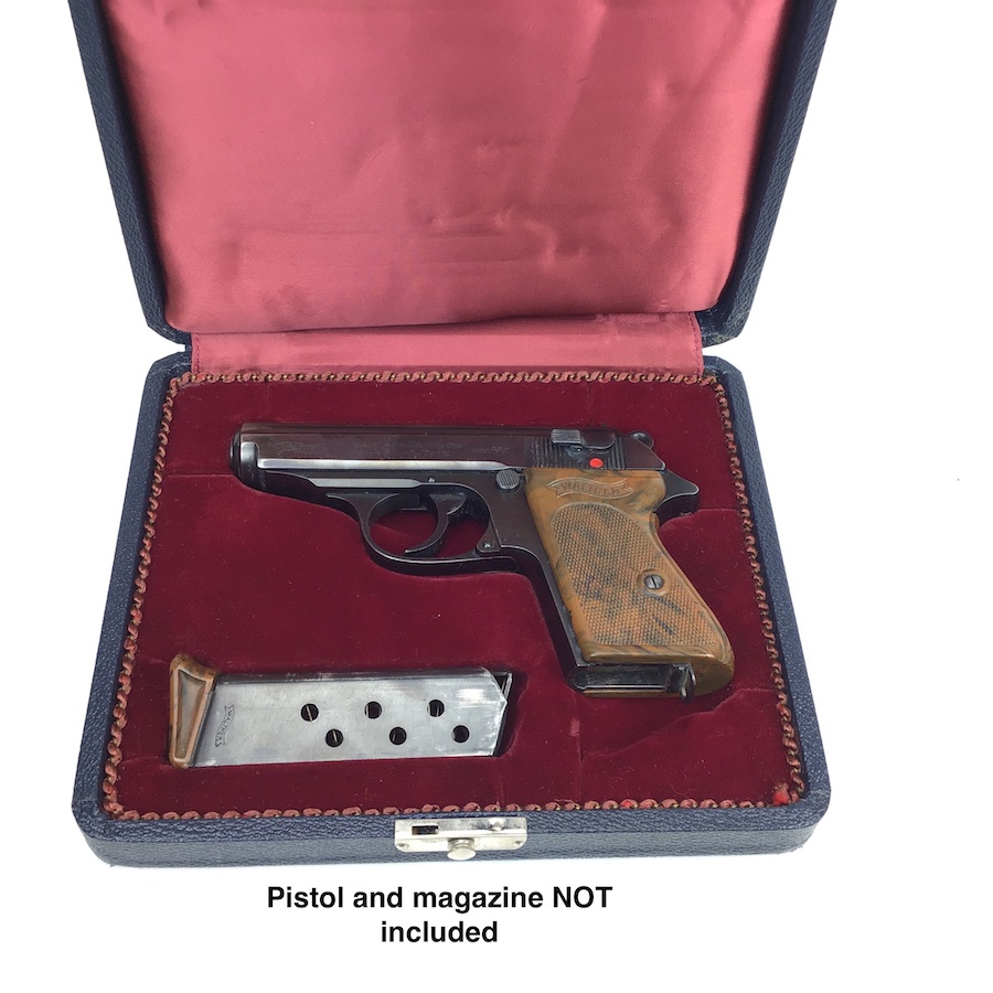 3/13/20 – This is an original Walther PPK presentation case made after WW2. The case has blue leather exterior in minty condition, and a red velvet / silk interior. No rips, tears or stains on the interior or exterior. Strong secure hinges and functional front clasp. Made in Germany stamped on the back. Great for a valuable collectible piece from any time period. Pictured pistol and mag not included.