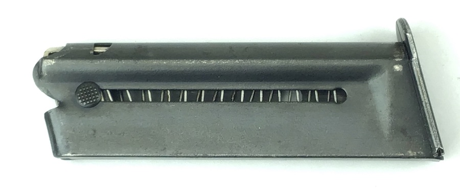 2/25/20 – Original and excellent condition, Walther PPK .22 caliber magazine. Un-marked. Beautiful bluing with strong spring. No markings on the magazine. Either late WW2 production or immediate / early post war.
