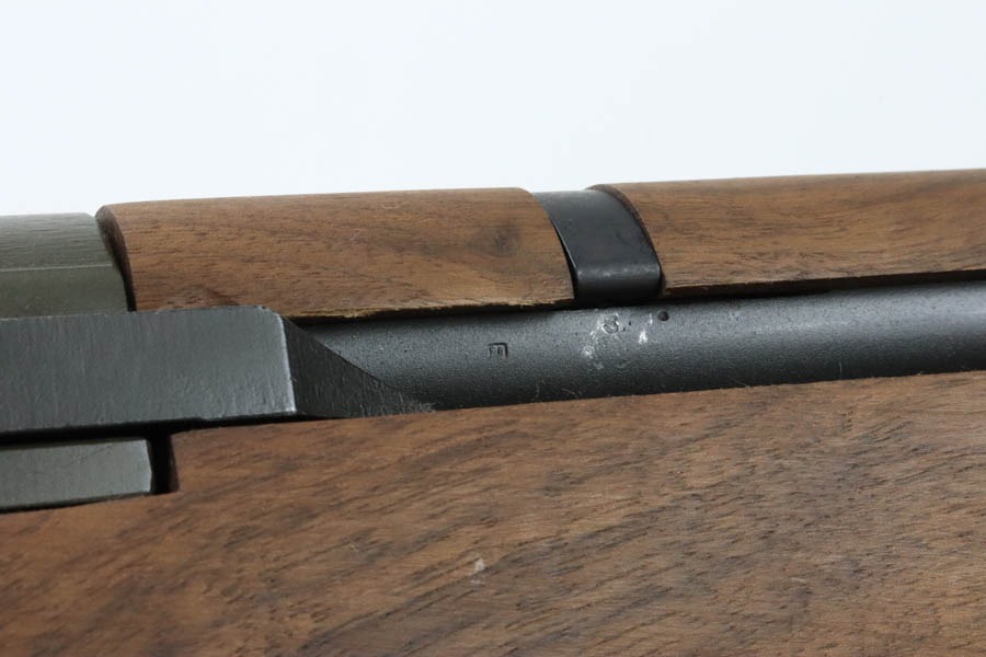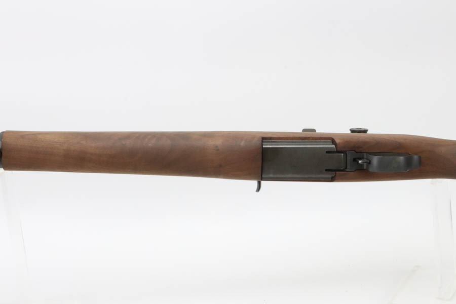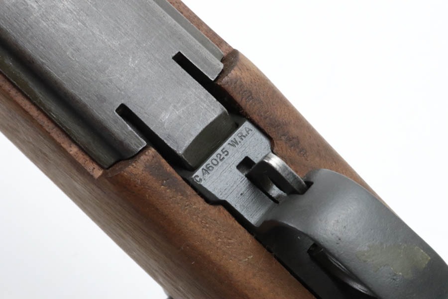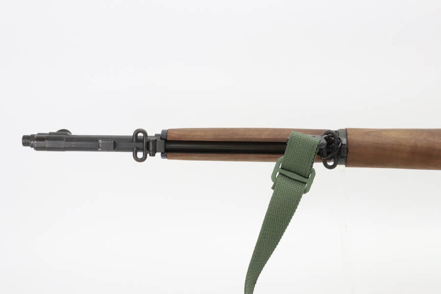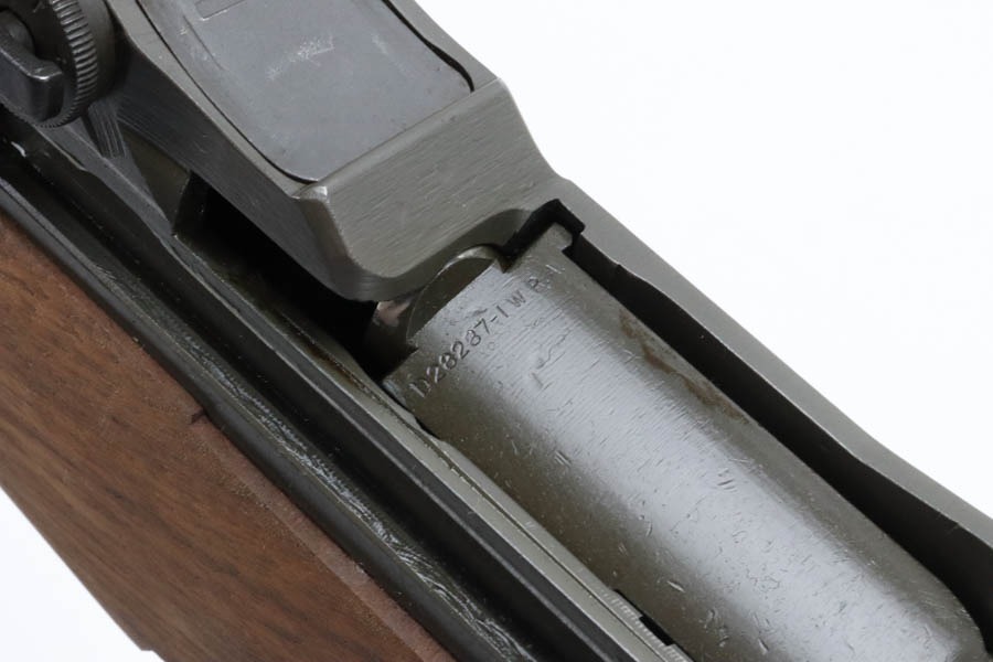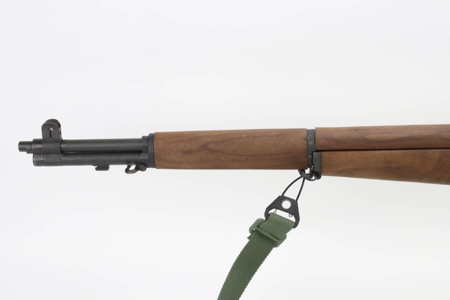 11/21/24 – This is a minty example of a Pre-Pearl Harbor Winchester M1 Garand. The serial number on the receiver dates it to about October of 1941. Correct Winchester-marked parts with a Winchester barrel. Replaced wood stock and hand guard. Fitted with a modern canvas sling. It comes with a few spare parts (ported gas plug, op rod spring, clip latch spring), a cleaning kit, and a bunch of Enbloc clips. The metal parts show virtually no signs of finish loss, and the wood furniture is mint. The bore has pretty good rifling, but there is spotty surface oxidation in the grooves. Throat reading: 1. Muzzle reading: 1.
