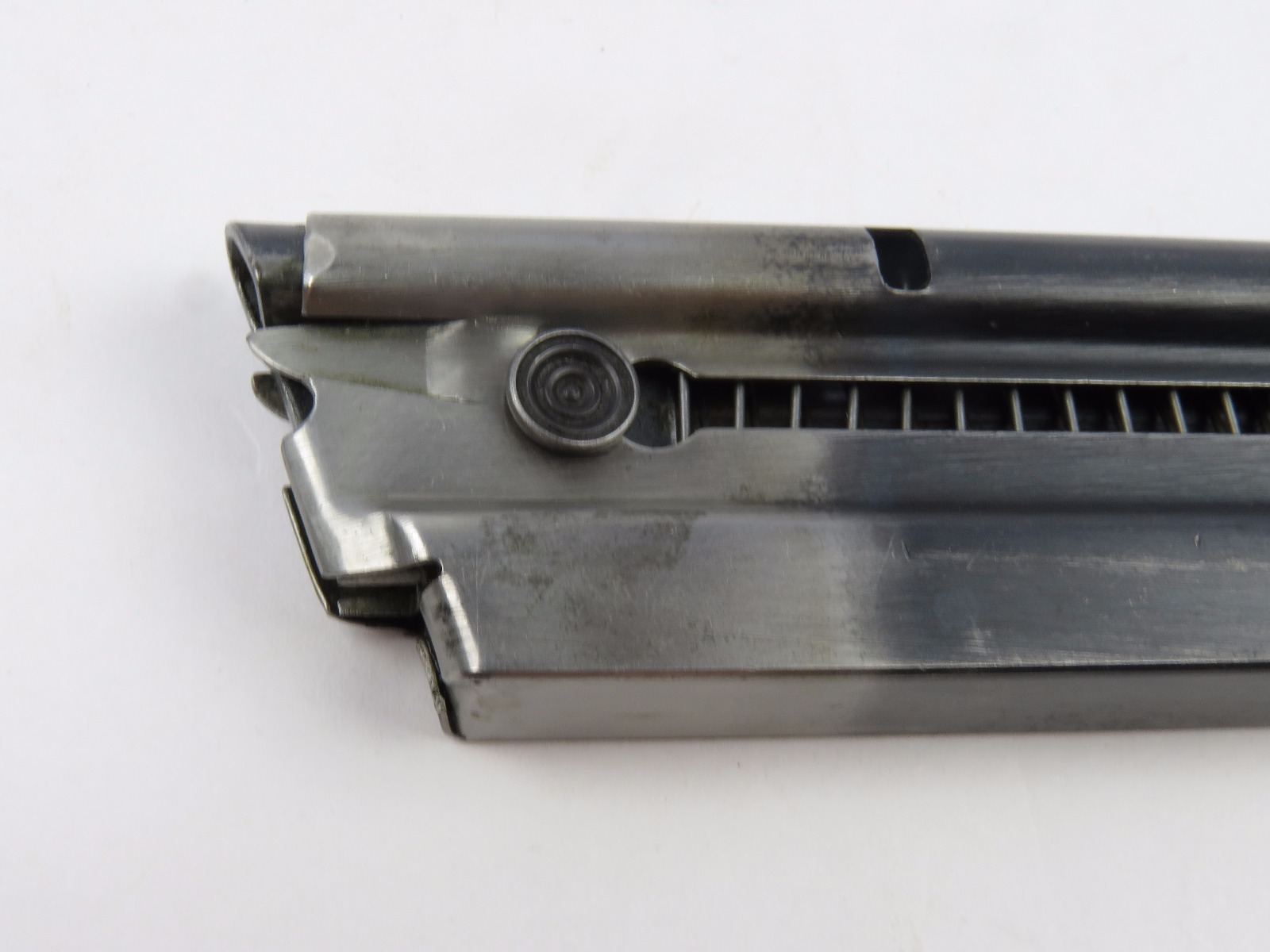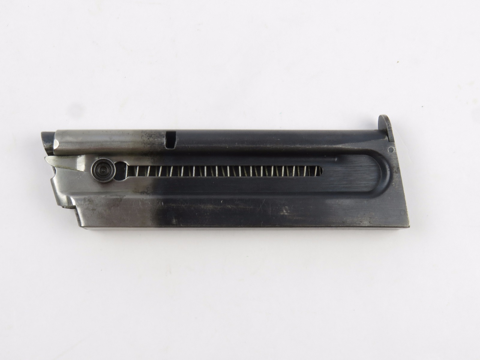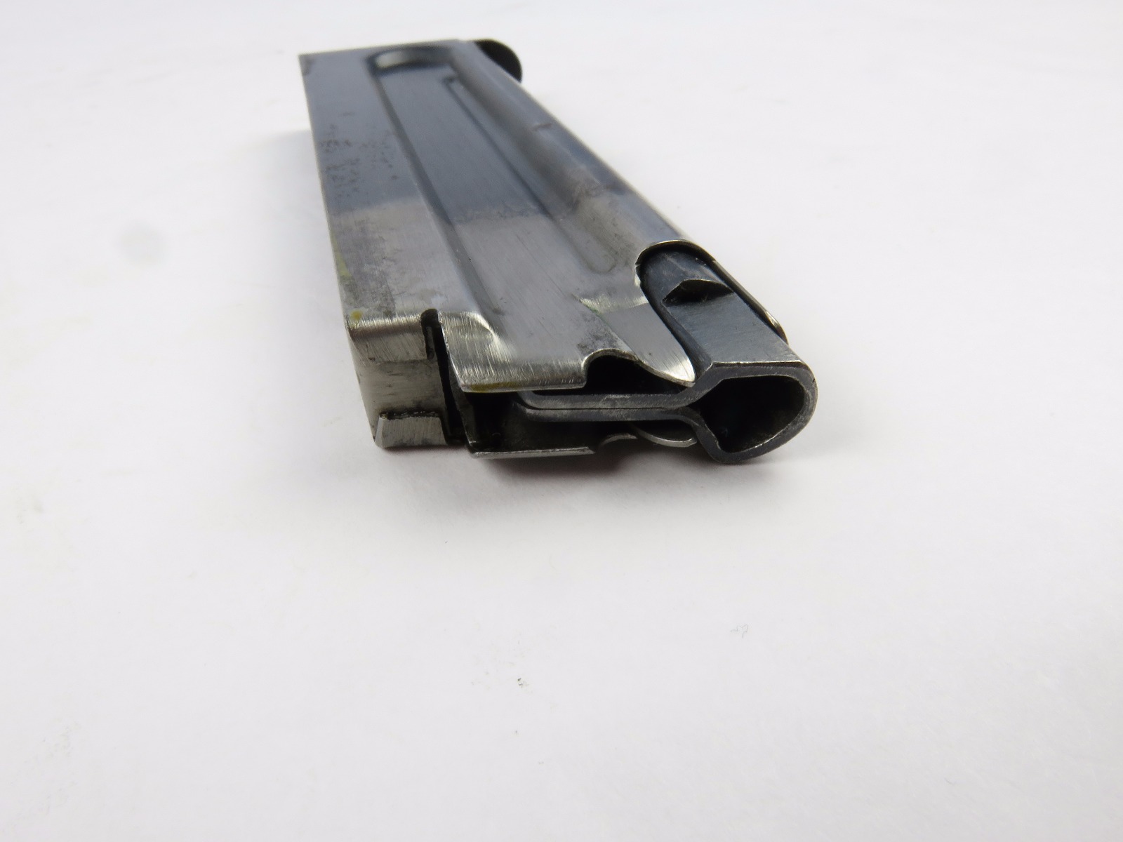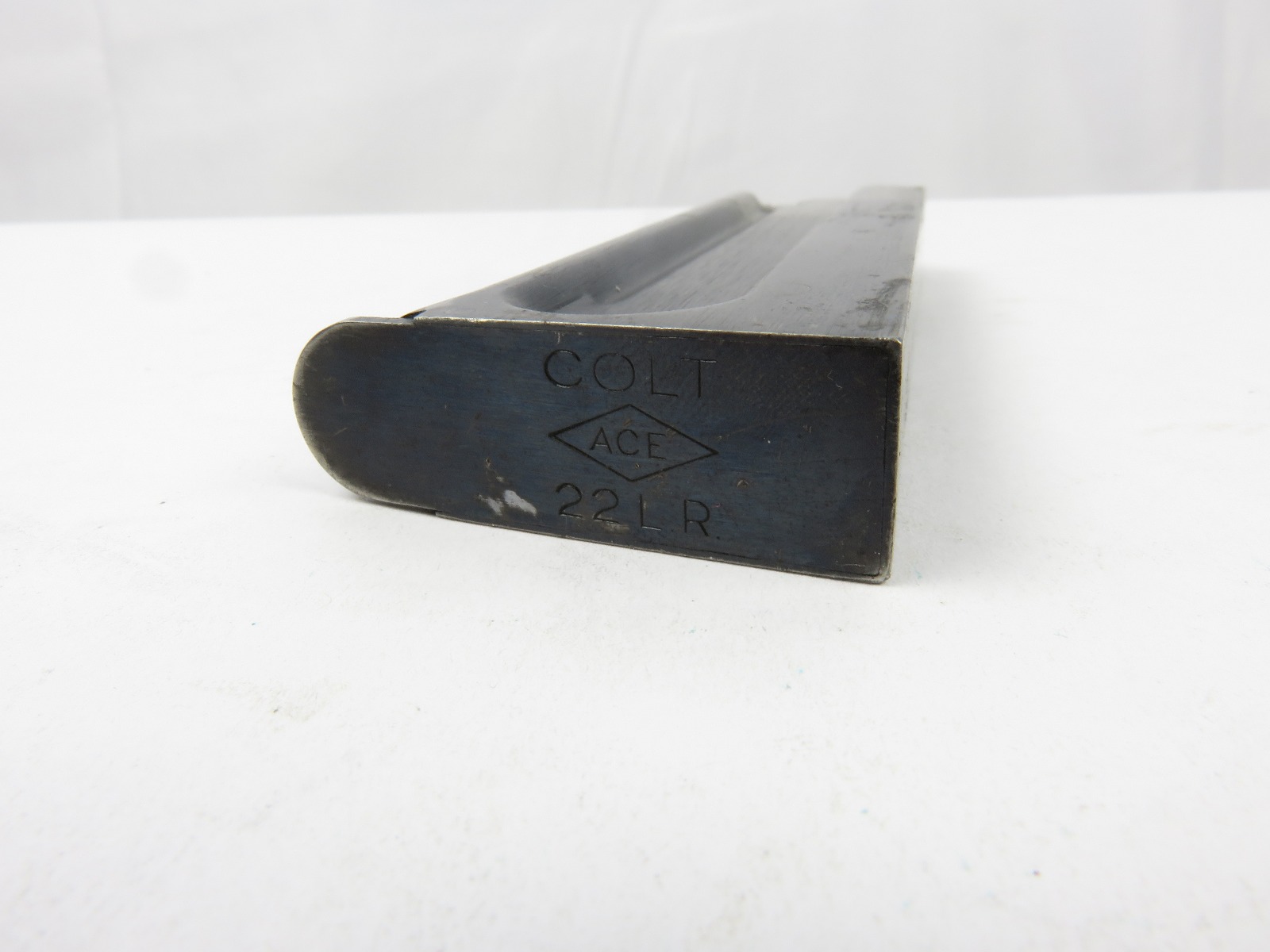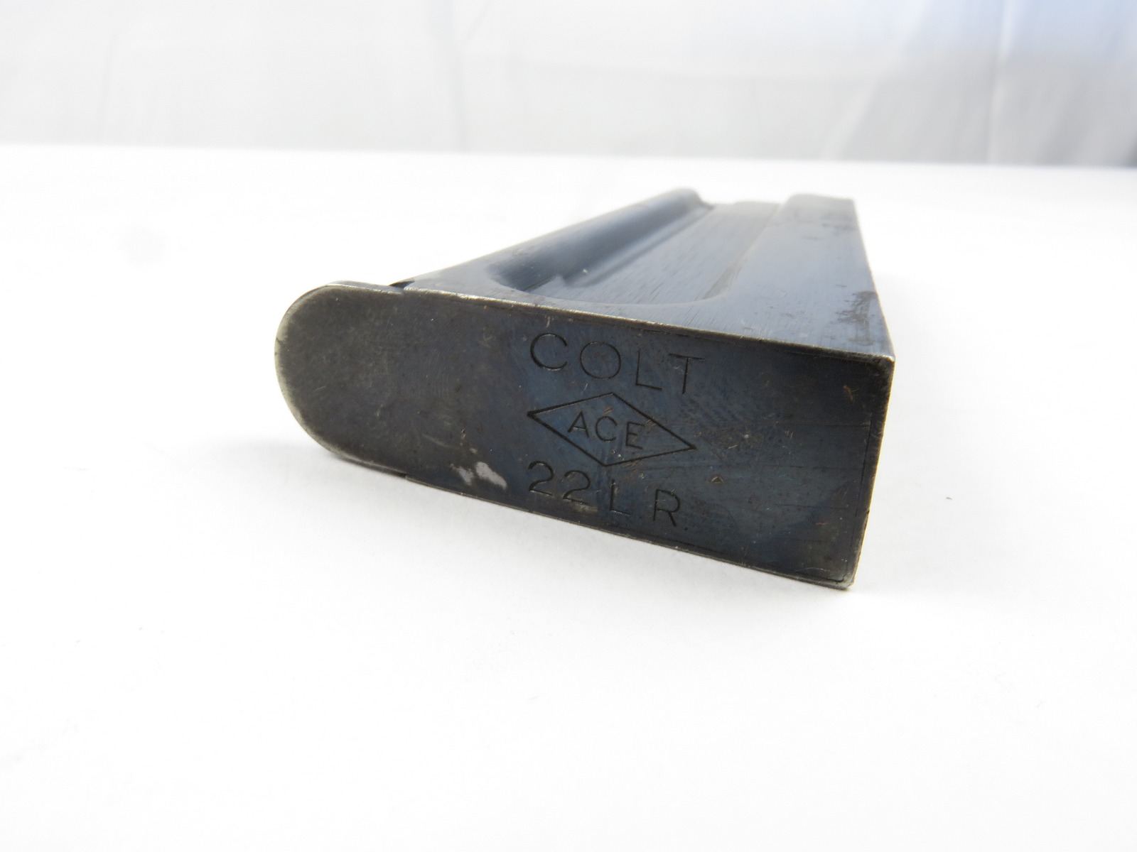 8/9/17 – This is an original pre war .22 caliber Colt ACE magazine. The magazine is maker stamped and designated to <ACE> on the floorplate, and the frame is a nice two-tone. The spring is strong and fully functional. The magazine is in excellent condition with no rust or pitting. Guaraneted original and authentic.