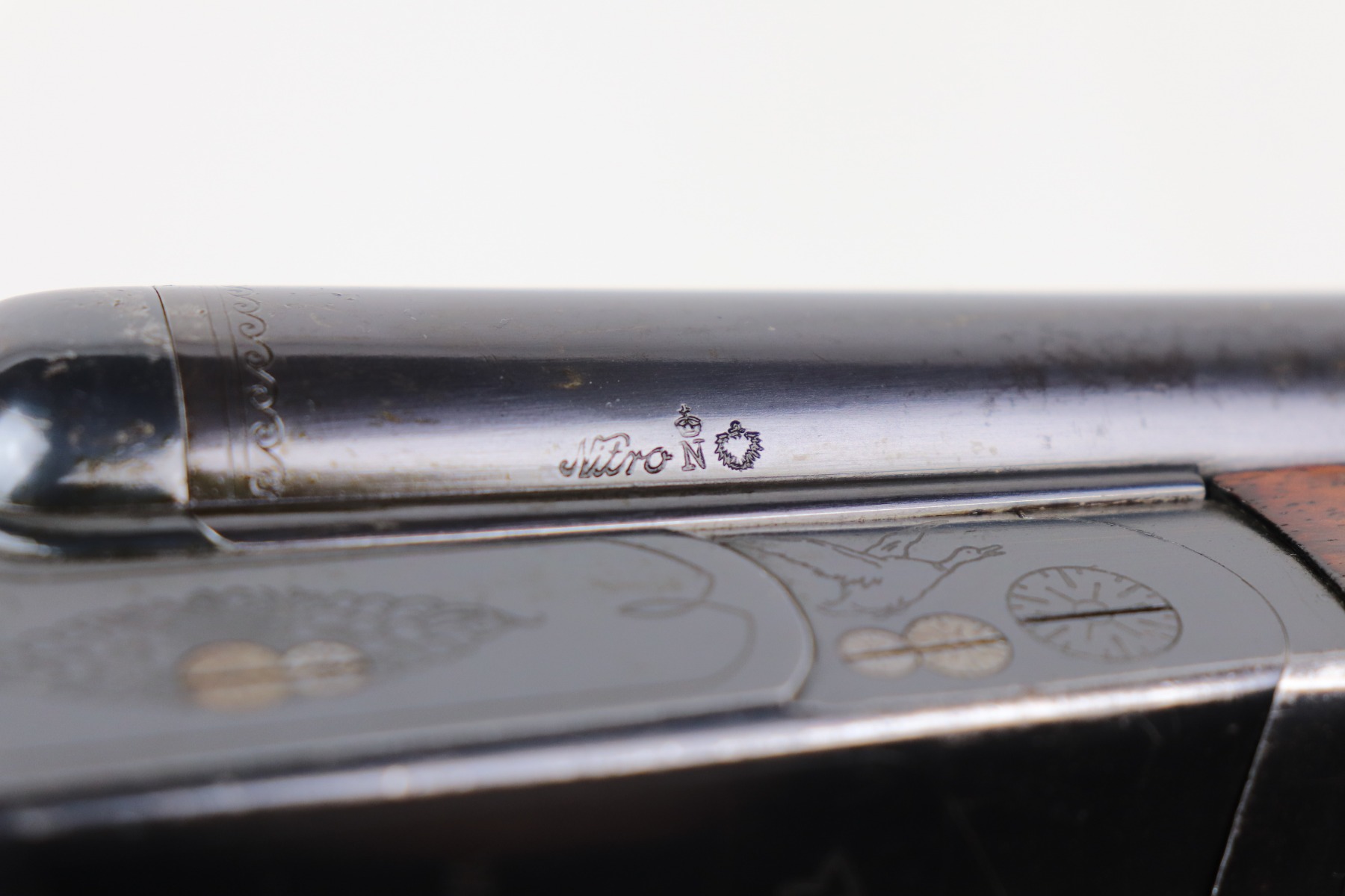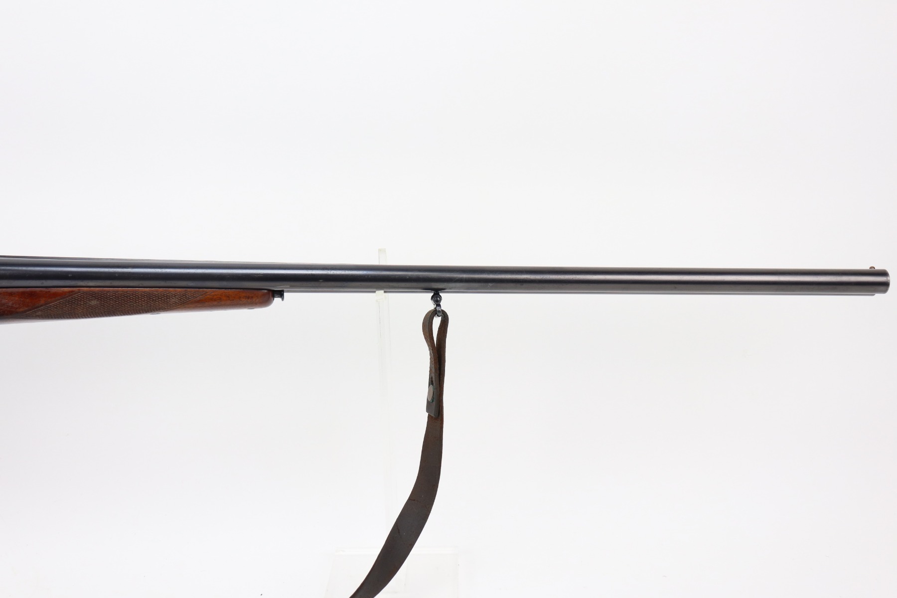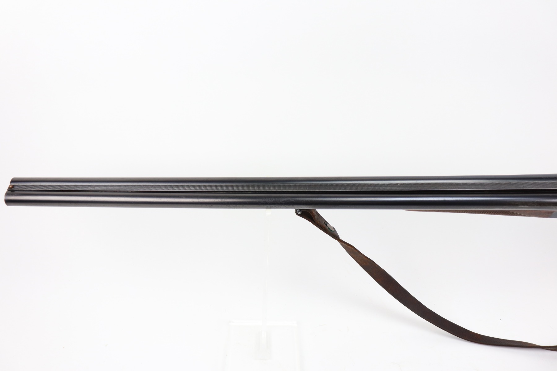 4/8/21 – This is a very nice example of a Walther Side by Side Shotgun, chambered in 16 GA. It was manufactured and sold in the commercial market in December of 1933. The gun is all matching and has the proper “Crown N” commercial proofs. The gun features a Walther banner and partial engraving on the sides of the receiver. It comes with a period-correct sling. The gun has retained most of its original finish. There is spotty wear here and there, especially on the high edges of the receiver and left side of the barrel. Spotty freckling along the barrel. The stock is excellent – just very minor dings and dents here and there. The bores are mint. 28.5 inch barrels. 14.5 inch LOP.
