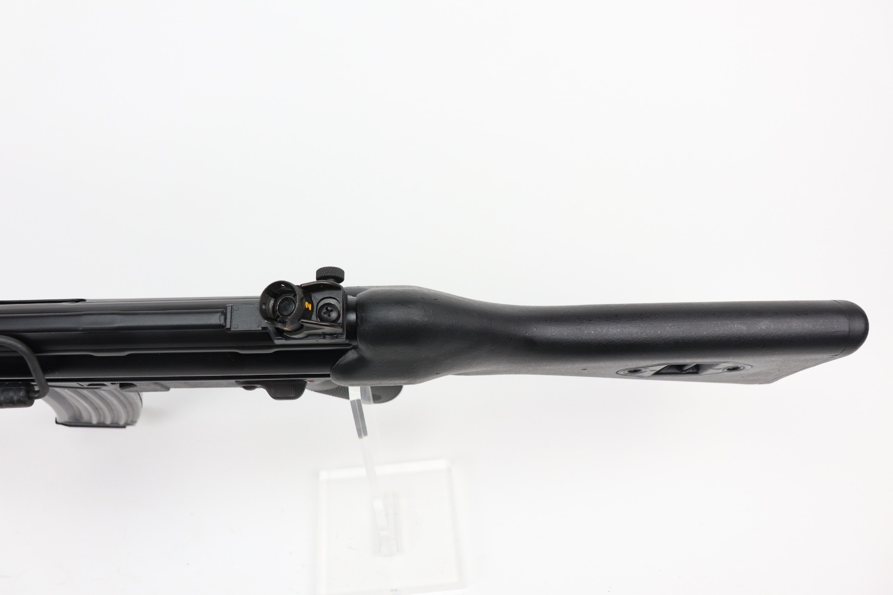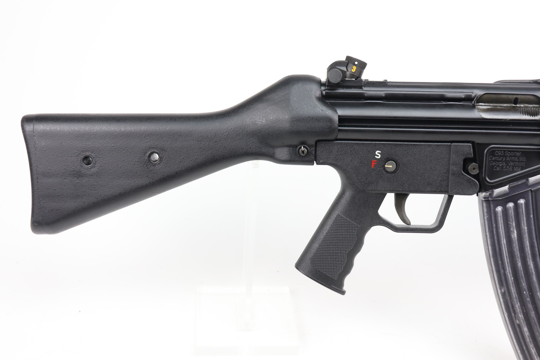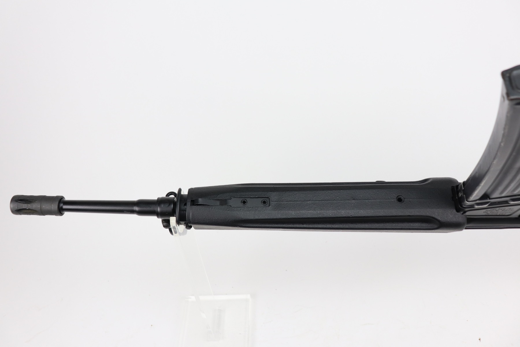 3/8/21 – This is a mint example of a C93 semi auto rifle. The parts were made by Century Arms, but the gun was assembled by PTR. It has a desirable scalloped or serrated bolt assembly. The gun comes with a serialized PTR quality inspection certificate, owners manual, three 45-rd magazines, and a gun lock. The gun is fully functional and in mint, like-new condition. No apparent signs of wear. The bore is stone-mint.
