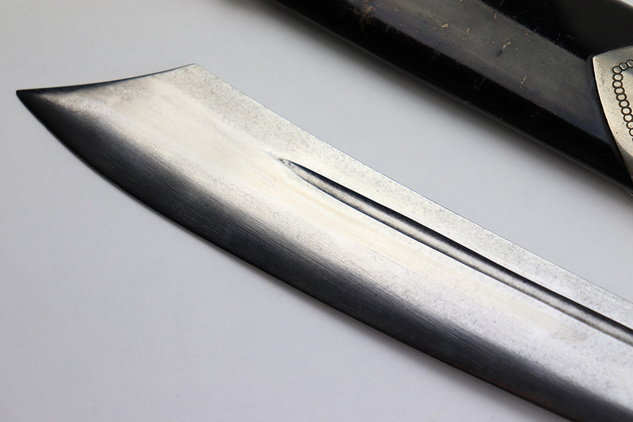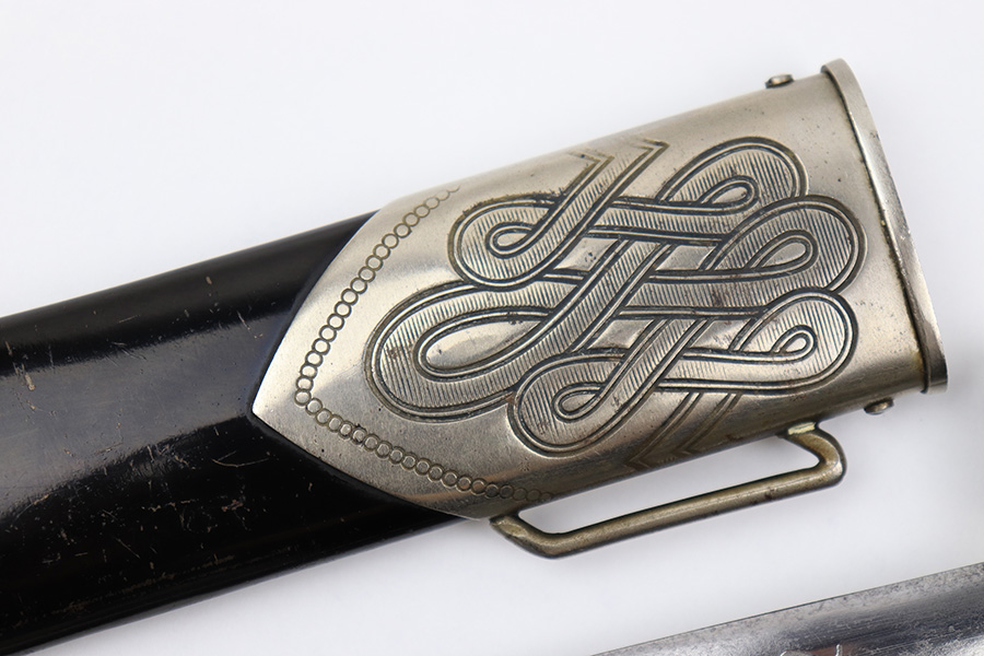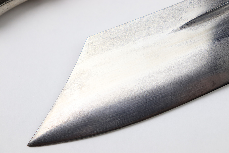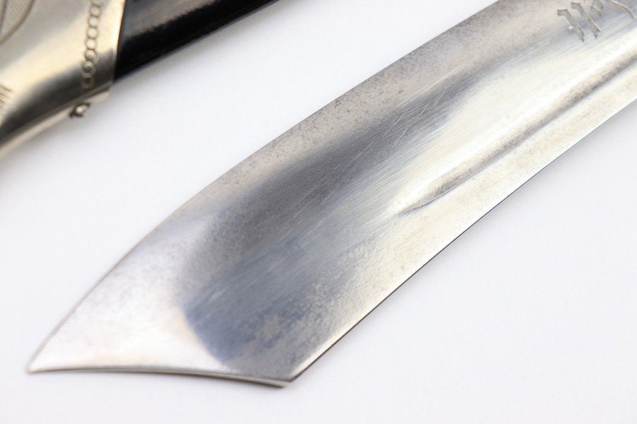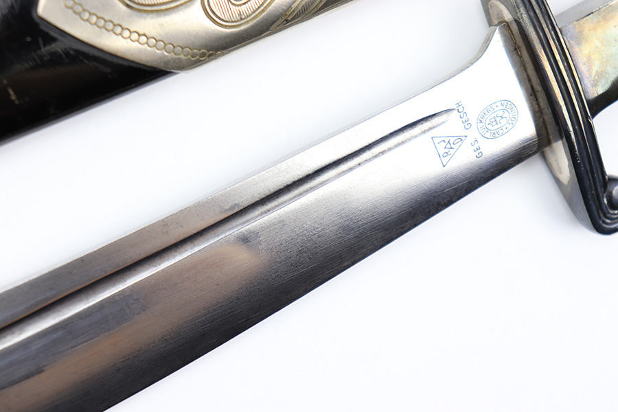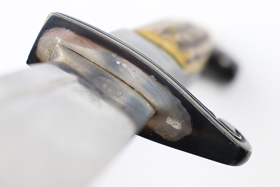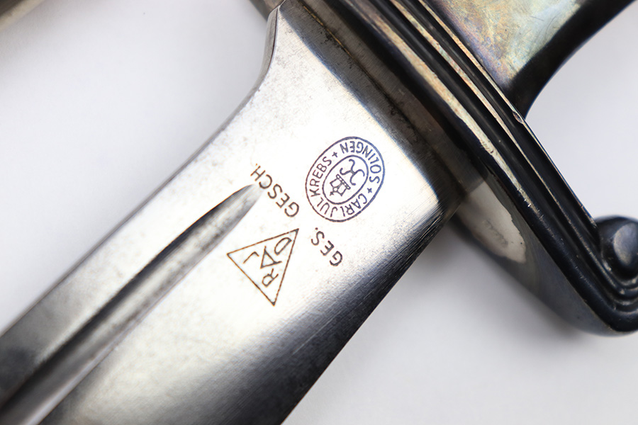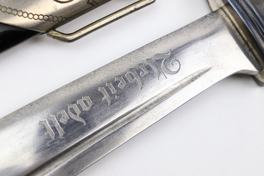 7/5/22 – This is an original WW2 German RAD (German Labor Service) Hewer knife. The Hewer is marked “Arbeit adelt” on one side, and maker stamped on the other, as shown. There’s mild speckling and spotty surface patina throughout the blade. This is typical aging wear. There’s no rust, pitting, or sharpening present. The handle still has the original finish in tact as shown. There’s some mild surface patina and discoloration but overall in great shape. The stag handle has no cracks or chips. Comes with an original scabbard that’s also in great condition with some mild aging patina but no major issues. A great, straightforward example.