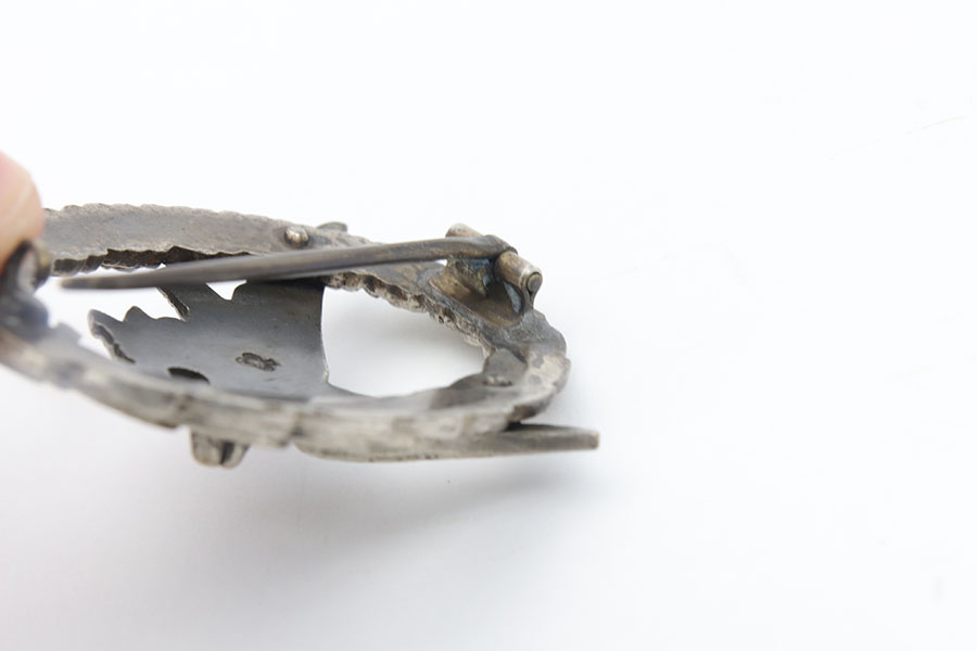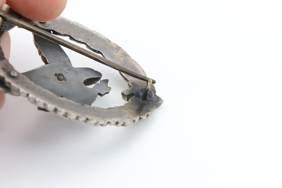 10/2/19 – This is an original Luftwaffe tail gunner (or air gunner) / radio operator badge from WW2. These are fairly scarce and desirable badges, issued to flight engineers, radio operators and air gunners. This badge is two pieces of metal with a maker stamp “BSW” on the back of the eagle. The fastening pin and hook both appear to be replaced / repaired. The price has been adjusted accordingly (similar badges are found at $750+).