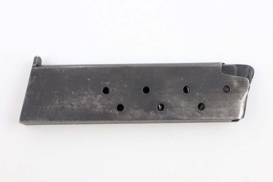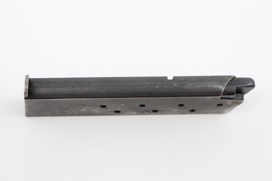 8/7/19 – This is a WW2 era production Radom P.35 magazine. The magazine has all original finish and a strong, functional spring. There’s some light finish loss / thinning of the original finish but no major issues. No waffen proof, but due to aging and style of finish we know this is WW2 original.
