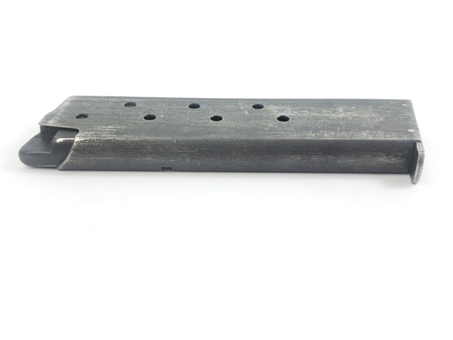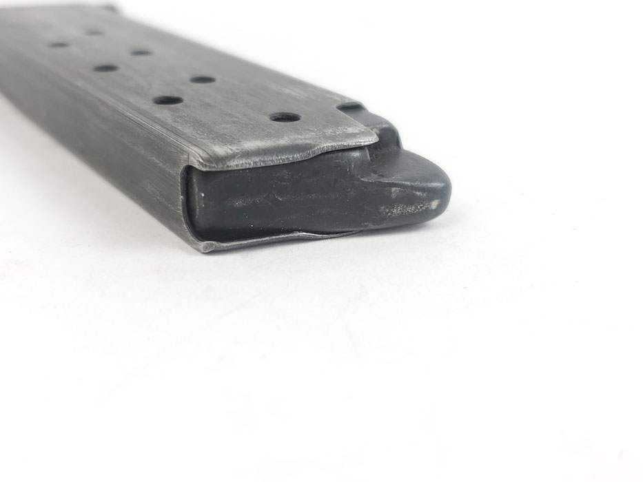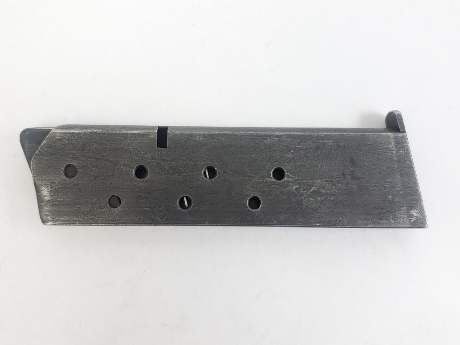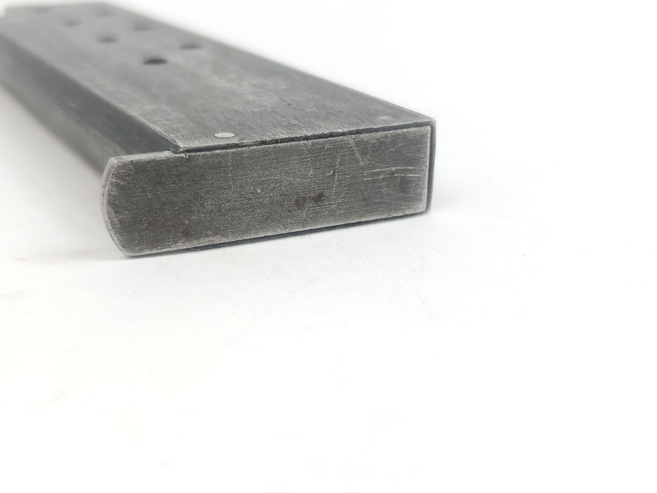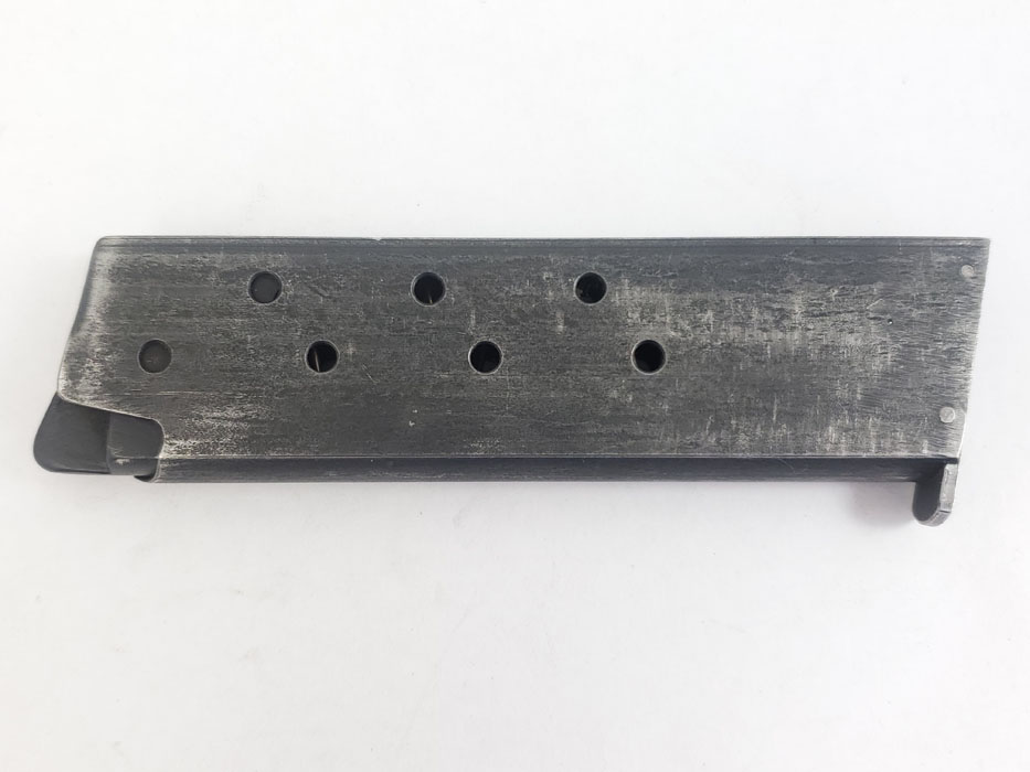5/21/20 – This is an original WW2 era Radom model P.35 magazine. The magazine has no proof stamps or markings, but shows proper qualities and finish of a WW2 production. There is some light finish loss on the magazine, as shown in photos, but there is no rust or pitting. Strong, fully functional spring.
