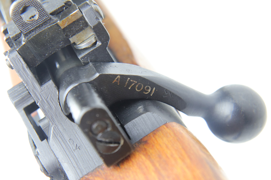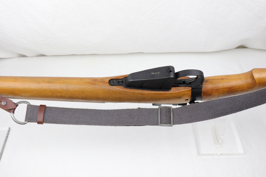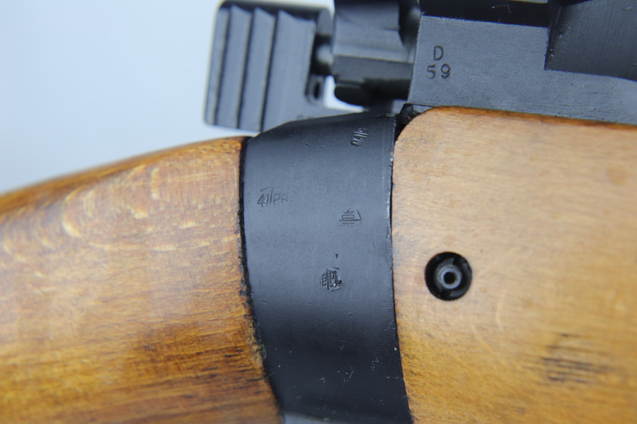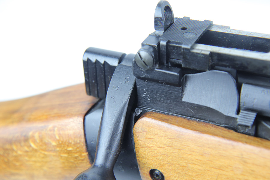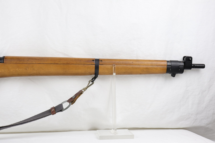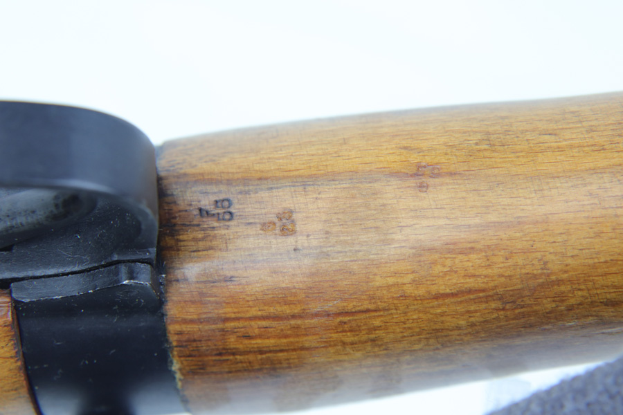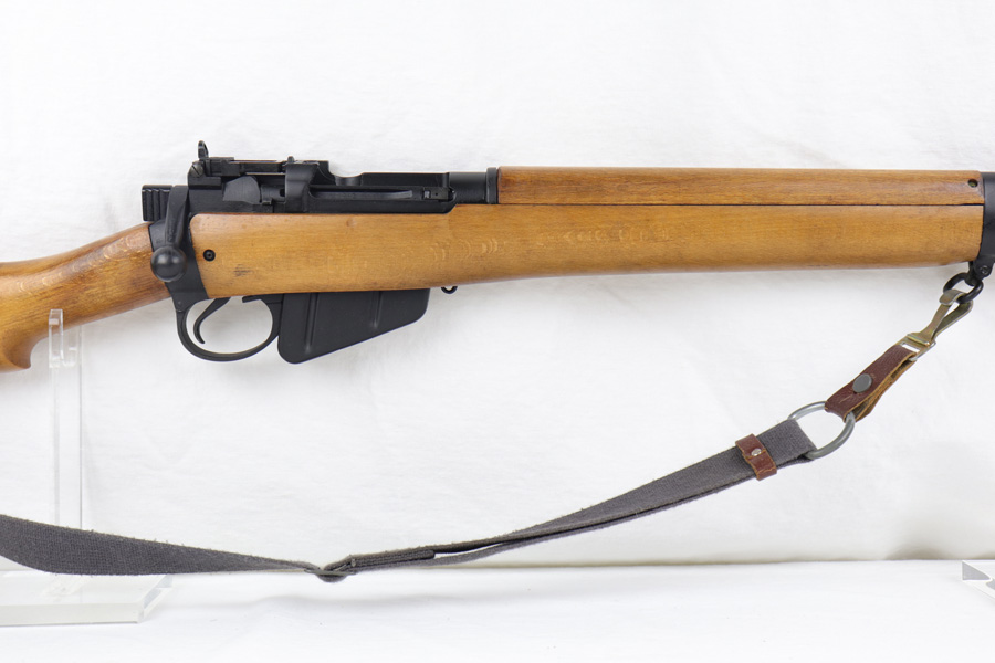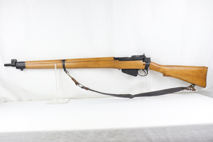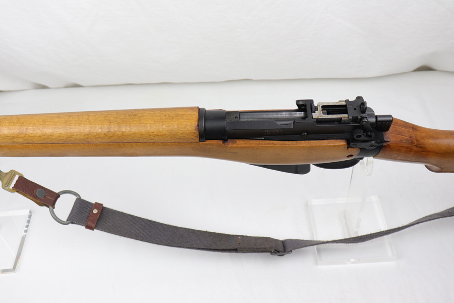 2/14/19 – This is a MINT, original 1955 production Enfield No. 4 Mk2 rifle. It was made in connection with an RAF contract in 1955. RAF stands for Royal Air Force, England’s air force throughout WWII. It is rare, as only 20,000 of them were produced. The rifle is in factory, unissued condition with almost no signs of wear except very minor discolorations on the bolt. Otherwise, the metal finish is completely in tact. The blonde wood stock is minty with no major scratches or chips. There is a micro import stamp on the underside of the barrel, near the muzzle. All matching parts, including the magazine. The bore is mint, 10/10.