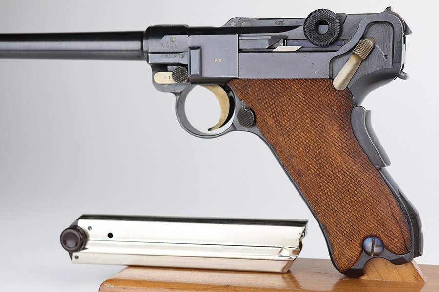 SOLD – Rare 1920/23 Swiss DWM Luger – 12.75in Barrel
