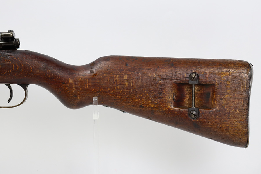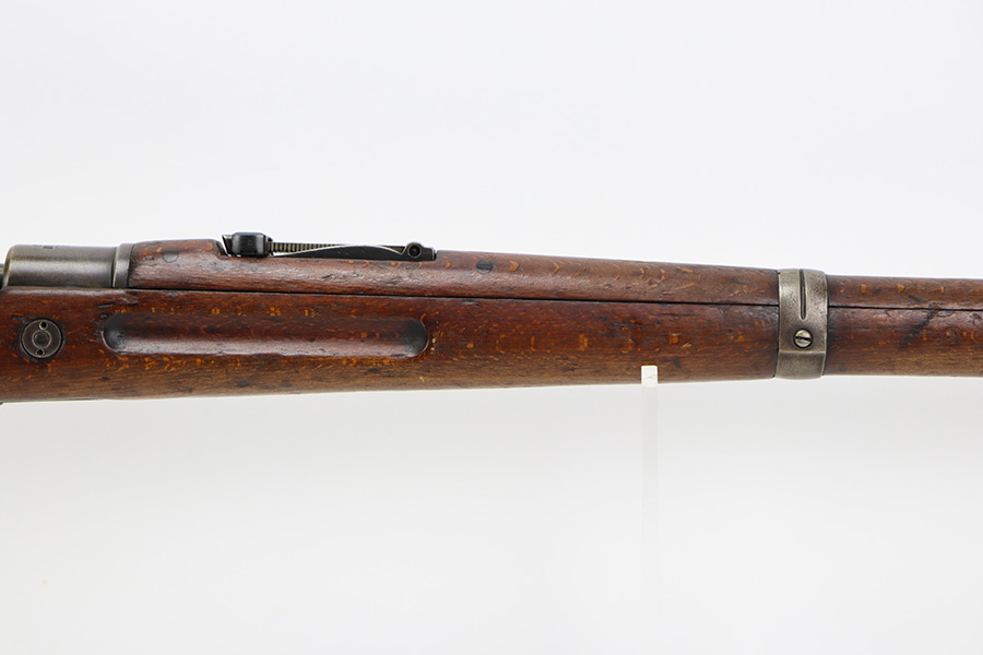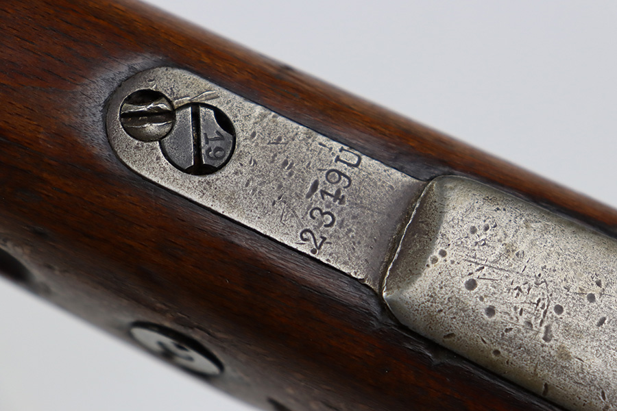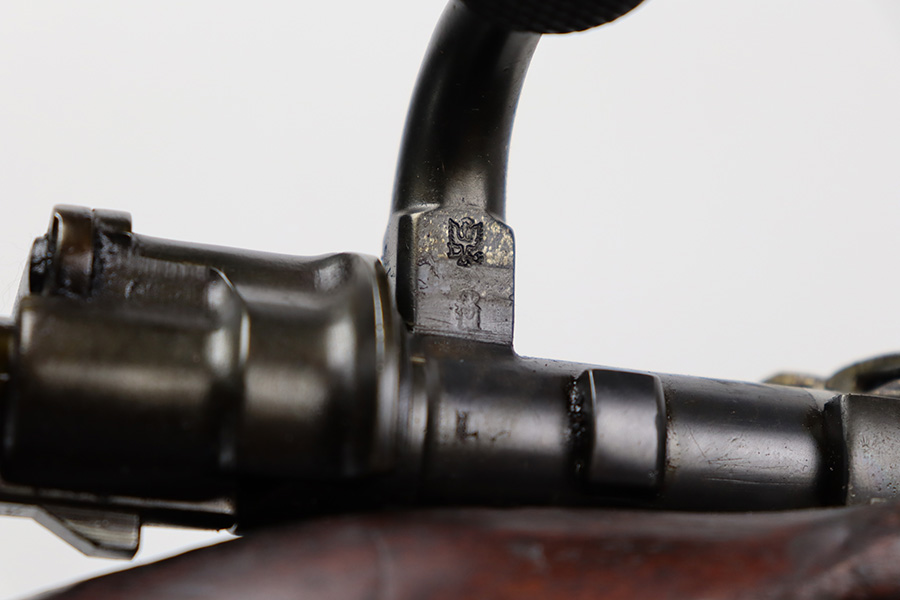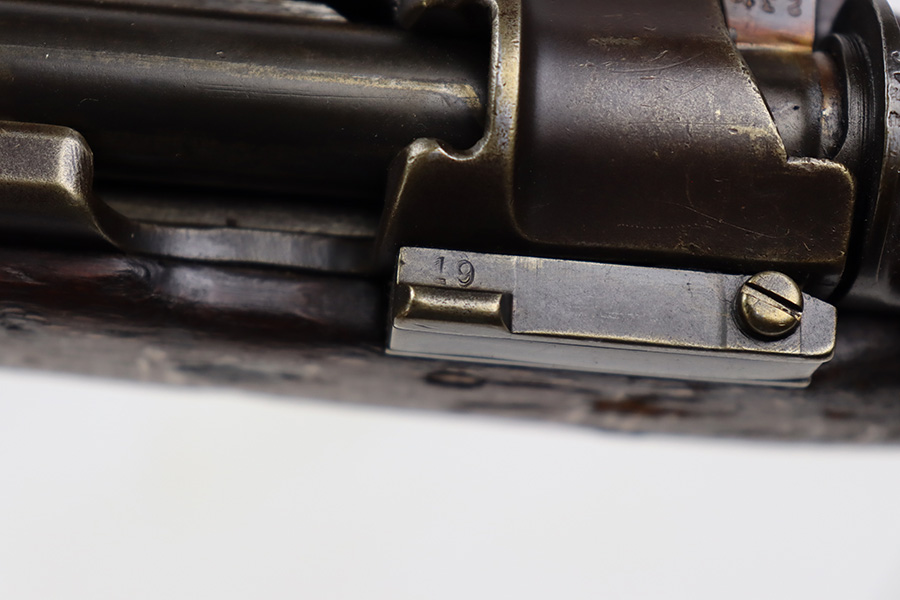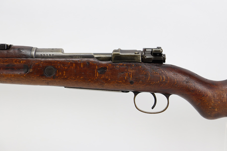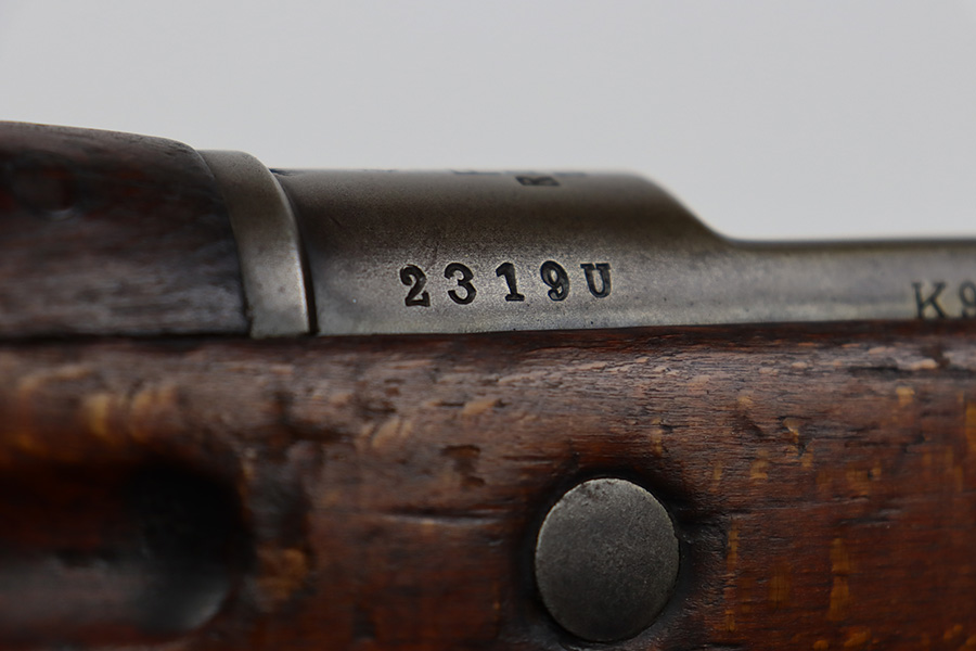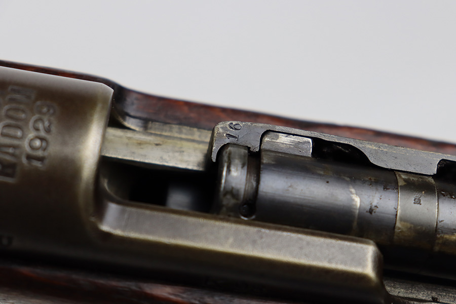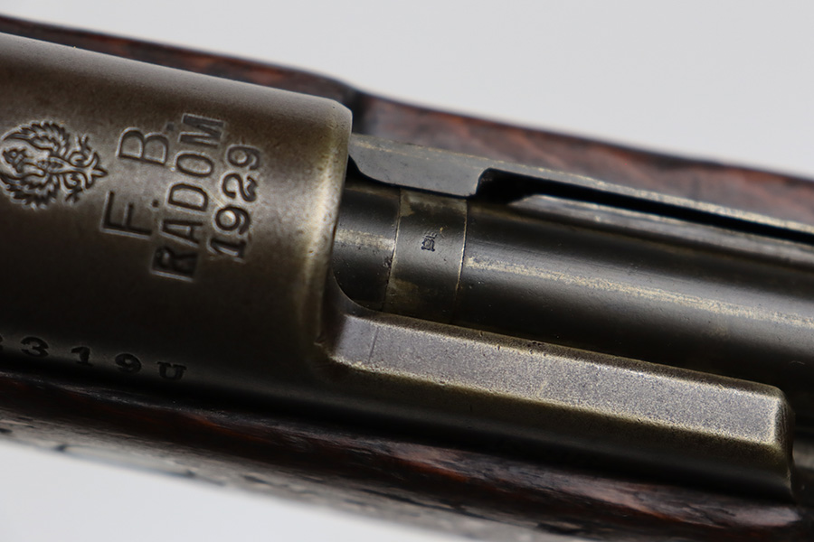 7/26/23 – This is a nice example of a rare Polish Mauser K98 manufactured by Radom in 1929. Most of the parts are matching, except for the rear small parts of the bolt. Turn-down bolt configuration. No import marks. The metal parts have lost nearly all of their finish with obvious wear and light brown patina throughout. The wood shows obvious signs of wear throughout – dings, bruises, and scratches. There is a small hairline crack in the upper handguard, just behind the rear sight. There appears to be an additional serial number on the left side of the butt stock. The bore has decent rifling, but there is minor pitting and oxidation throughout.