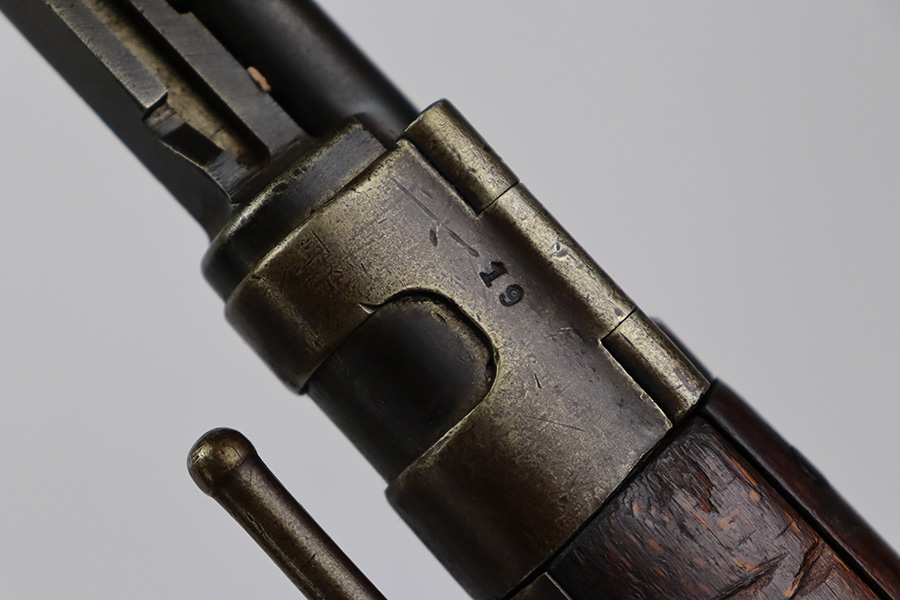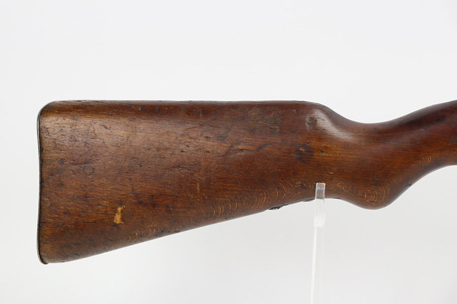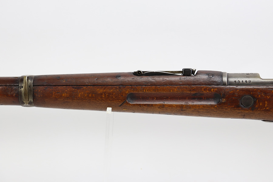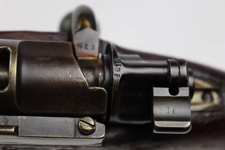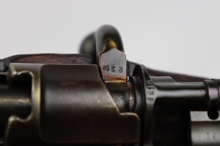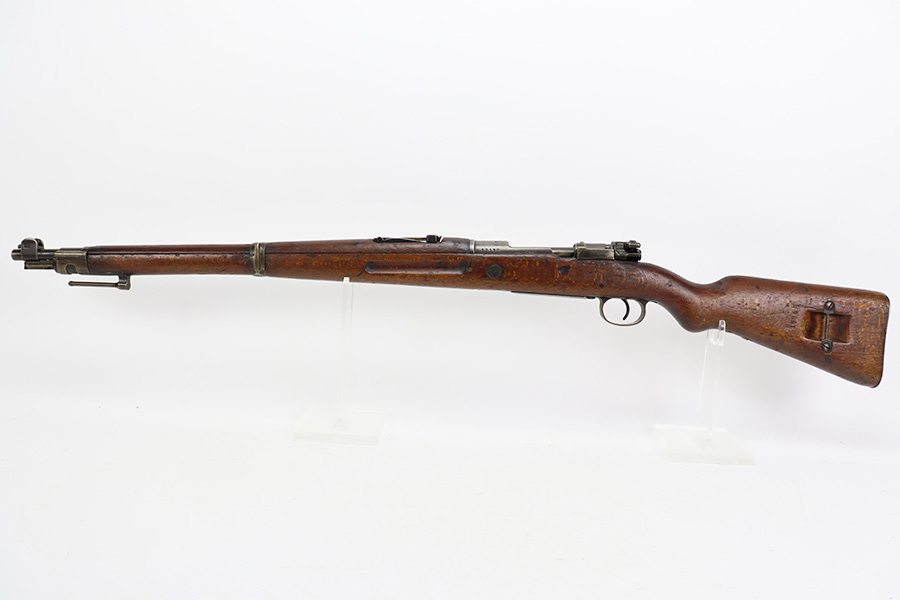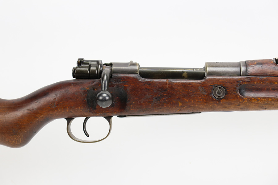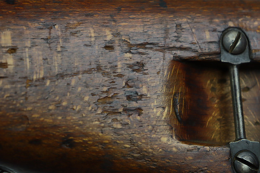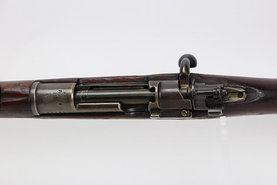 7/26/23 – This is a nice example of a rare Polish Mauser K98 manufactured by Radom in 1929. Most of the parts are matching, except for the rear small parts of the bolt. Turn-down bolt configuration. No import marks. The metal parts have lost nearly all of their finish with obvious wear and light brown patina throughout. The wood shows obvious signs of wear throughout – dings, bruises, and scratches. There is a small hairline crack in the upper handguard, just behind the rear sight. There appears to be an additional serial number on the left side of the butt stock. The bore has decent rifling, but there is minor pitting and oxidation throughout.