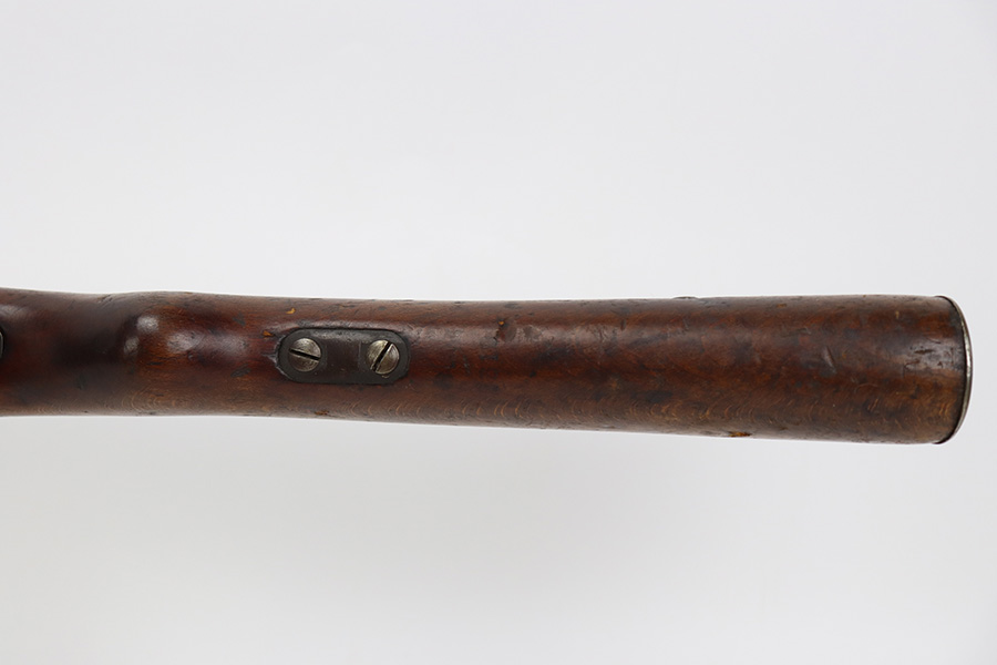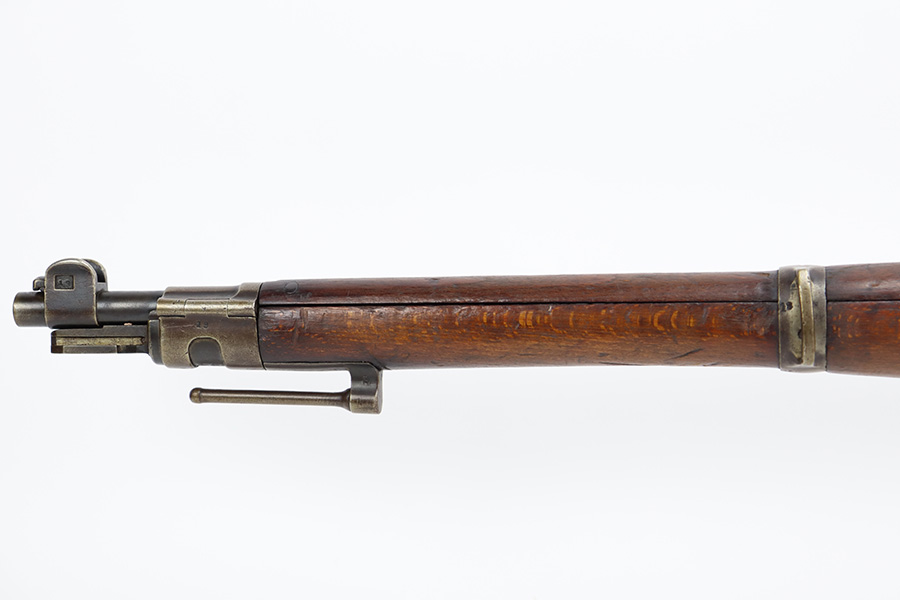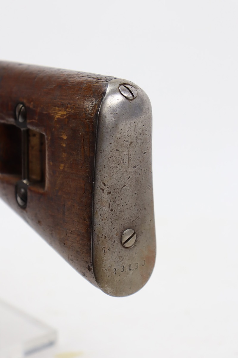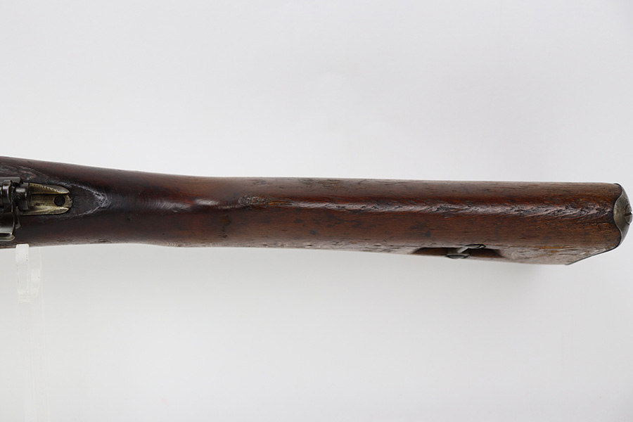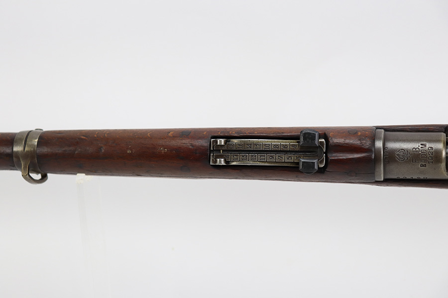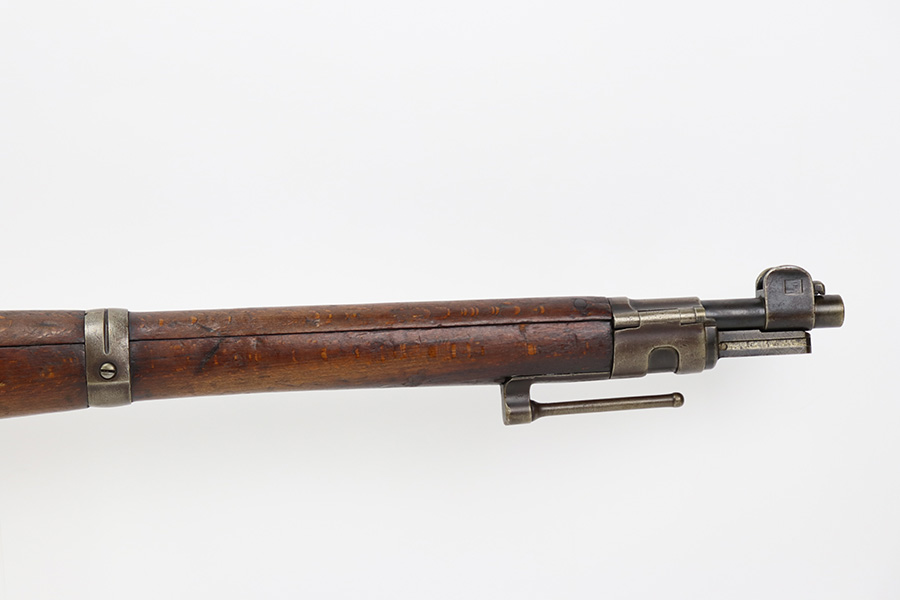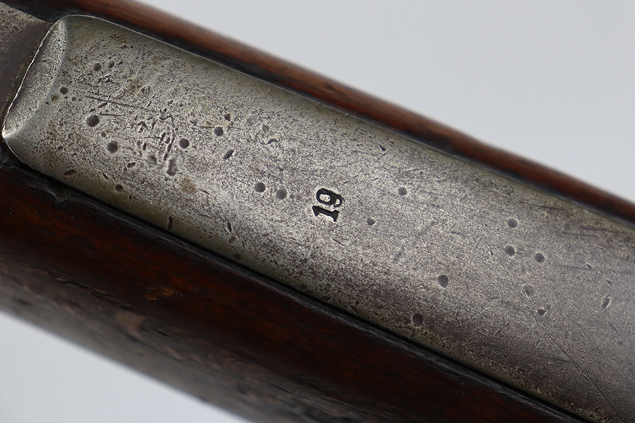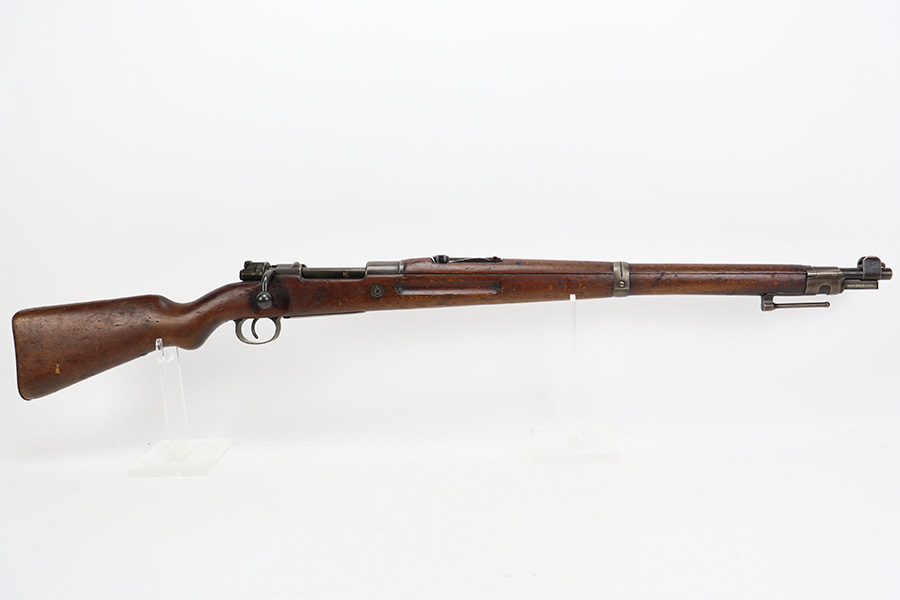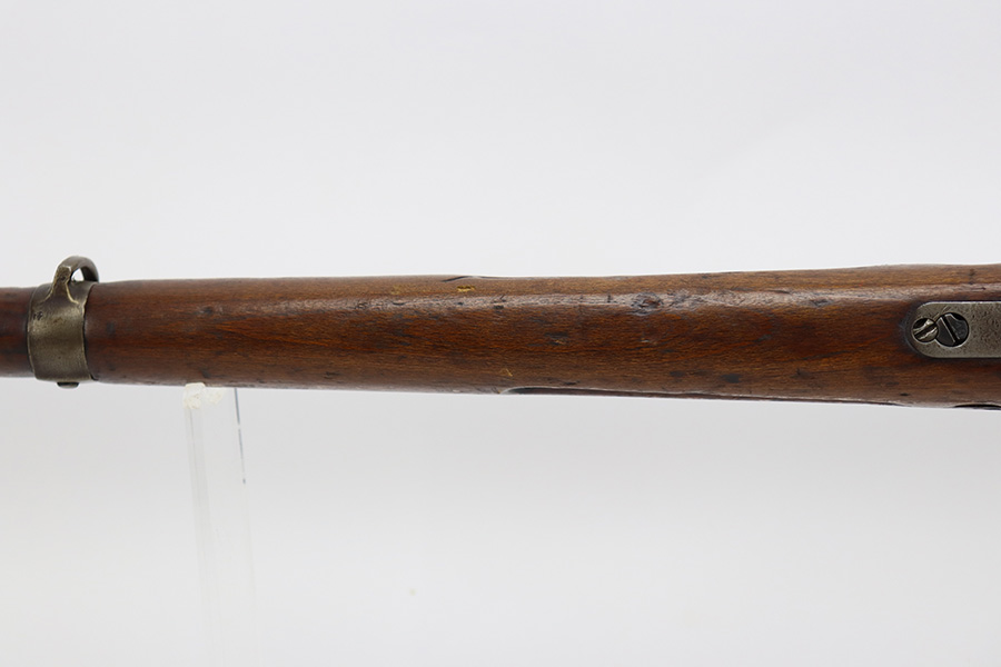 7/26/23 – This is a nice example of a rare Polish Mauser K98 manufactured by Radom in 1929. Most of the parts are matching, except for the rear small parts of the bolt. Turn-down bolt configuration. No import marks. The metal parts have lost nearly all of their finish with obvious wear and light brown patina throughout. The wood shows obvious signs of wear throughout – dings, bruises, and scratches. There is a small hairline crack in the upper handguard, just behind the rear sight. There appears to be an additional serial number on the left side of the butt stock. The bore has decent rifling, but there is minor pitting and oxidation throughout.