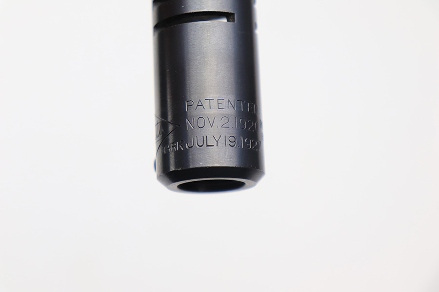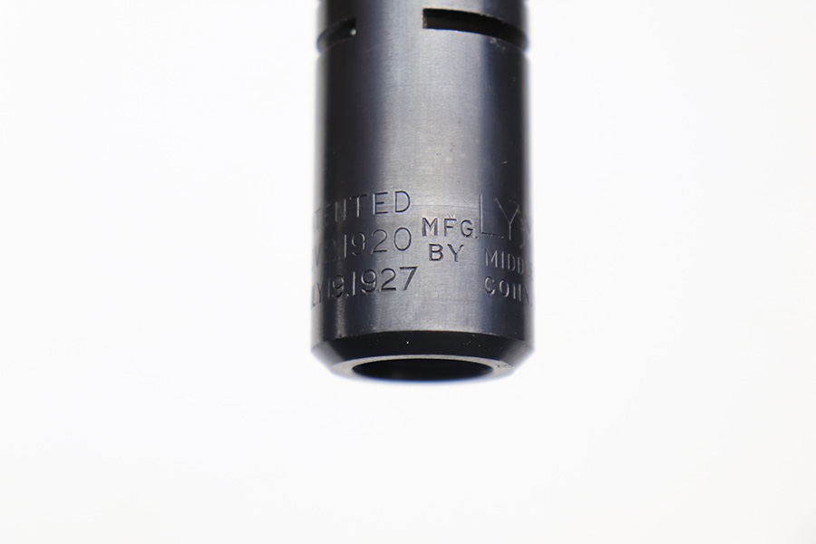 3/10/22 – This is a rare, fairly unusual muzzle break attachment for a model 1903 rifle. The muzzle break was made for National Match competition shooting in the late 1920s-30s. Maker stamped “Lyman” and “Cutts” as shown. Excellent blued finish throughout and some mild edge wear, but no rust or pitting. This wouldn’t be for a M1 Garand because based on the patent date, the Garand didn’t exist yet. A cool piece of US history.