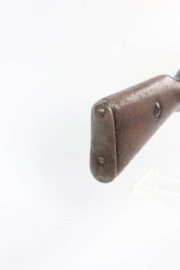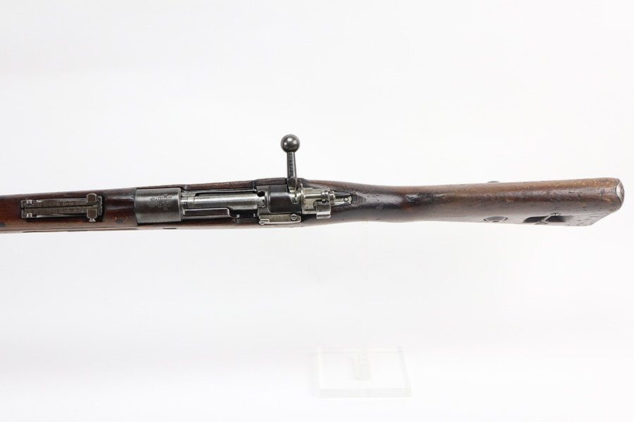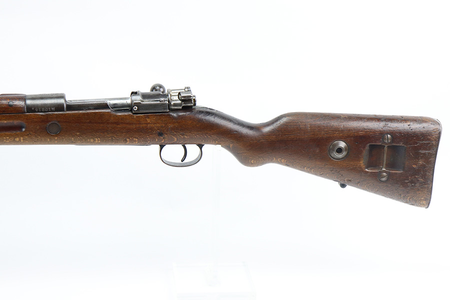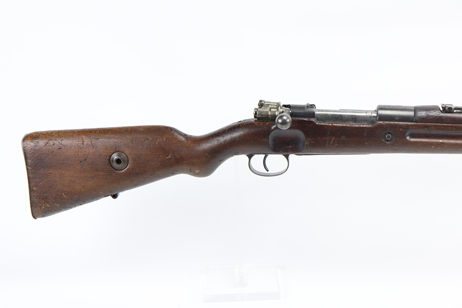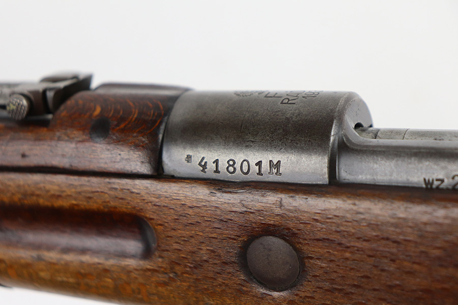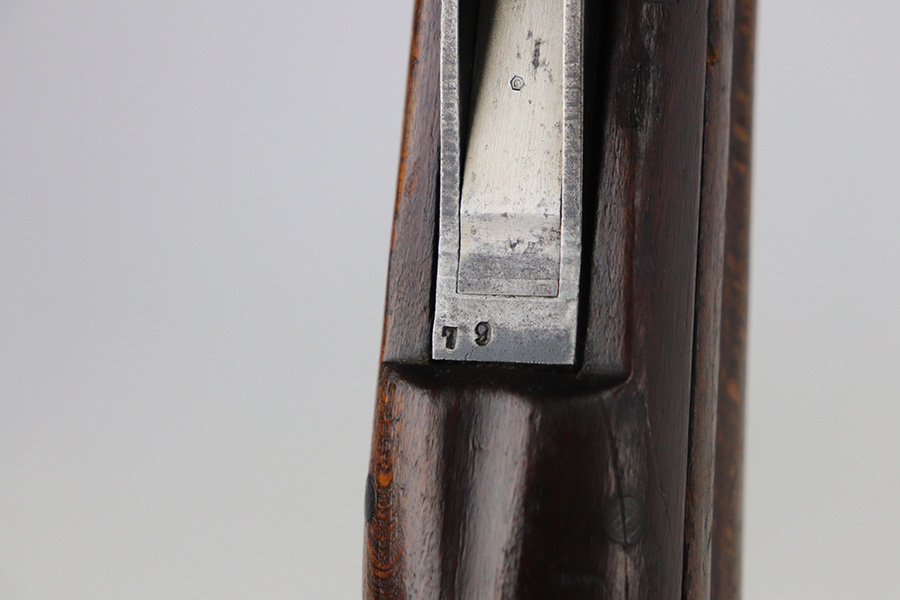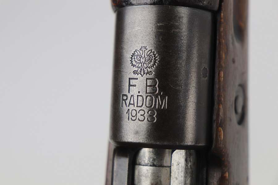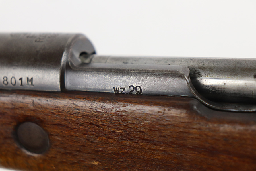 6/30/21 – This is a nice example of a rare Polish Radom Wz 29 issued to the Polish military in 1933. The gun matches itself, but the bolt is mismatched to the gun. It has the proper Polish Eagle crest on the receiver. The finish is fairly worn on the receiver and front barrel band. There is also spotty patina in the same areas. Minor wear around the muzzle. The stock has noticeable dings, dents, and scratches throughout, most noticeable on the underside of the butt stock. There looks like there is a repair on the left side. The bore has good rifling with spotty oxidation and freckling in the grooves.