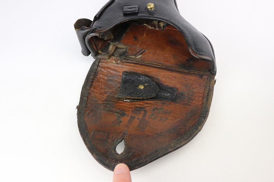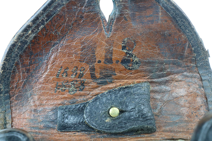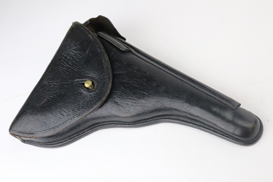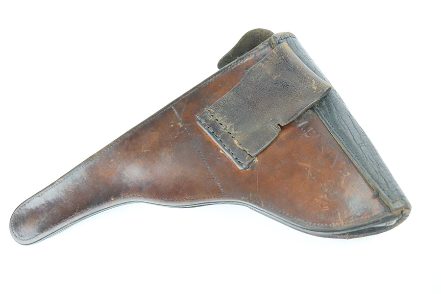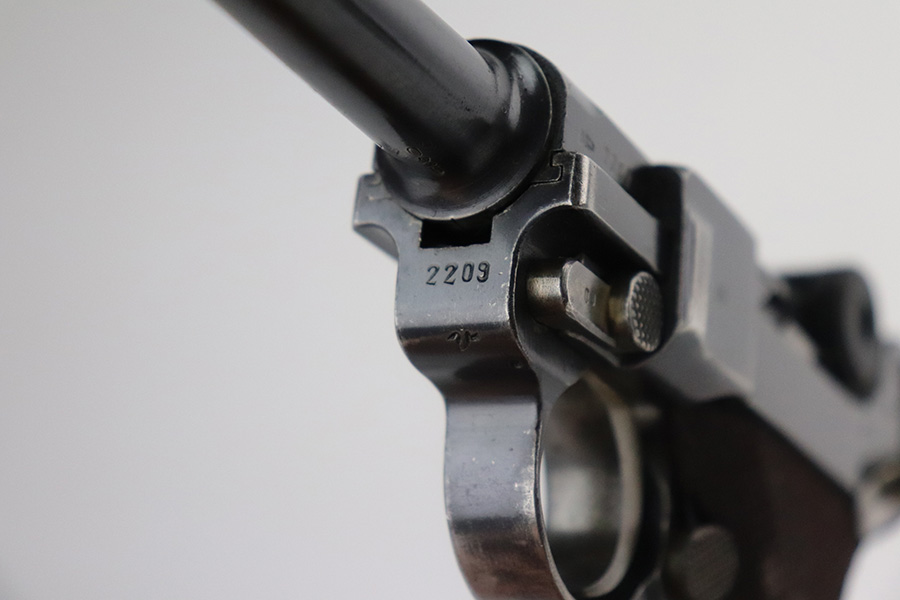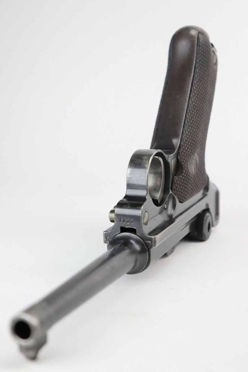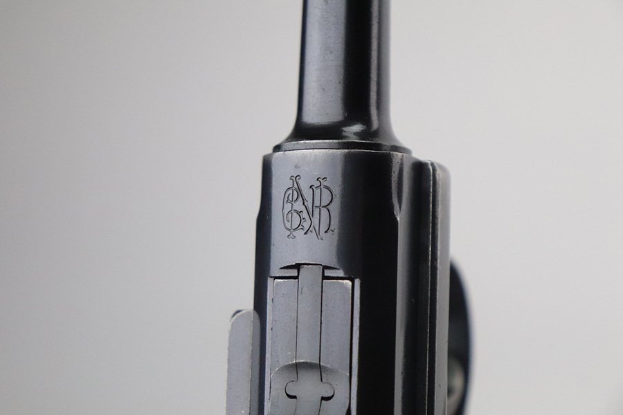 6/29/21 – This is a rare rig for a GNR-marked (Guarda Nacional Republicana) 1935/06 Mauser Banner luger, made under contract for the Portuguese in 1935. This rig includes a cleaning rod, one proper un-numbered magazine, and a nice Portuguese-style holster. These lugers were largely unheard of in the collector market for a long time, as only 564 were produced! This one is all matching and has retained about 92% of its original finish. There is minor wear on the side plate, side rails, and around the muzzle. Spotty wear on the left side of the barrel and back strap. Small handling marks here and there. Minor patina and spotty oxidation on the straps. Comes with excellent un-numbered grips. The bore is shiny with good rifling with minor freckling in the grooves.