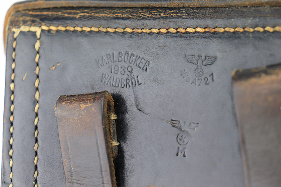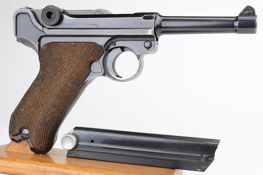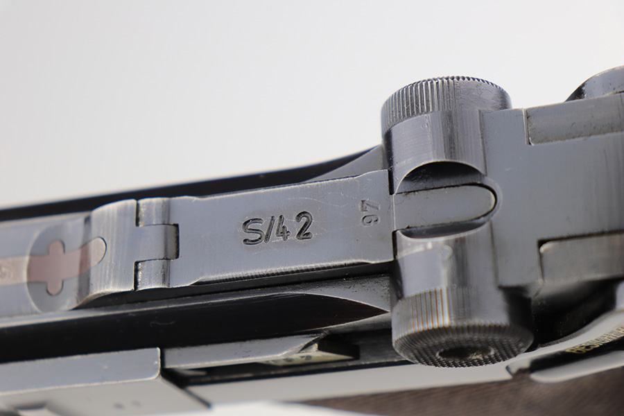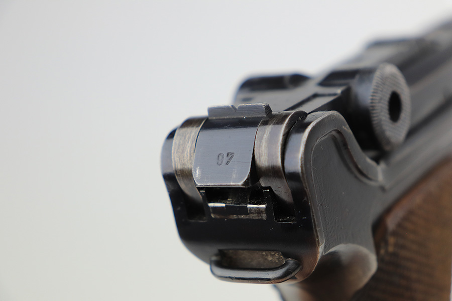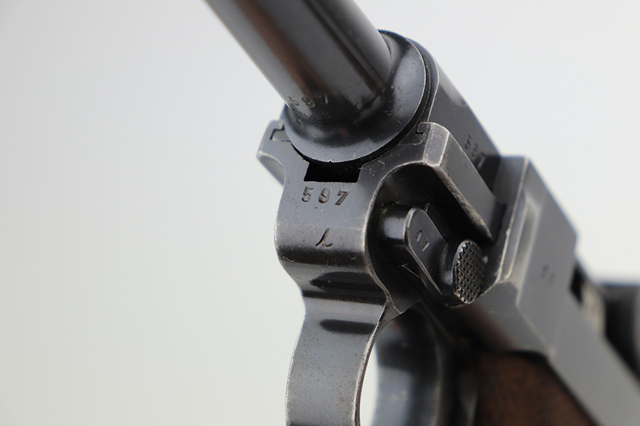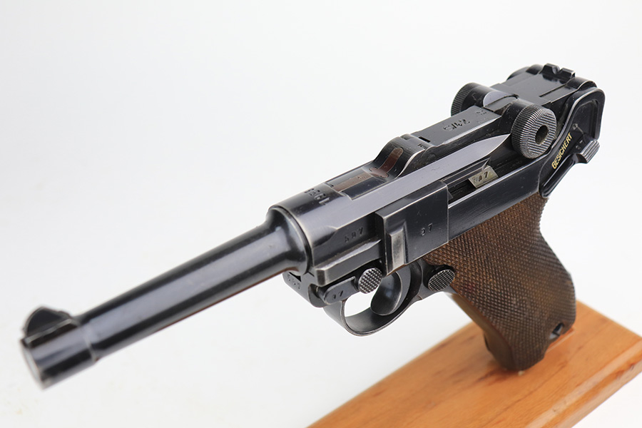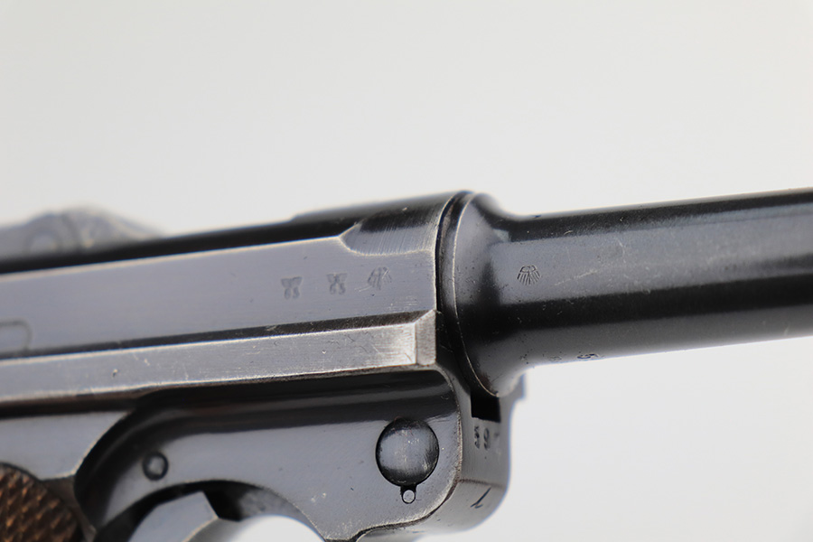 3/15/22 – This is a rare and complete Navy Mauser Luger rig from 1938 with one of the original, matching magazines. One of only ~6,000 produced in total with property mark on frame, and one of only 2,400 with 1938 chamber date. The pistol is all matching and original, with maybe 85-90% of the original blue remaining. There’s standard high edge wear from the holster, but this one is difficult to rate as the grip straps just show some general dulling. Comes with the original matching grips and one of the matching magazines. The listing also includes a spare, original Navy-marked magazine. The pistol’s bore has strong rifling with a little frost throughout. The rig is completed by a rare Kriegsmarine holster with sharp Navy eagle marking and 1939 date.