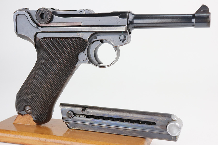 SOLD – Rare 1939 Police Eagle/C Mauser Banner Luger – Matching Mag