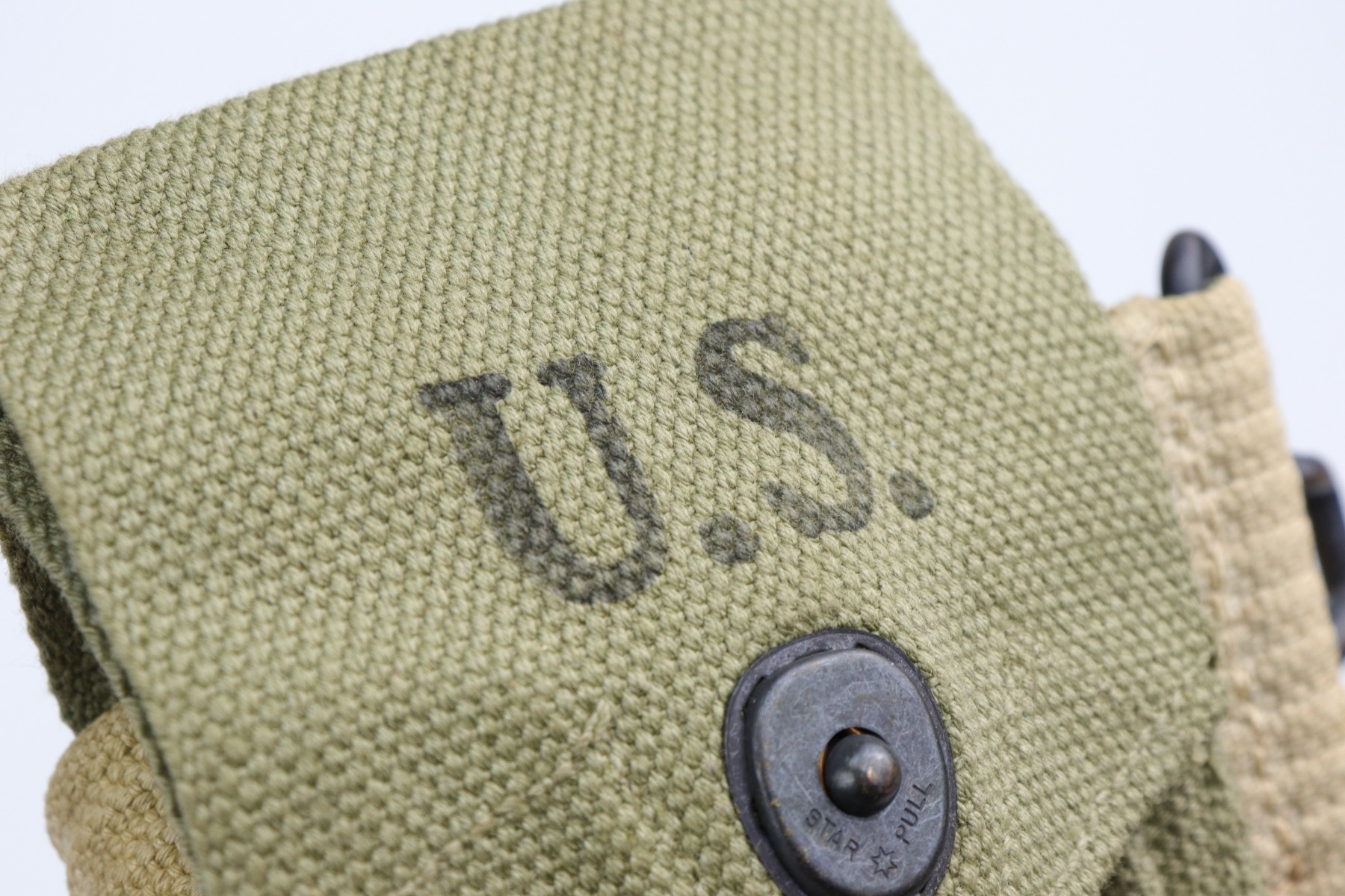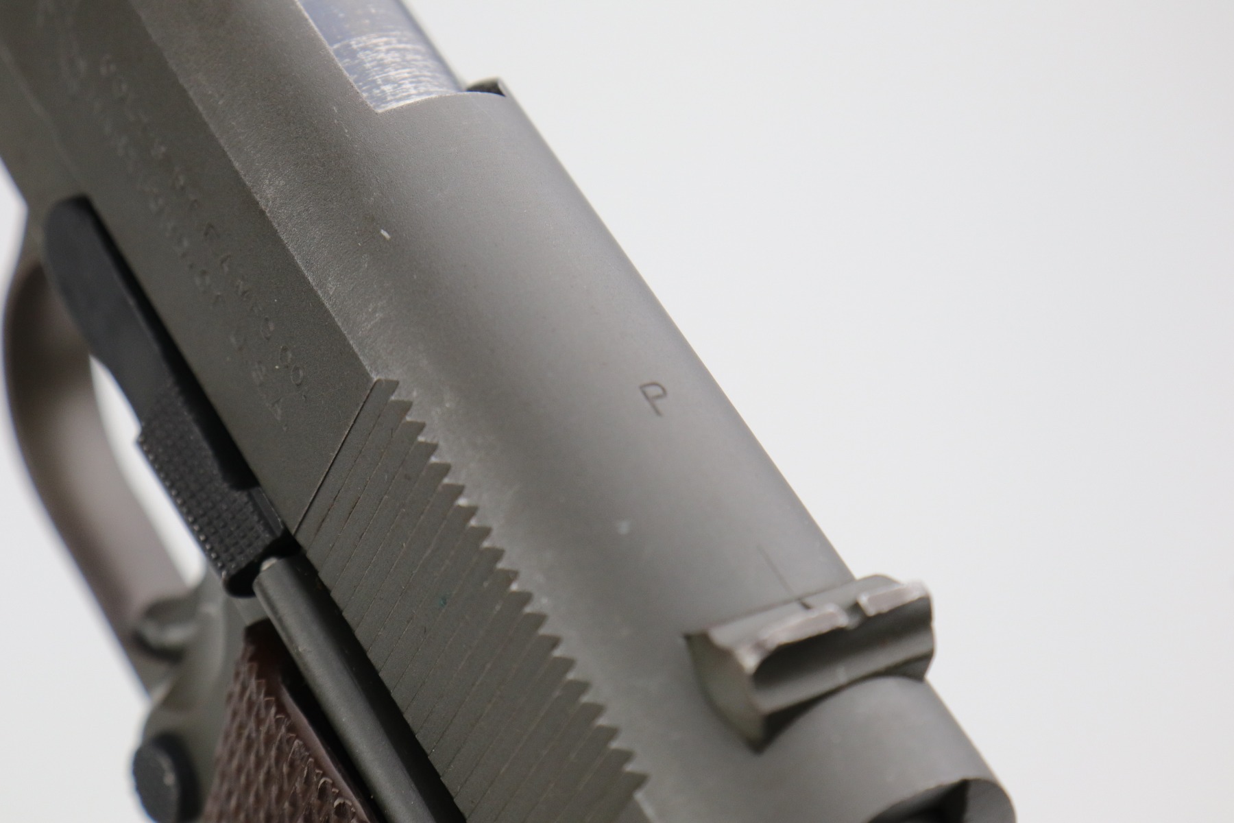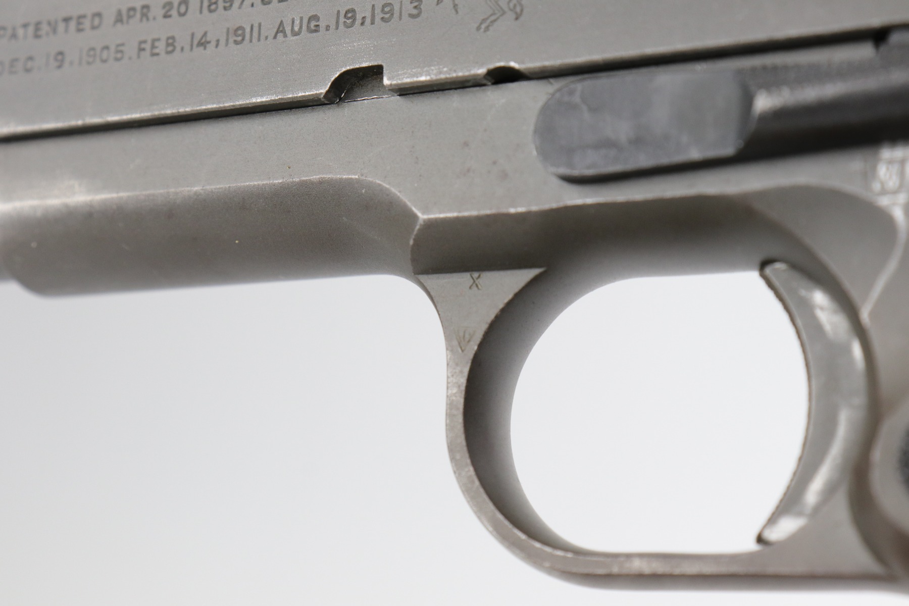 1/13/21 – This an excellent example of a rare Colt Model 1911A1 complete rig issued to the US Military in 1941. What makes this one special is the “WB” inspector proof on this gun. There are only a couple of thousand guns made in 1941 with this inspector marking. The gun comes with a minty 1942-dated holster, original canvas belt, and 1942-dated canvas magazine pouch. The gun has the proper military cross canon cartouche. The slide is numbered and matching. The gun has retained about 92-94% of its original finish. There is wear around the muzzle, high edges of the slide, and spotty wear on the front strap. There are some light handling marks here and there. There is some minor spotty oxidation on the front strap and right side of the gun. Excellent bore – shiny with strong rifling. It comes with excellent grips and one proper magazine.