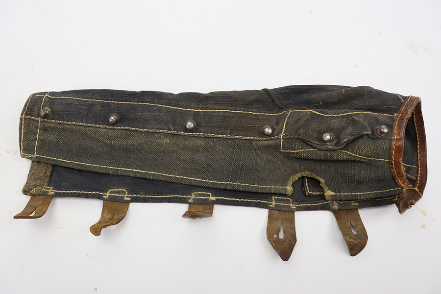 1/12/24 – This is an excellent condition canvas K98 action cover from WW2. These were used in winter / rainy conditions so the troops could keep their rifles clean and running smoothly. This example has excellent, clean olive green canvas throughout and all original straw colored stitching. The interior edge is felt lined on one end to prevent from damaging the rifle finish. The other end has leather that’s in great condition. Maker stamped, waffen proofed, and 1941 dated on the interior. All straps and knobs are intact and original. Fits very nicely onto a K98 (not too tight like other examples).