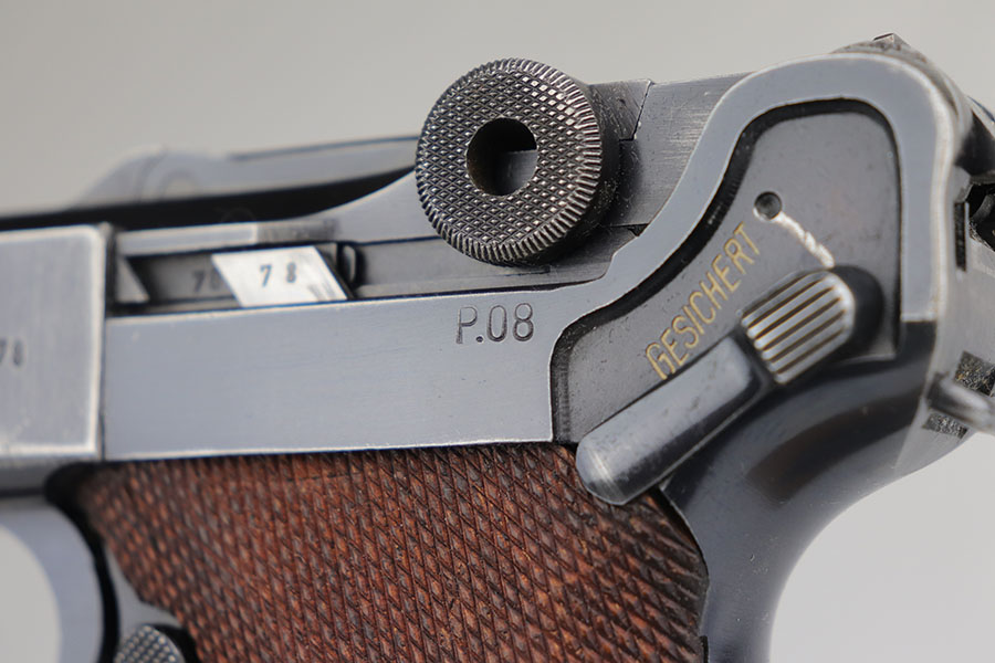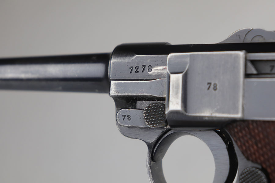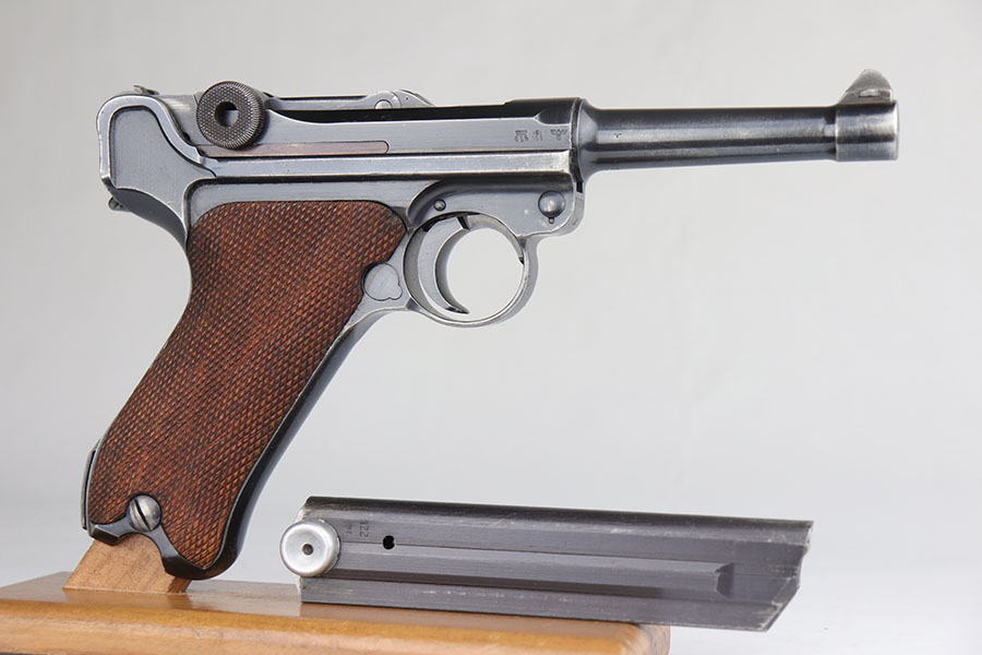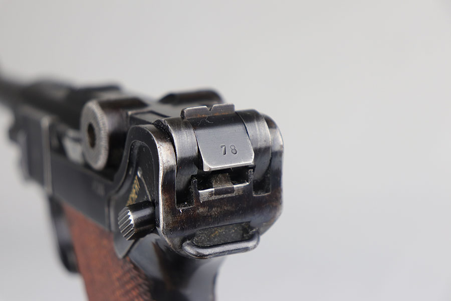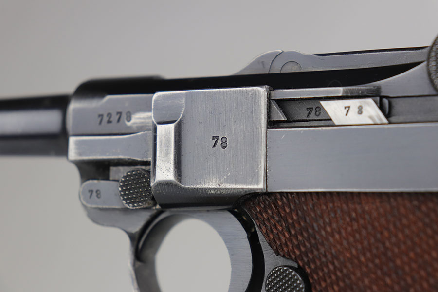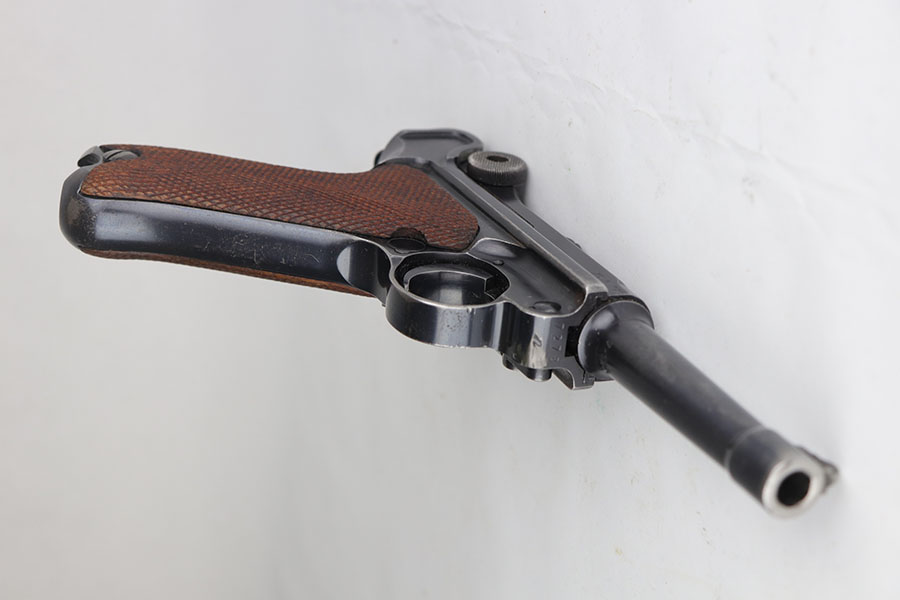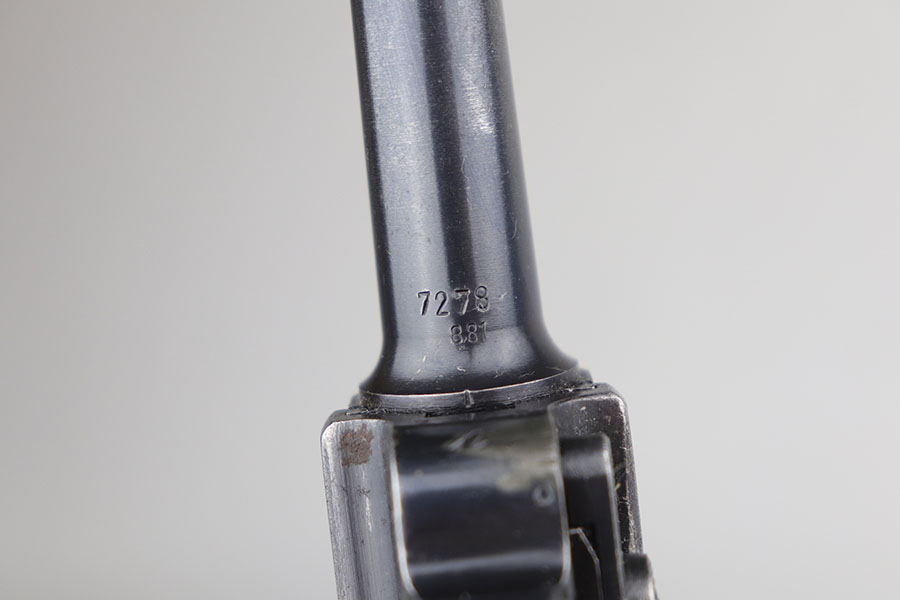 8/4/20 – This is a rare Nazi Mauser Luger referred to as a ’41/42′ code, one of only 7,000 produced. It’s all matching and original, with scarce 122 code magazine with blank bottom. The grips are unmarked but fit the gun very well and they’re in great condition. The pistol has original blue with some finish loss on the sideplate, straps and either side of the barrel. Excellent bore.