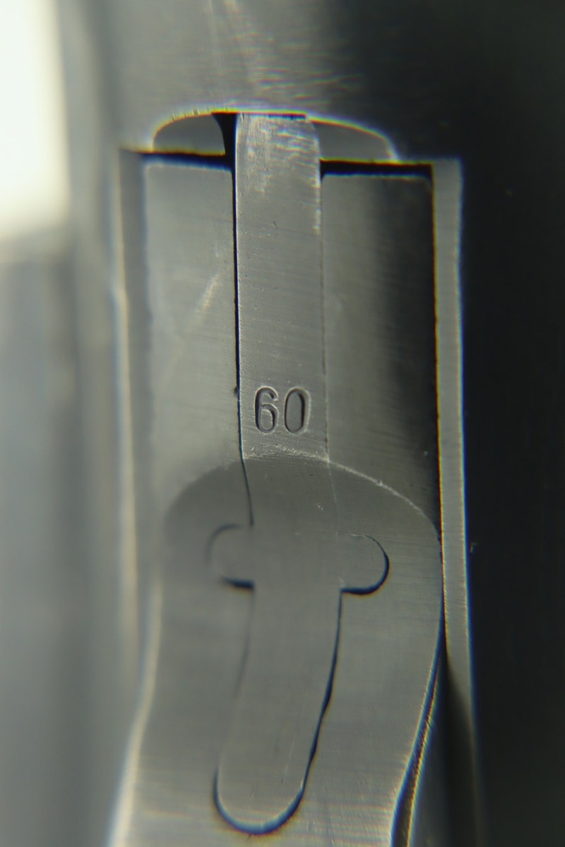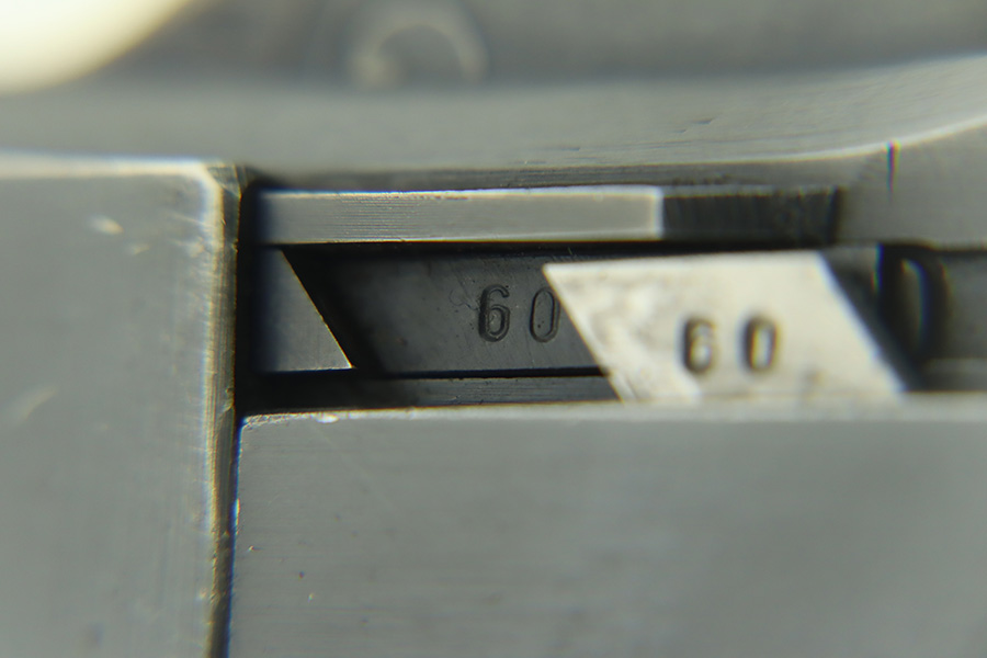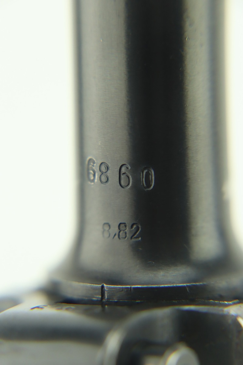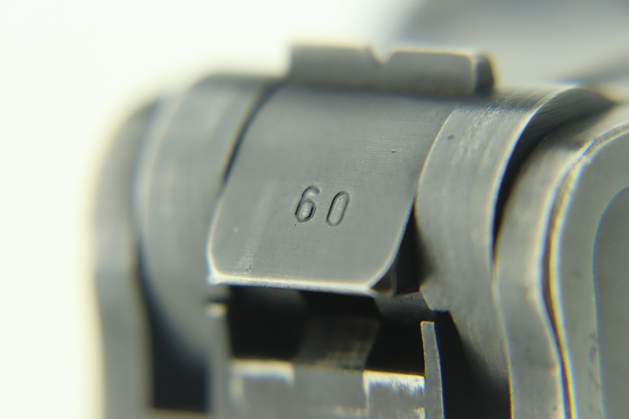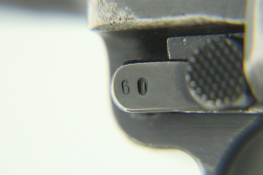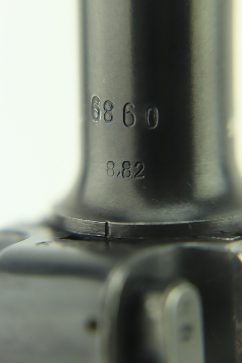 1/30/24 – This is a very nice BYF 41 Mauser Luger issued to the Nazi military in 1941. It is a rare mixed proofs variation with both E/655 and E/135 proofs on receiver. It is all matching. Its original finish rates about 93% with wear around the muzzle and general high edge wear. Fitted with matching-numbered “Eagle 655” marked wood grips – there is a repaired hairline crack on the right side only visible from the inside. Comes with a blank “Eagle 655” marked magazine. Excellent bore with great rifling.