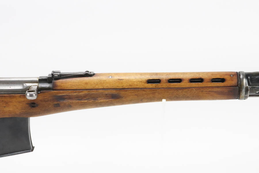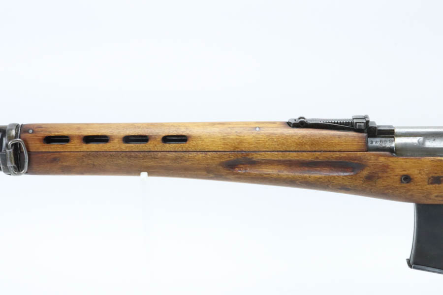 06/17/2024 – For sale is a rare Podolsk SVT-40 produced in 1941 for the Red Army but captured by Finland during the Continuation War. Podolsk is one of the rarer manufacturers with less than 8% of total production made by them. (111,659 of 1,486,645 total production). The rifle is in good condition overall surviving the war. The stock has been sanded and refinished sometime in the past. The metal retains a lot of its original bluing but many spots of heavy wear. The receiver is stamped [SA] for Finnish Army Property. The rifle has matching serial numbers on the receiver and bolt. The stock serial number is not visible and the magazine is not matching. The bore is bright with good rifling but the lands become more worn towards the muzzle. There are cracks on the wrist of the stock at the top and bottom that look like they were sealed by a prior owner.