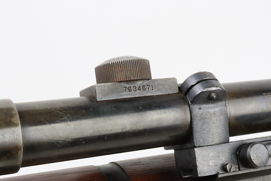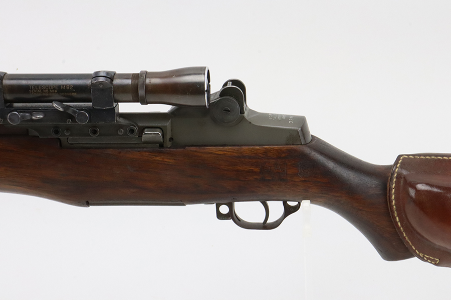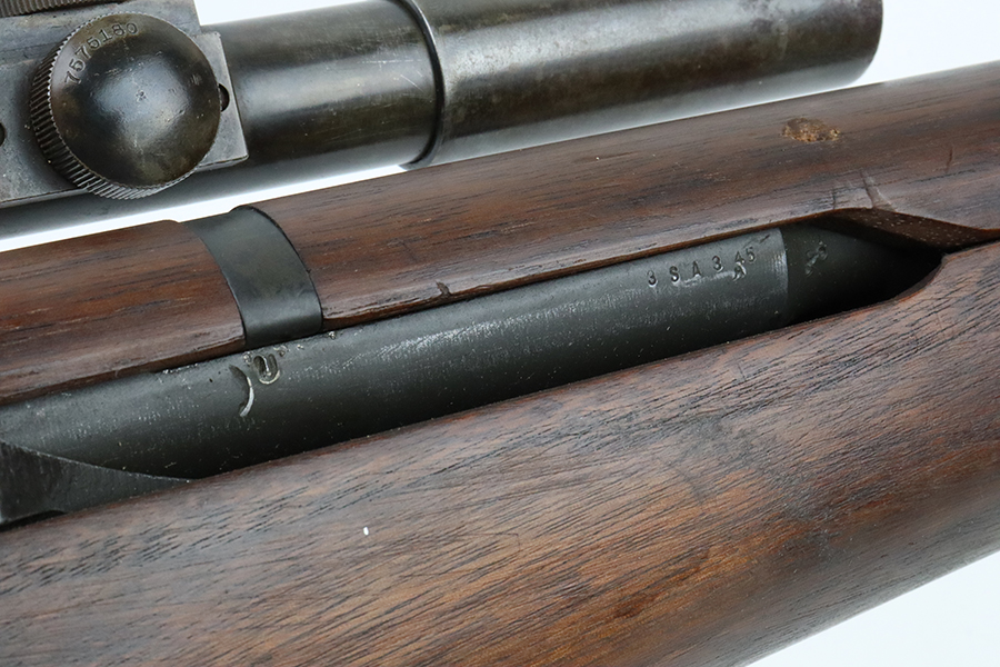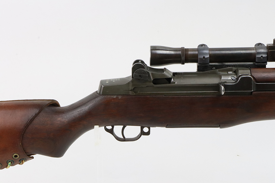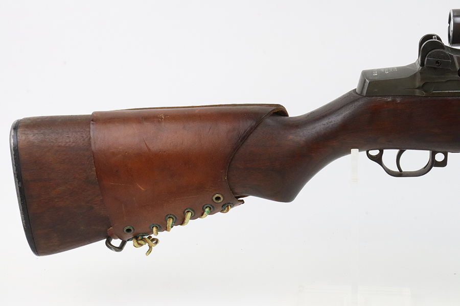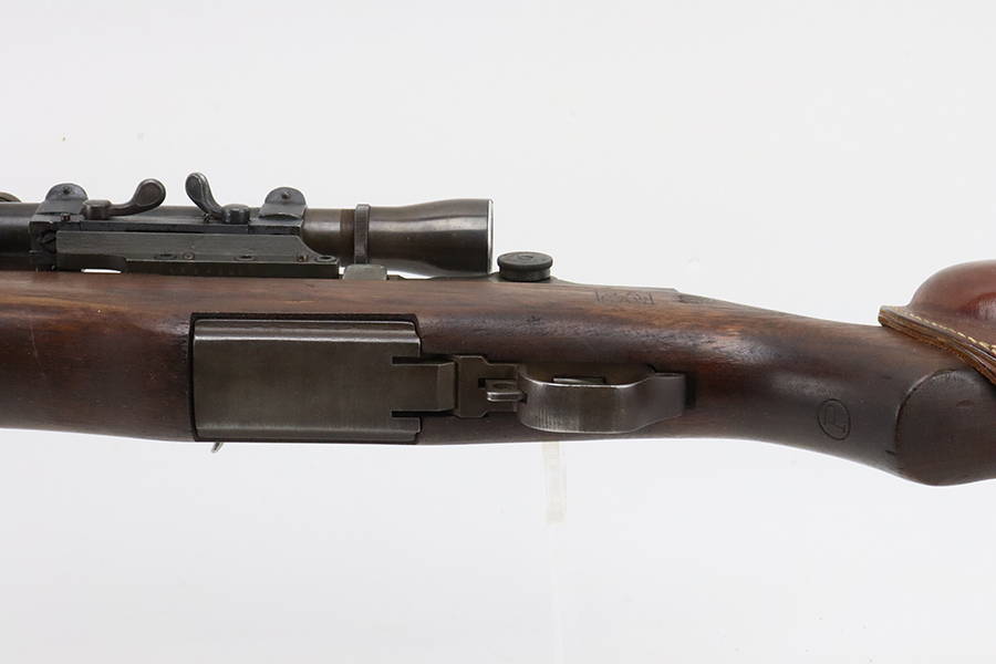 2/6/24 – This is a very rare and desirable Springfield M1C Garand Sniper rifle from 1944. While phased out of production in favor of the M1D, which could be produced in-house by Springfield using finished and surplus M1 rifles, the M1C saw sniper duty through Korea and into Vietnam. There were fewer than 8,000 M1Cs completed for WW2, and a total receiver production of less than 13,000. It features an original M82 scope (excellent optics) with a numbered but mismatched mount. Also equipped with a leather cheek pad and flash hider. Developed in 1944, the M1C was the first production-level sniper variant of the M1 Garand semi-automatic rifle. While highly effective as a sniper weapon, the manufacturing process was rather involved, requiring a Springfield receiver to be selected off the production line before heat treating, shipped to Griffin & Howe for base installation, and then returned to the Armory to complete the process. This one has a Springfield-marked 1945-dated barrel. The stock is “P” proofed and has the proper Springfield and cross-canon cartouches. The finish on the metal parts is excellent with just some minor thinning on the underside of the trigger guard Excellent wood furniture. Minty bore. The scope on this rifle is a tight fit.