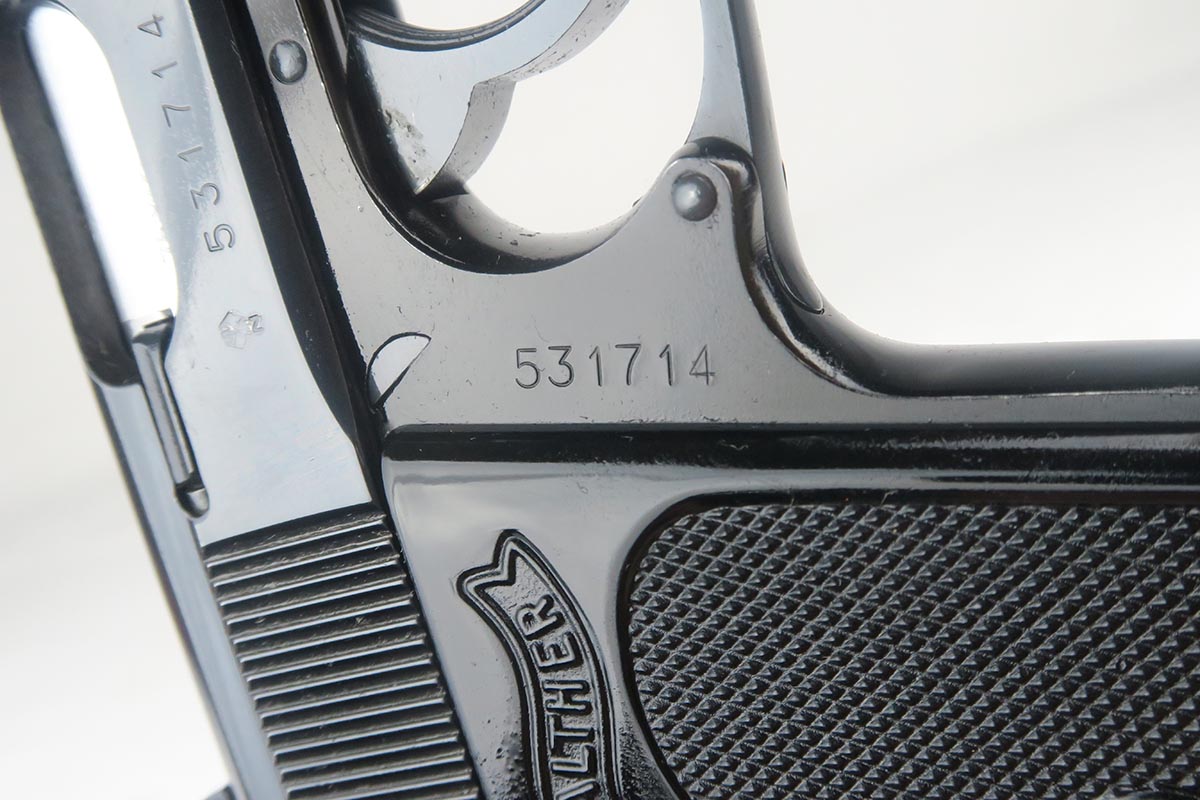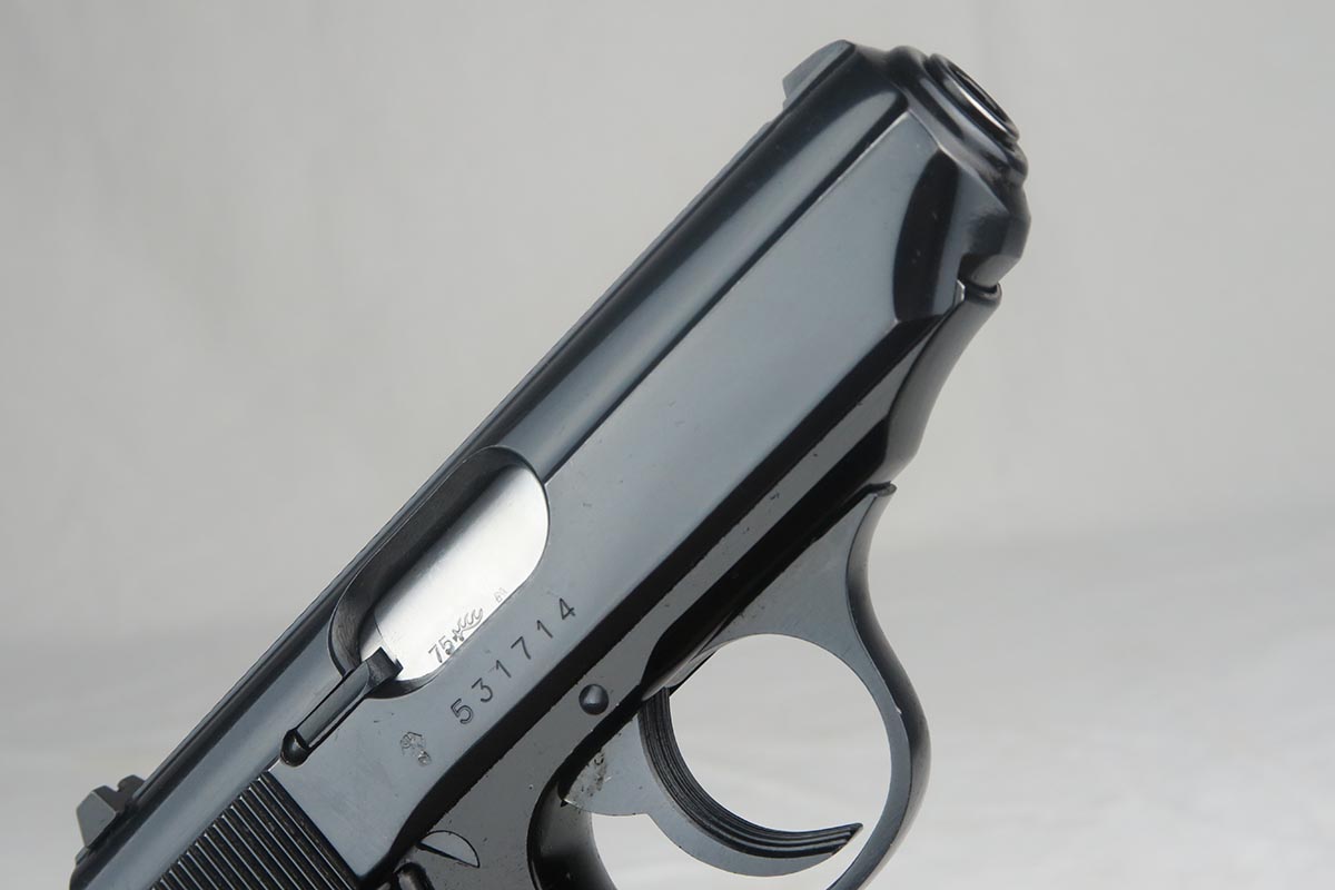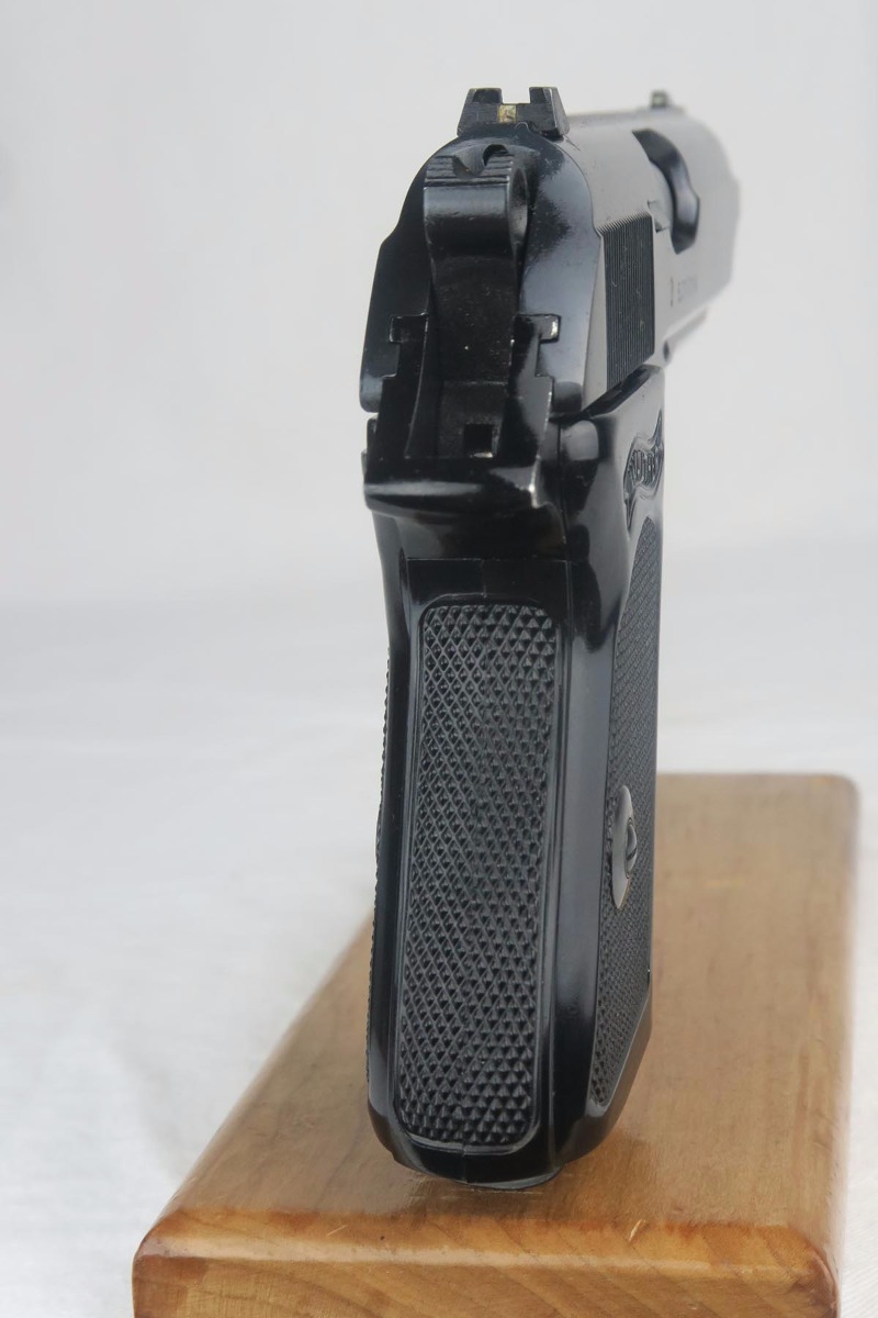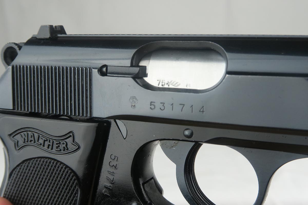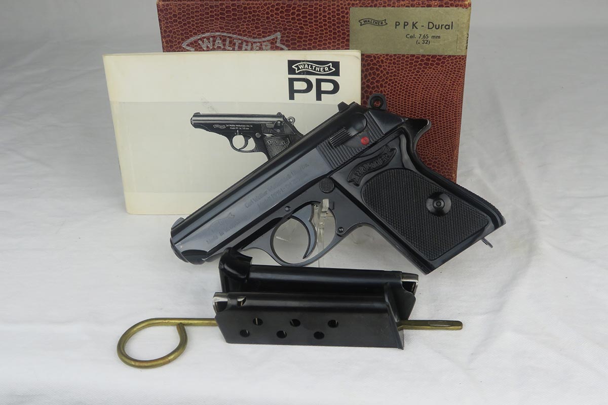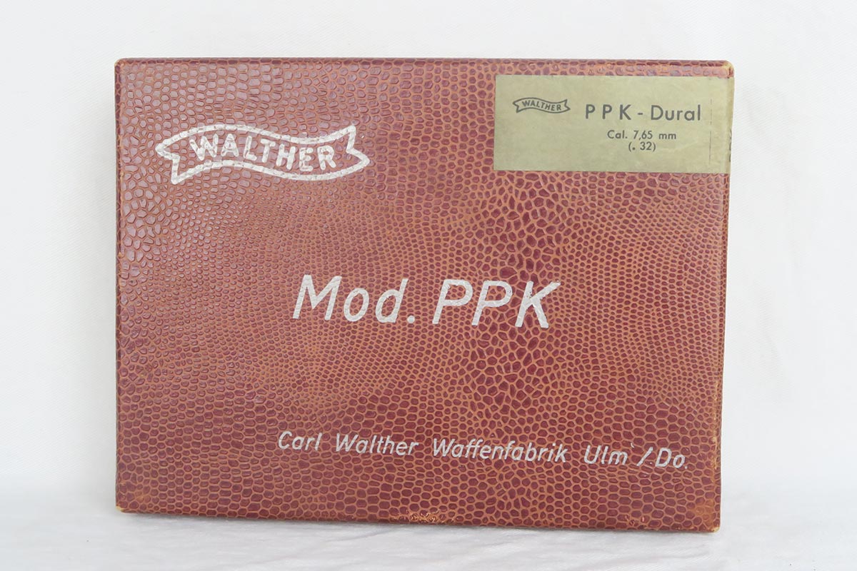 11/13/17 – This is a very scarce Dural frame Walther PPK in minty original condition with box and accessories, made in 1975. After the firearms act of 1968, walther PPK could no longer be imported into US. However, very few guns were brought in during 1970s by the US army personnel stationed in West Germany and by the law enforcement as a “back up” gun. Most of these guns were in 380 ACP and made in 1978 and 1979. This particular gun is a rare Dural light weight frame gun, made in 1975, chambered in .32 ACP and is “as new in the box” with just minimal box wear. It comes with the box, two mags, manual and a cleaning rod. This is the first West German PPK from the 70s in this particular configuration that we came across. A great collectible that would also make a great carry gun.