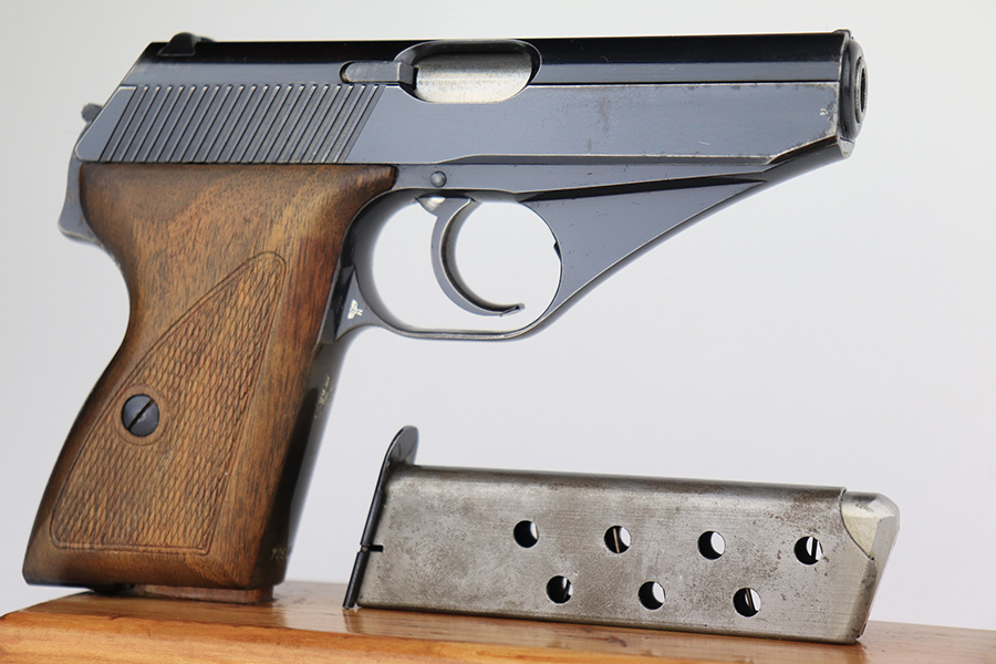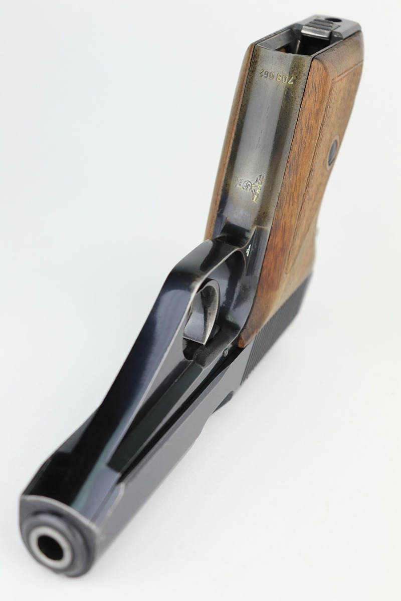 3/22/2023 – This is a rare Kriesgsmarine Mauser HSc issued to German Navy in 1941. It’s a second variation example, with the Navy eagle over M on front strap, and is one of only about 7,000 made. It is all matching and has retained roughly 85% of its original high-polish finish, with virtually all of the finish loss on the grip straps, so the profile views on this one are very nice. Excellent bore with strong rifling. Comes with a Mauser banner mag and excellent period-correct grips.