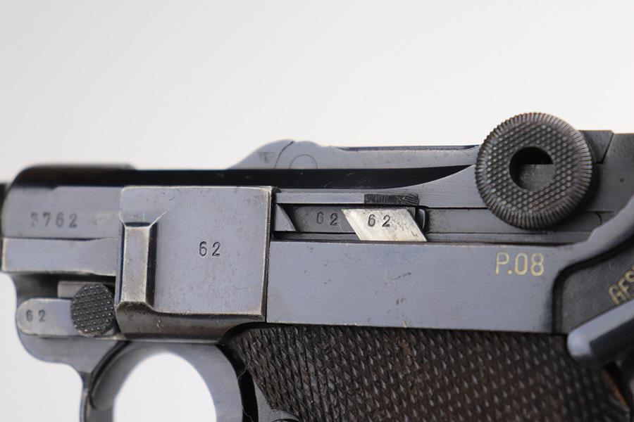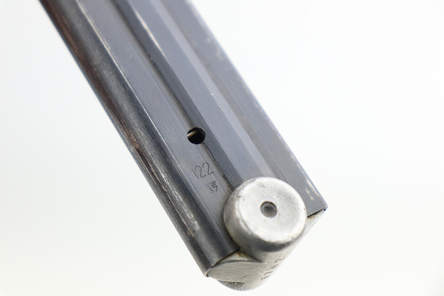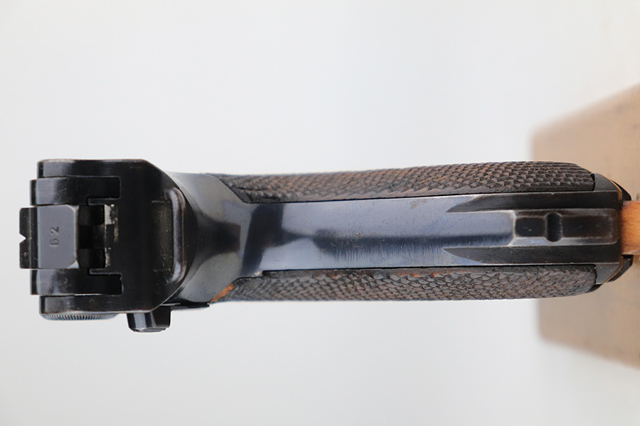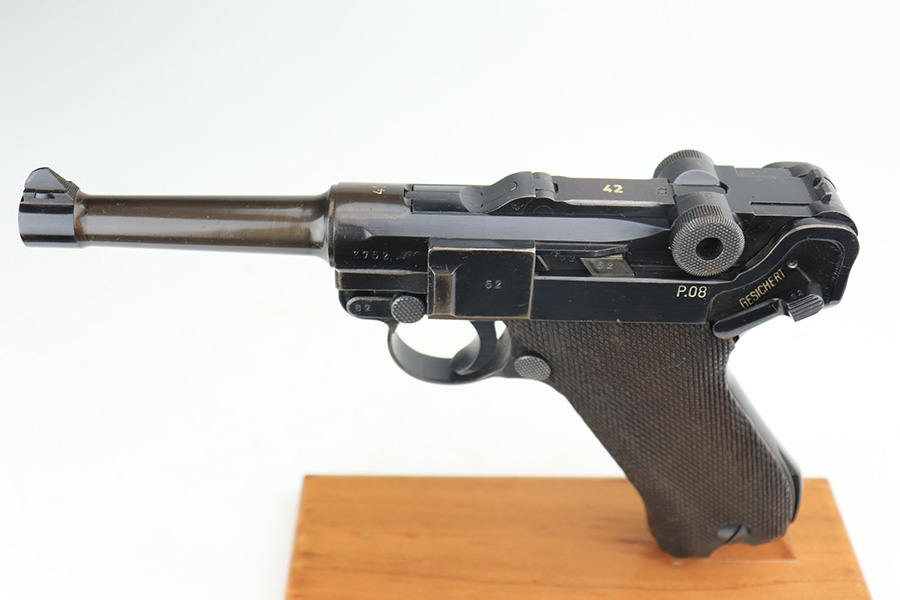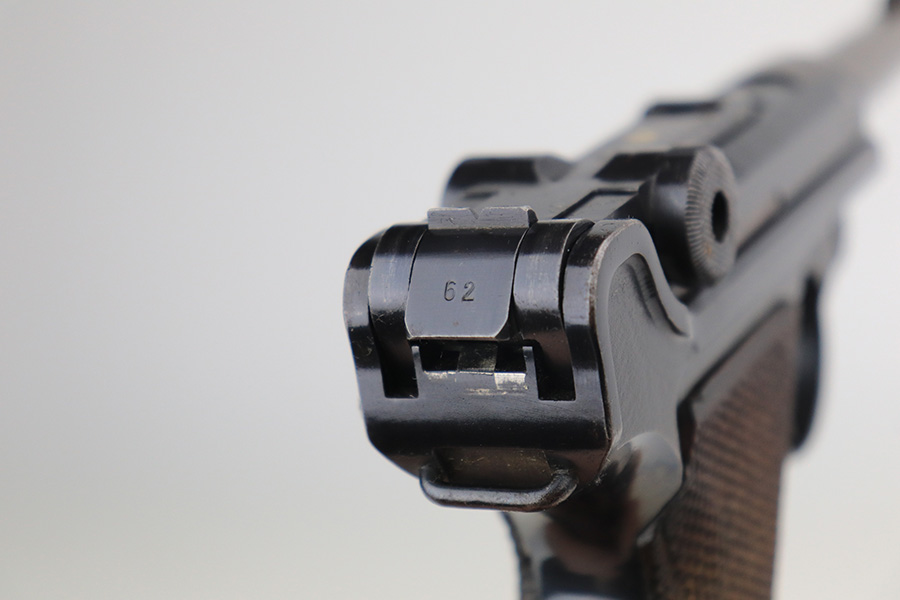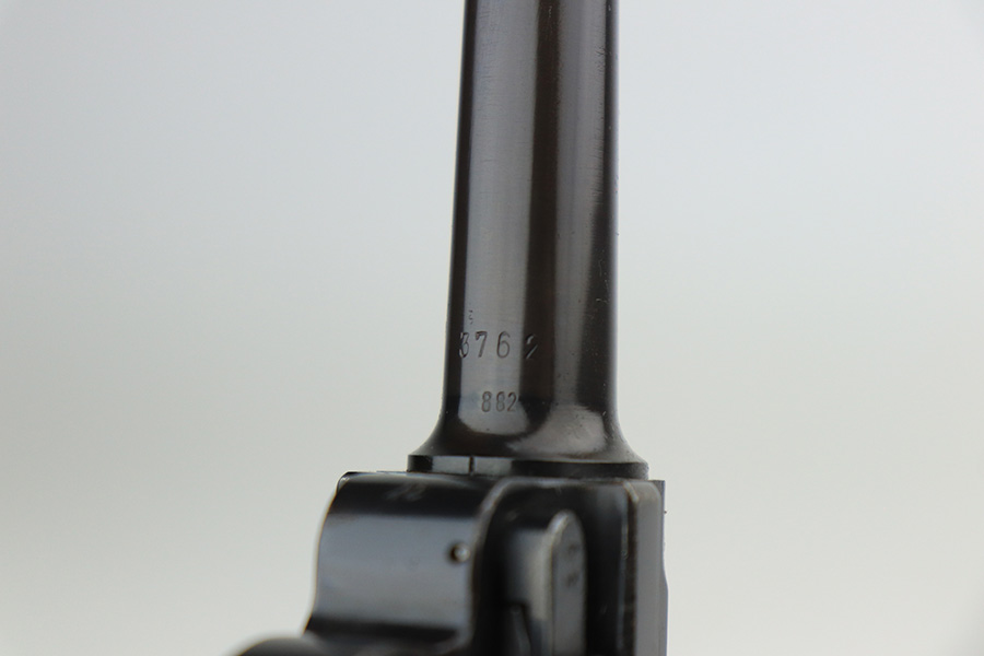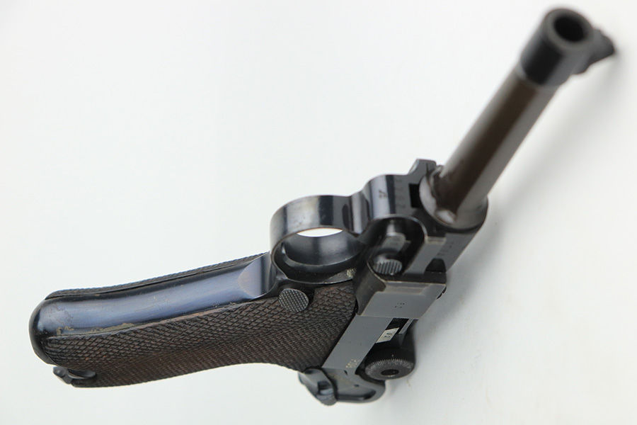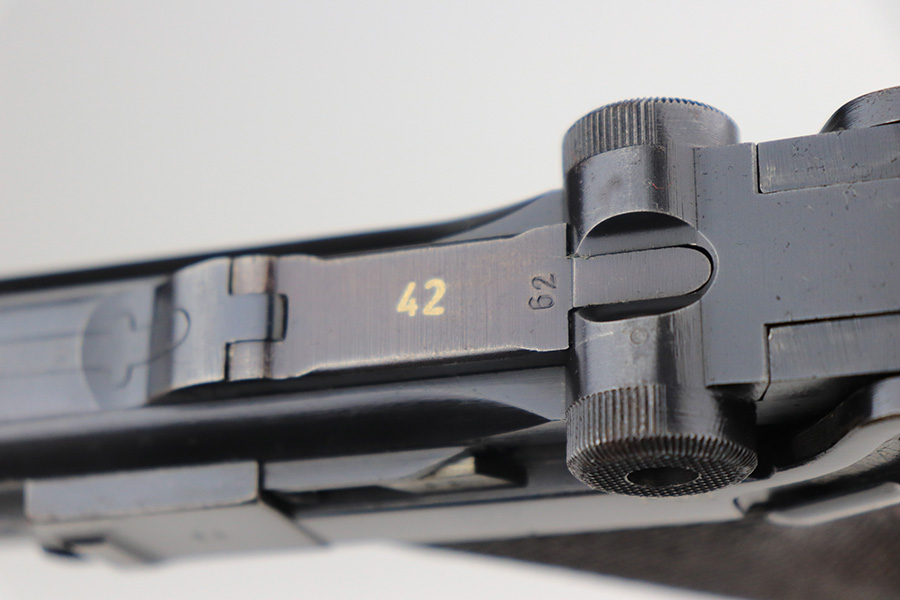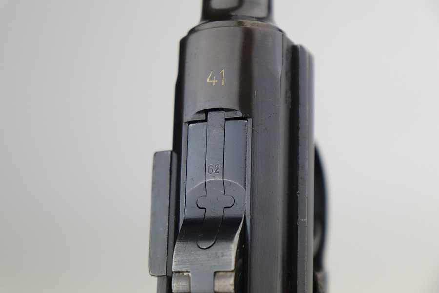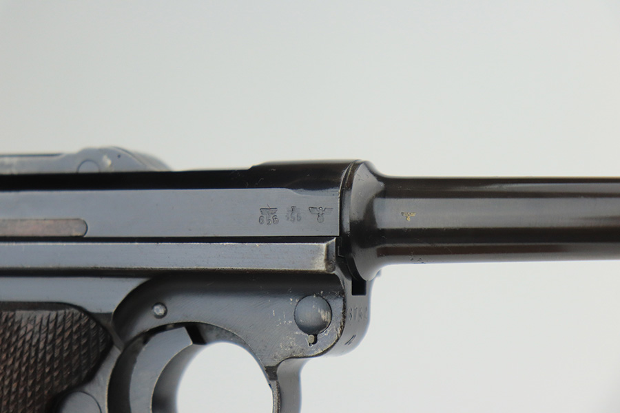 12/15/21 – This is an excellent example of a Mauser Luger issued to the Nazi military in 1941. This one has a scarce “41/42” Code. Only about 7,000 of this variation were made, making it even rarer than a K date Luger. This one also comes with an original matching magazine. It is in excellent condition, retaining about 95-97% of the blued finish. The finish is excellent overall but unfortunately partially restored on the barrel and the chamber. Most of the wear is on the grip straps as a result. The grips are unnumbered and have a waffenamt. Minor handling wear but no chips. Original factory numbered matching magazine. The bore is shiny with strong rifling but has a little freckling in the grooves.