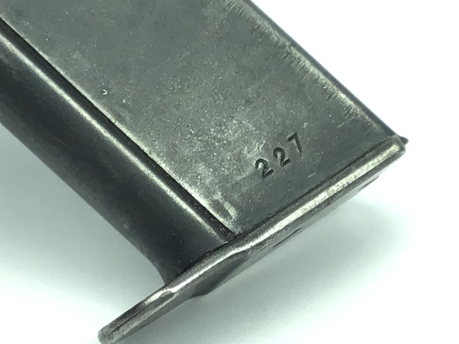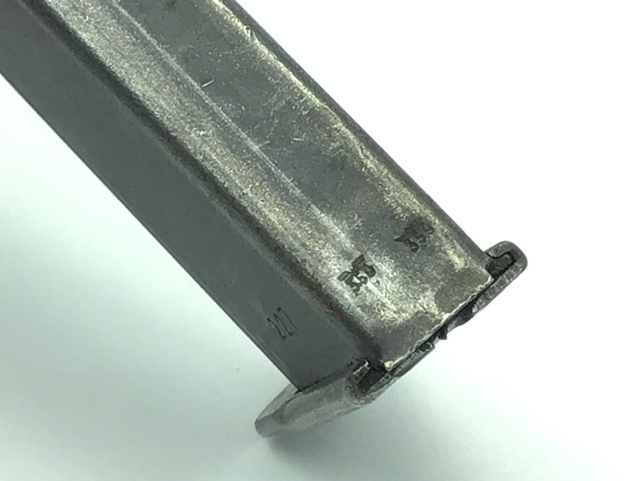 9/24/20 – This is an original early production 480 code P.38 magazine. The 480 code P.38 was the first code used by Walther in 1940. Only 7,380 P.38 pistols (serial range 1-7380) with the 480 code were produced, which make this variation quite rare. The magazines were all serial numbered on the side of the frame, and there were two eagle/359 stamps on the bottom of the spine. These stamps are all present on this magazine, with no other markings. No flaws or issues with this magazine. Great condition with minimal wear. Spring is strong and fully functional. Guaranteed original. You can find more information about the 480 code P.38’s here http://p38guns.com/480.htm
