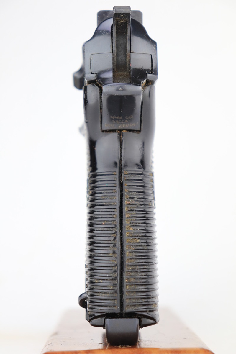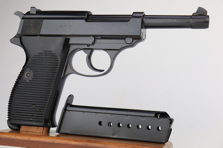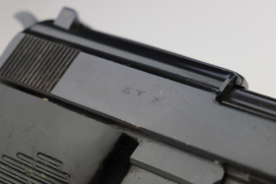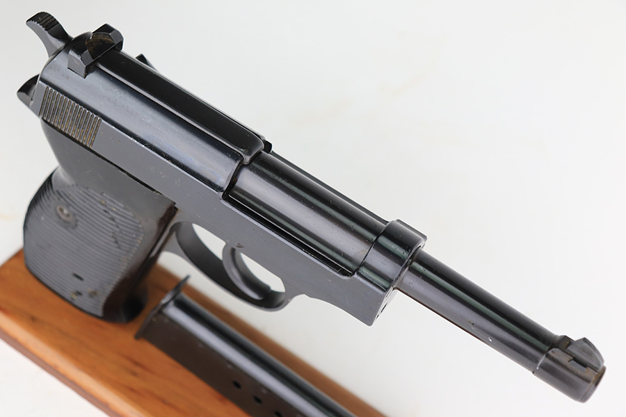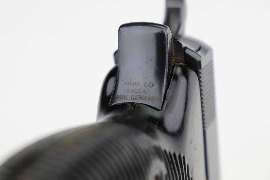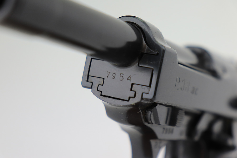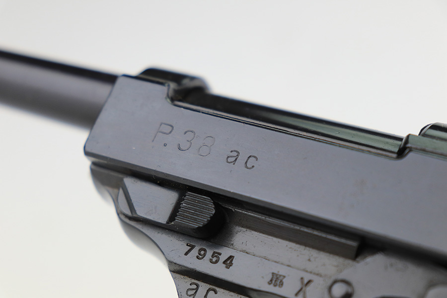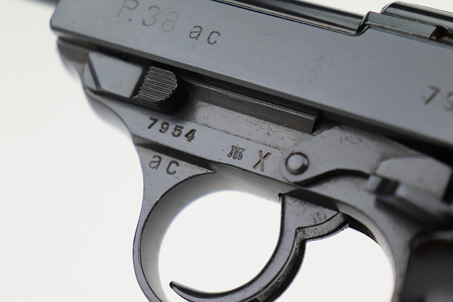 3/21/2023 – This is a rare AC no-date Walther P.38 issued to the Nazi military in 1940. It is all matching, with all of the proper military proofs. The entire gun has a Russian-dipped finish, with Russian x’s on the slide and frame. There is virtually no actual finish loss, but there are a few tiny handling marks throughout, and an area of minor pitting under the finish on the left hand side of the slide. Import marked under the tang.