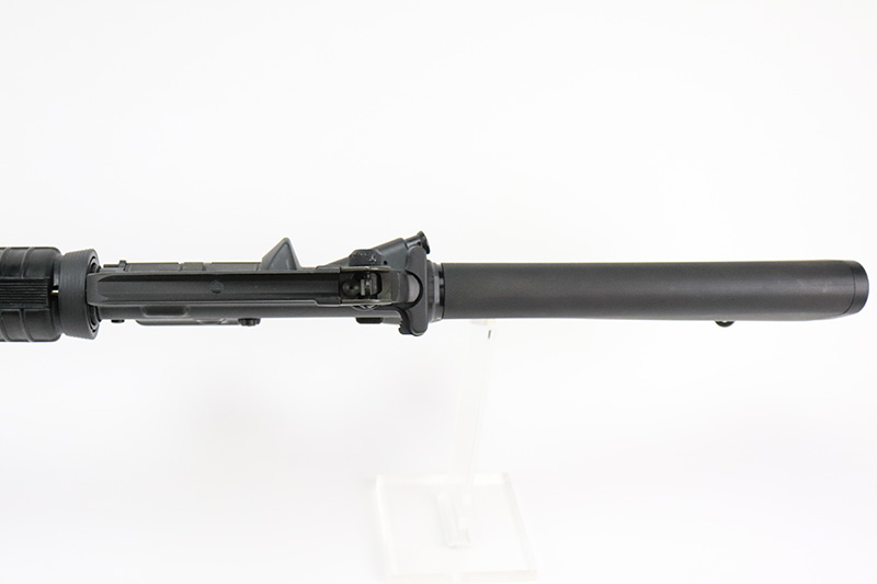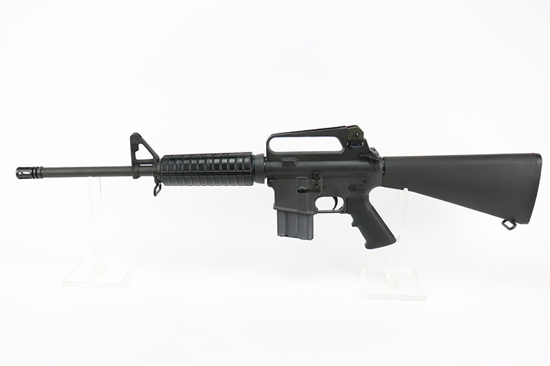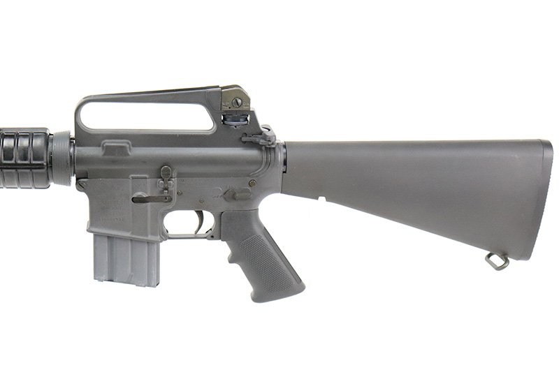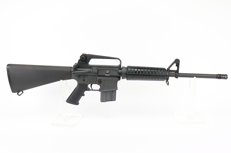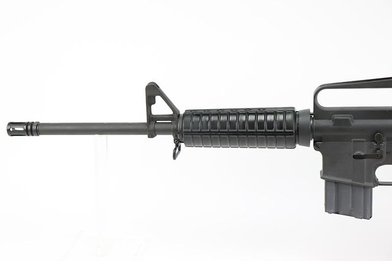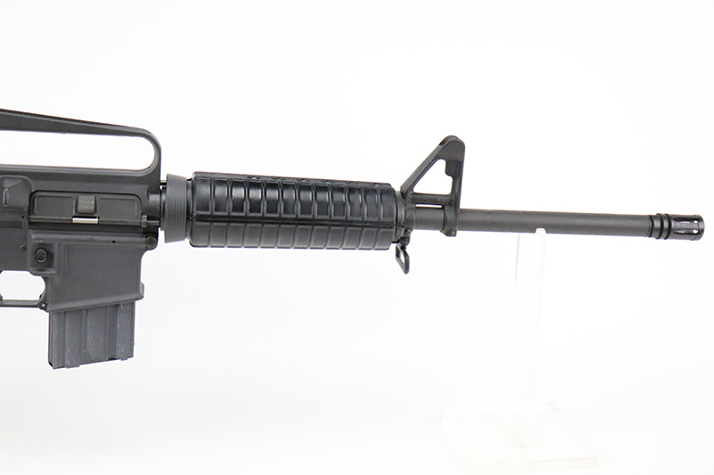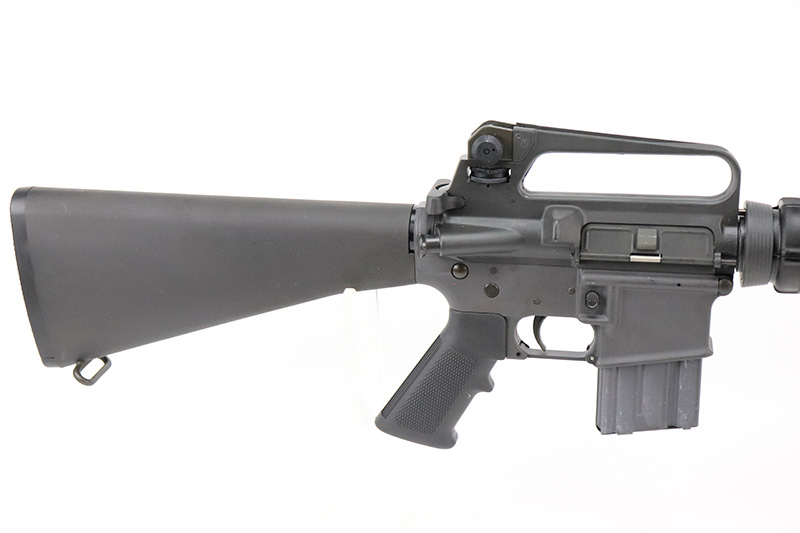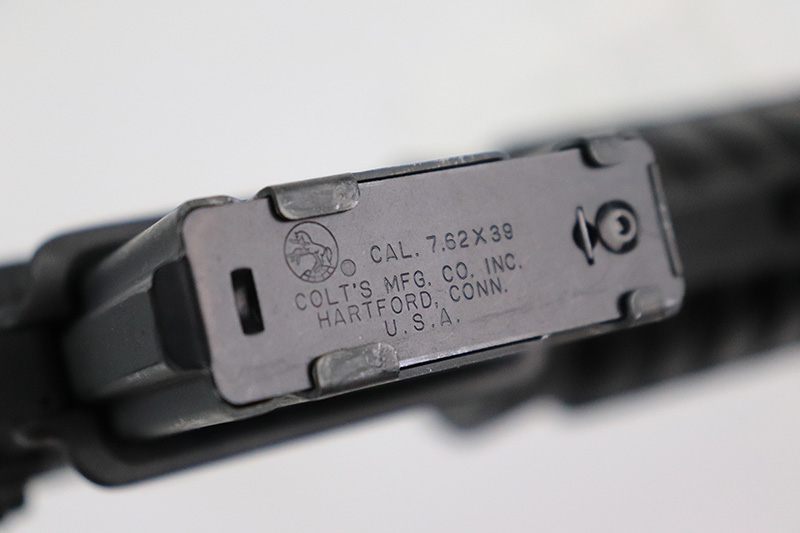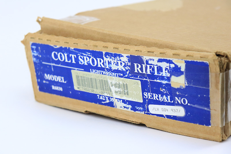 9/6/22 – This is “as new in the box” example of a scarce Colt AR15 lightweight rifle, chambered in 7.62×39 and only made for a couple of years around 1992-1993. This is a complete set that includes a still sealed sling, a manual, and even has a barrel plug present. The gun appears nearly unfired and has just a few tiny rub marks on top of the barrel from shifting inside the box. The box is an early blue label and is matching to the gun’s serial number. Just a few thousand of these were made before being discontinued and now are very collectible.