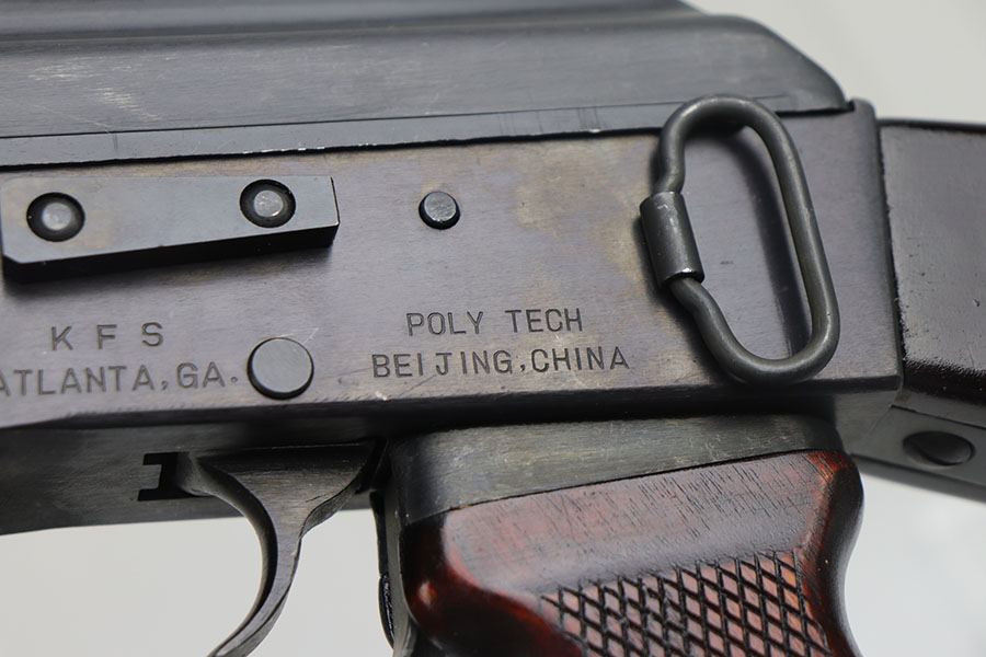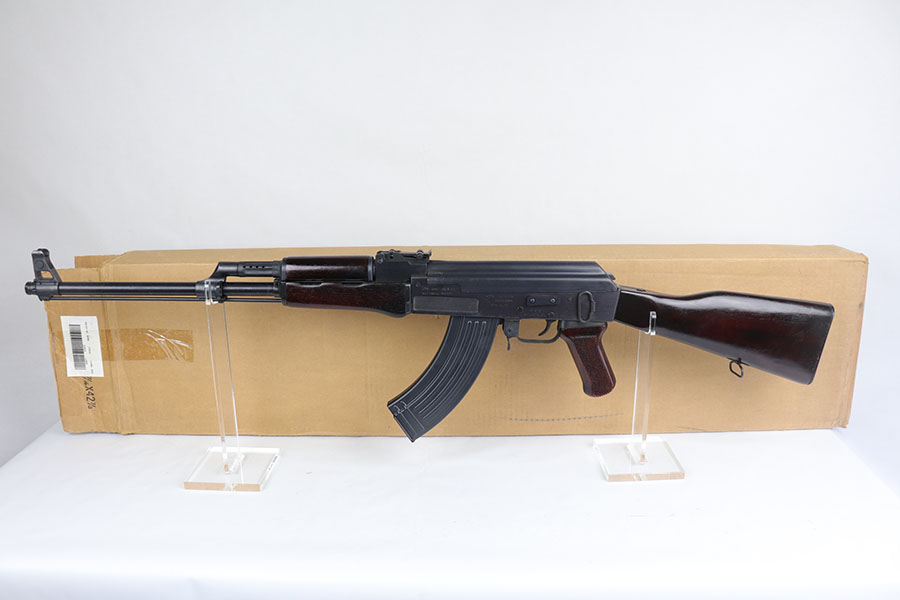 9/16/20 – This is a rare Poly Tech National Match AK 47/S in original numbered box. There were only about 4,000 of these pre-ban examples imported, and the National Match variation was produced with milled receivers, match grade parts and are slightly longer overall. It has a fixed wood stock with wood pistol grip. One 30 round magazine is included, and one smaller capacity magazine (maybe 10 rounds?). There’s tiny hints of box wear but overall the rifle hardly looks used and has a mint bore. Has the original Styrofoam insert in the box, as well as sling and manual.
