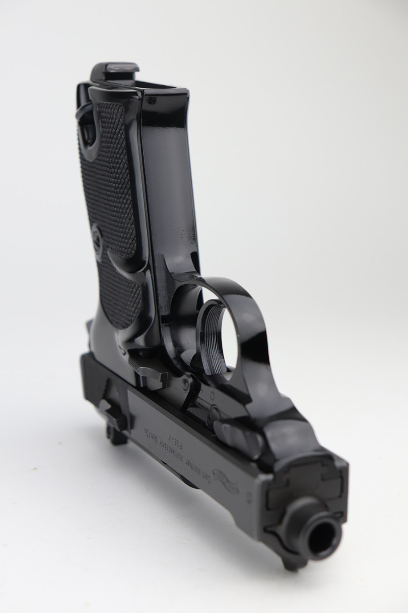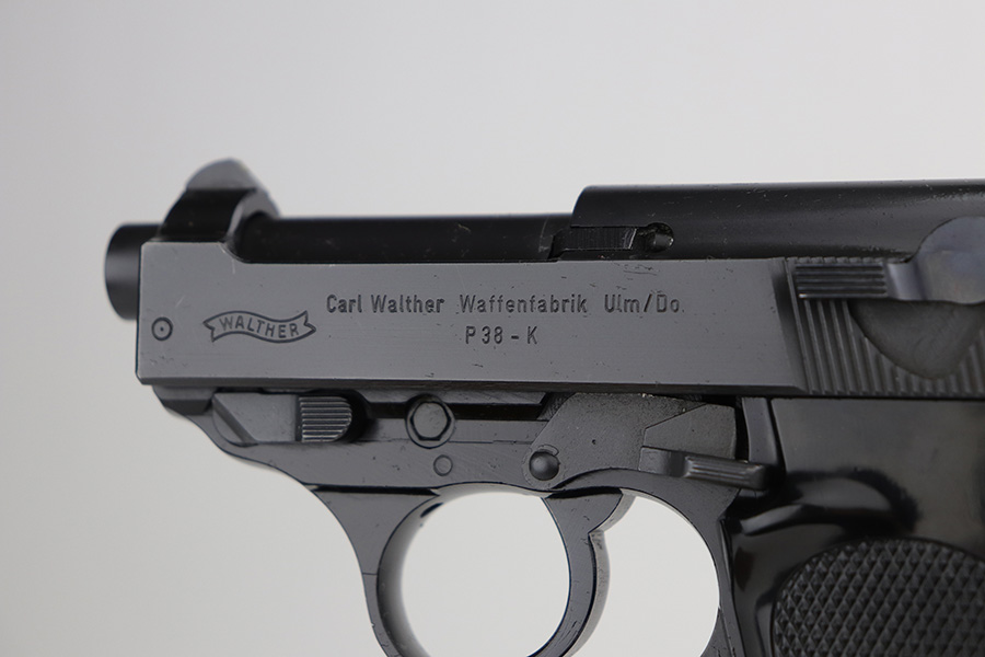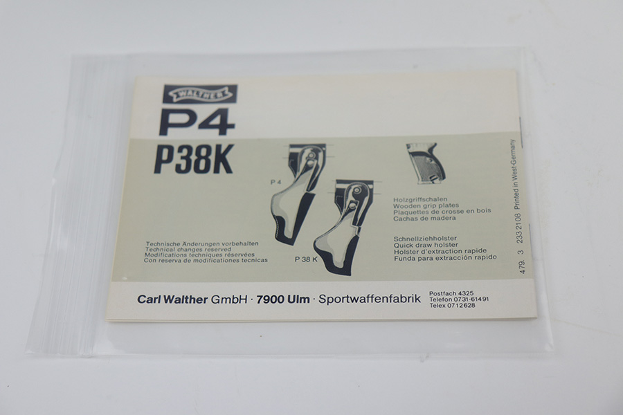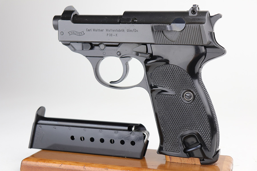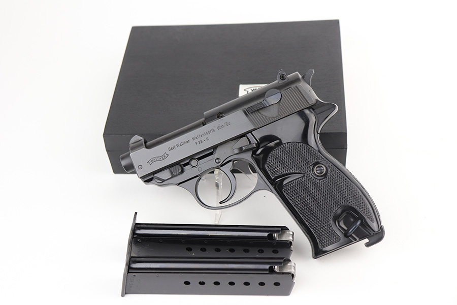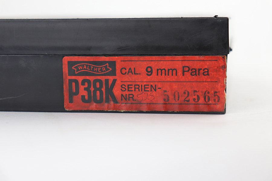 8/18/21 – This is a rare, mint Walther P.38-K in its original, matching box. It’s one of the last ever made, only 30 digits off from the latest reported serial, and there were only ever 2,650 produced in total. It’s all matching and original with just a hint of “box wear”, but otherwise looks brand new. Mint bore. Comes with the cleaning rod, original manual and spare magazine (no test target). Import mark on right side of frame.