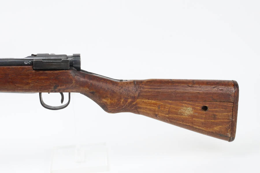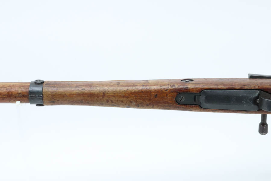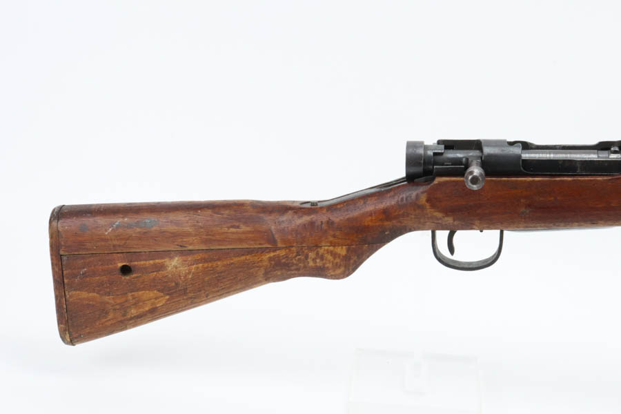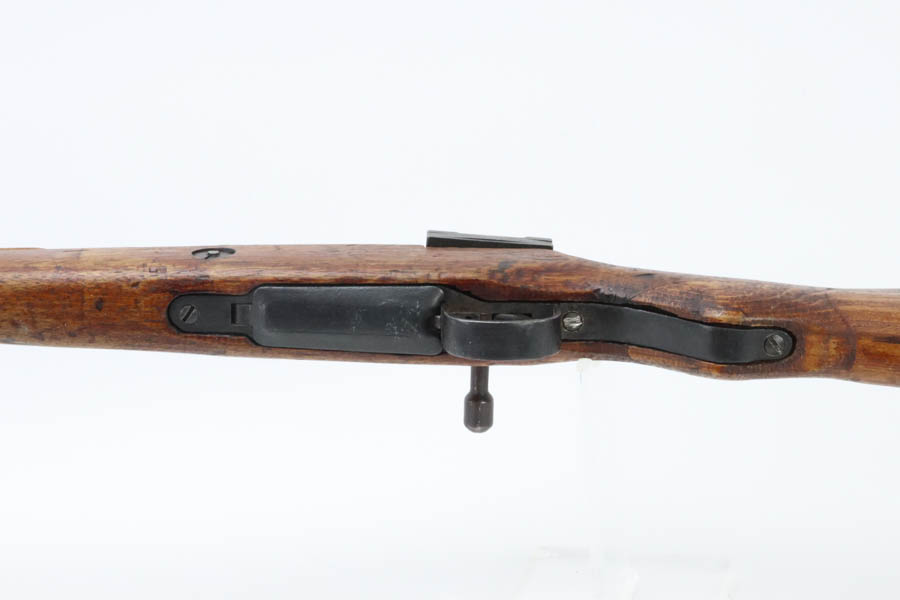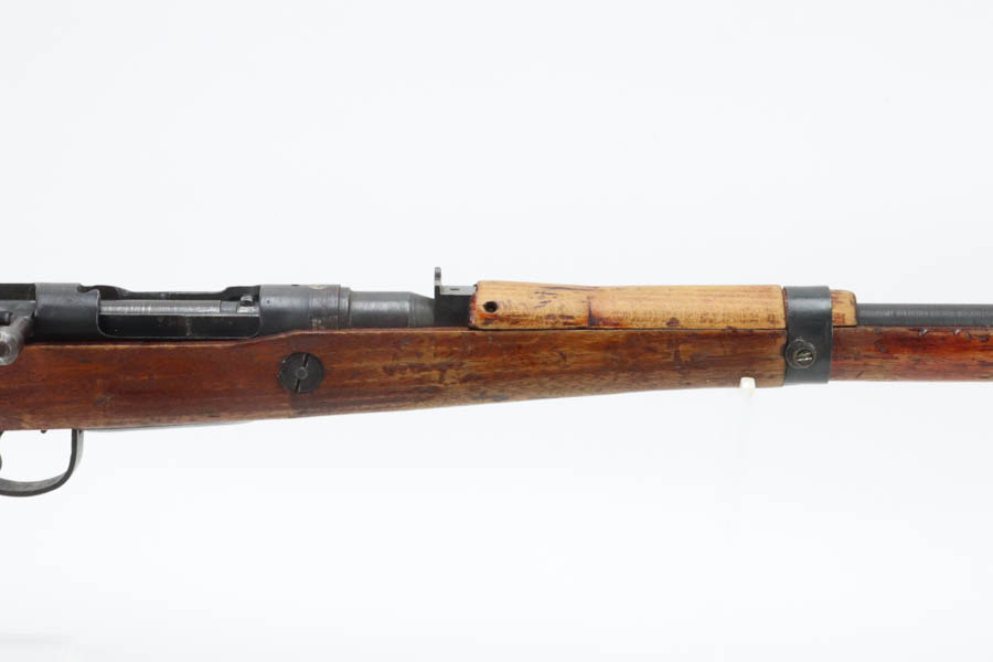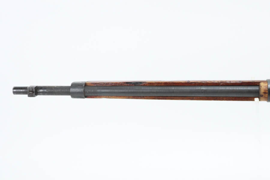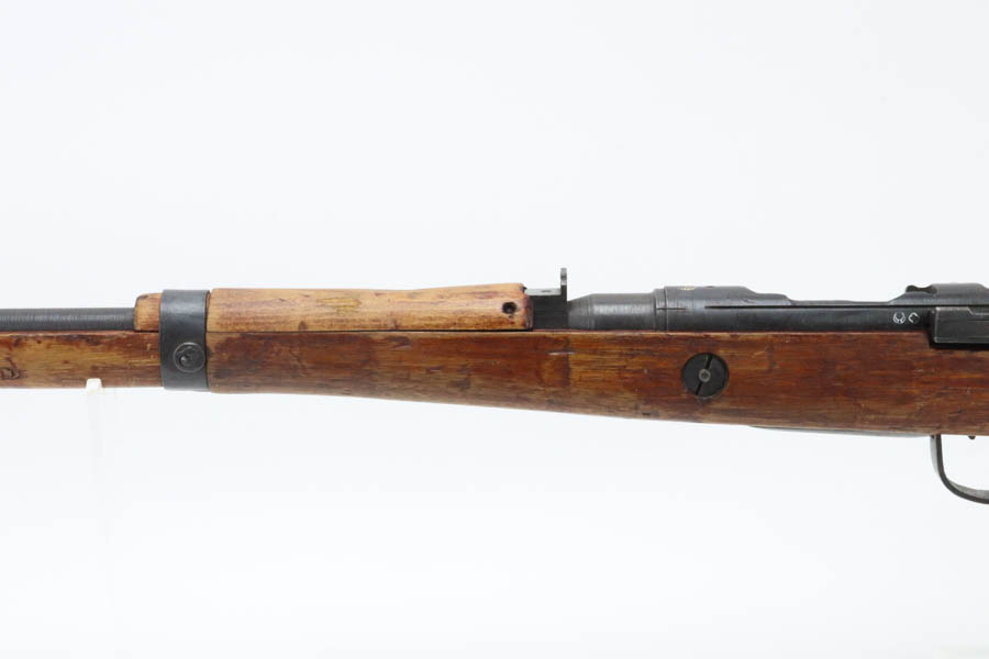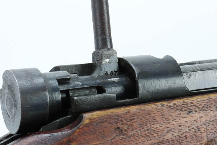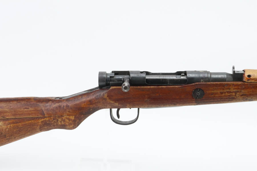 06/25/2024 – For sale is a very late “Last Ditch” Type 99 Arisaka that was likely a factory incomplete model. Many very late Type 99’s made by Tokyo Juki Kogyo have been documented as incomplete rifles put together. Many were missing parts or not finished. This example Is in great condition with the metal parts retaining much of their bluing. There are specks of oxidation throughout. The stock features a rope hole for a rope sling instead of traditional leather slings. There is no front sling swivel. The stock is correct as it is a 3 piece stock being held together by the barrel bands. The bore is fairly bright but it is darkening. There is no serial number stamped on the receiver. The bolt release lever is loose and does not hold the bolt in place. Examples of these rifles were found without bolts and this rifle has a bolt mismatch. The stock is properly proofed for TJK.
