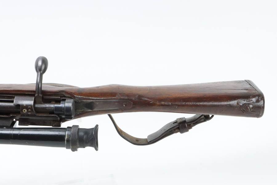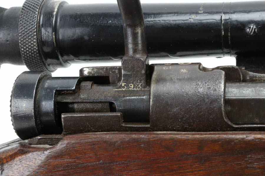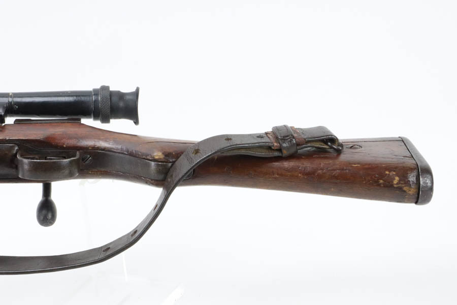 06/13/2024 – For sale is an Arisaka Type 99 sniper made at the Nagoya Arsenal. The overall condition of the rifle is 85%. The metal retains the majority of its original bluing but there are spots of oxidation and patina throughout. The Imperial Mum and the characters “Type 99” are ground. The rifle is nearly matching but it is mismatched on the safety knob. The scope is in great condition but the lenses are slightly dirty. The bore is bright with great rifling, but there are spots of corrosion about 2 inches from the muzzle. Sometime in the past, someone had used wood putty to fill in parts of the stock at the screw hole for the buttplate.