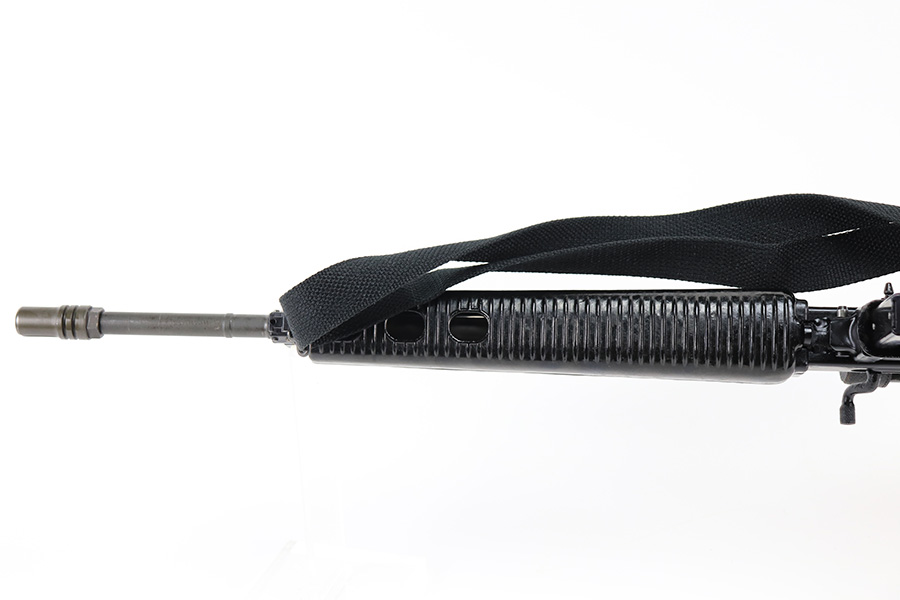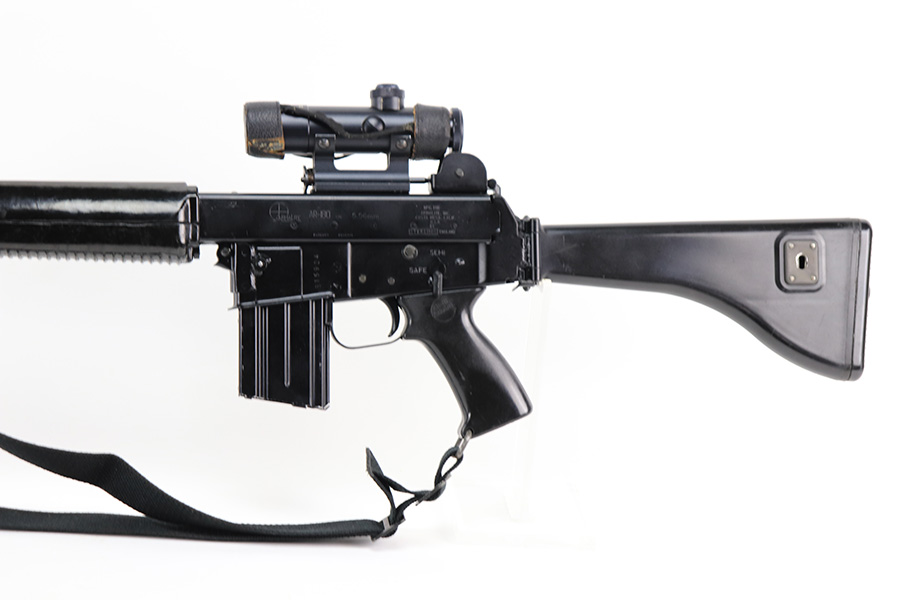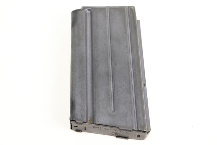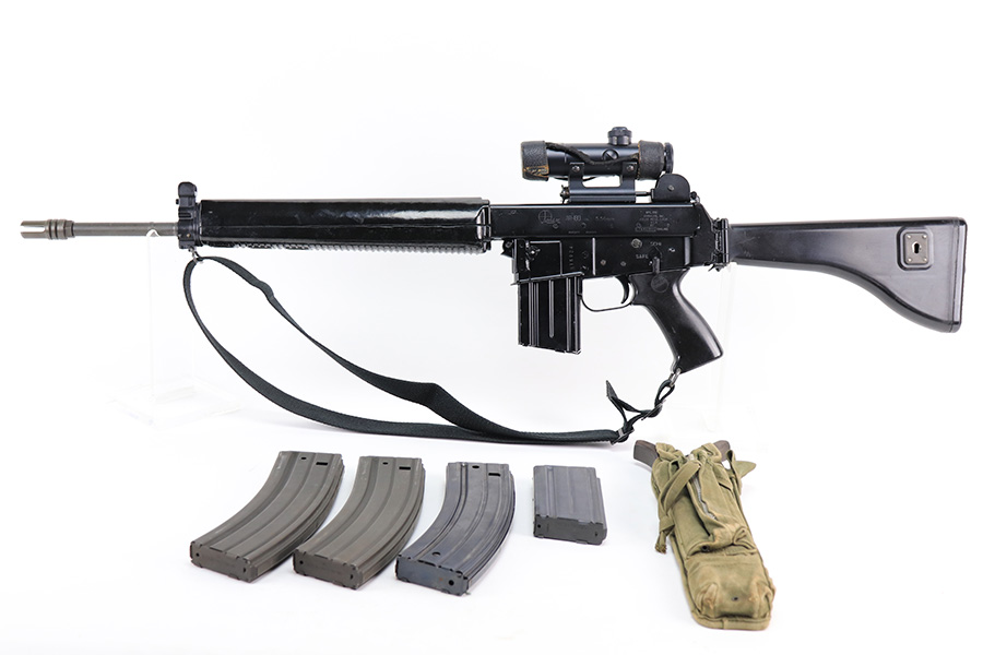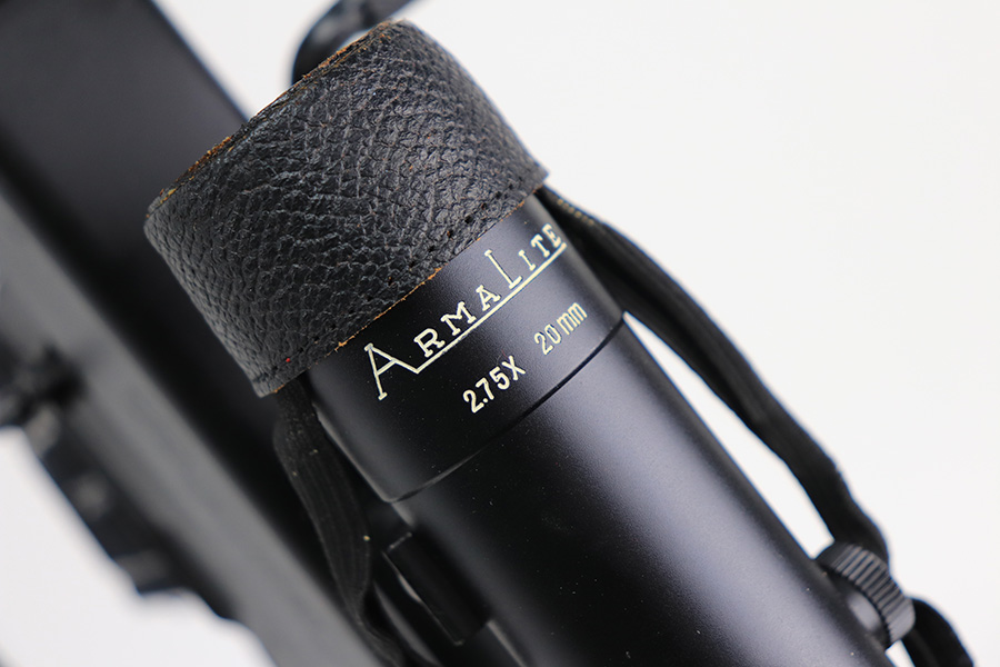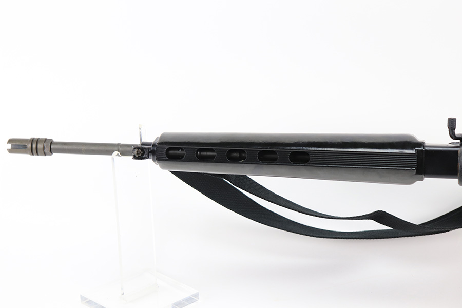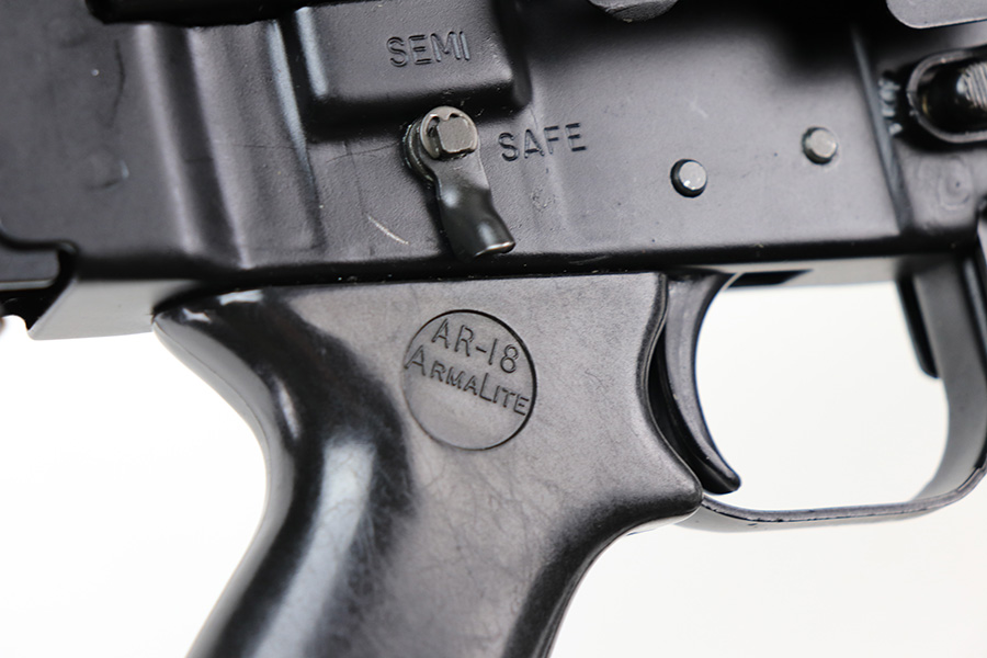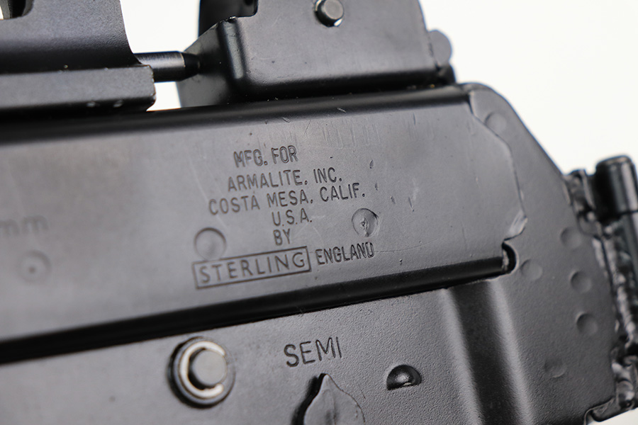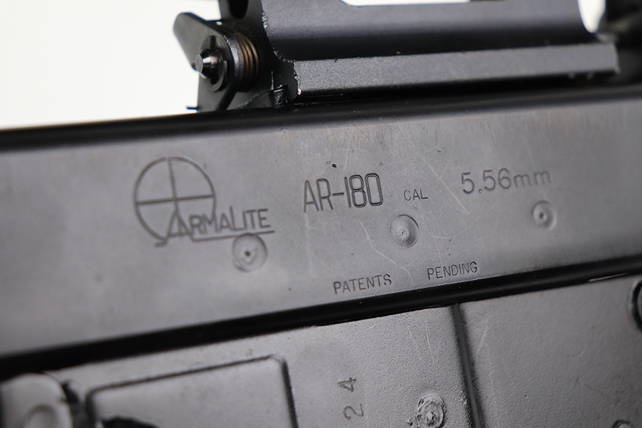 1/6/22 – This is an excellent example of a rare Armalite AR-180 Rifle. According to research, only about 4,000 of these guns were made in Costa Mesa, CA starting in July of 1969. The AR-18/180 was the latest iteration of the then-new method of rifle construction featuring stamped and welded steel fabrication. It is, for all intents and purposes, a scaled-down version of the 7.62 NATO-caliber ArmaLite AR-16. The AR-18/180 utilizes a short-stroke piston to facilitate operation. The rifle retains the familiar rotating bolt of the AR-15/M16, mounted in a carrier, but the carrier rides on a pair of guide rods. Instead of a buffer-spring unit contained in the buttstock as the AR-15/M16 has, the AR-18/180 utilizes a pair of action springs on the guide rods. You could say that the AR-18/180 is the more-or-less budget version of an AR-15/M16, which still used expensive forgings in its critical operation components. The AR-18/180 replaced most of these with stamped steel and welded components. Even the internal hammer is a stamping. The use of these stamped components required an increase in the tolerances, that some say leads to a slight increase in reliability in dirty environments, though this notion is by no means proven. A sliding, spring-loaded dust cover, also a stamping, offered some protection of the receiver from debris while the rifle was being transported. This particular example is in excellent condition, retaining virtually of its finish – just some light scuffs here and there. The gun comes with a very nice 2.75x20mm Armalite scope (excellent optics), black canvas sling, two 15-rd Armalite mags, two 30-rd Sterling mags, and one 30-rd un-marked magazine. The gun also comes with a bipod and canvas bipod cover. The bore is mint.