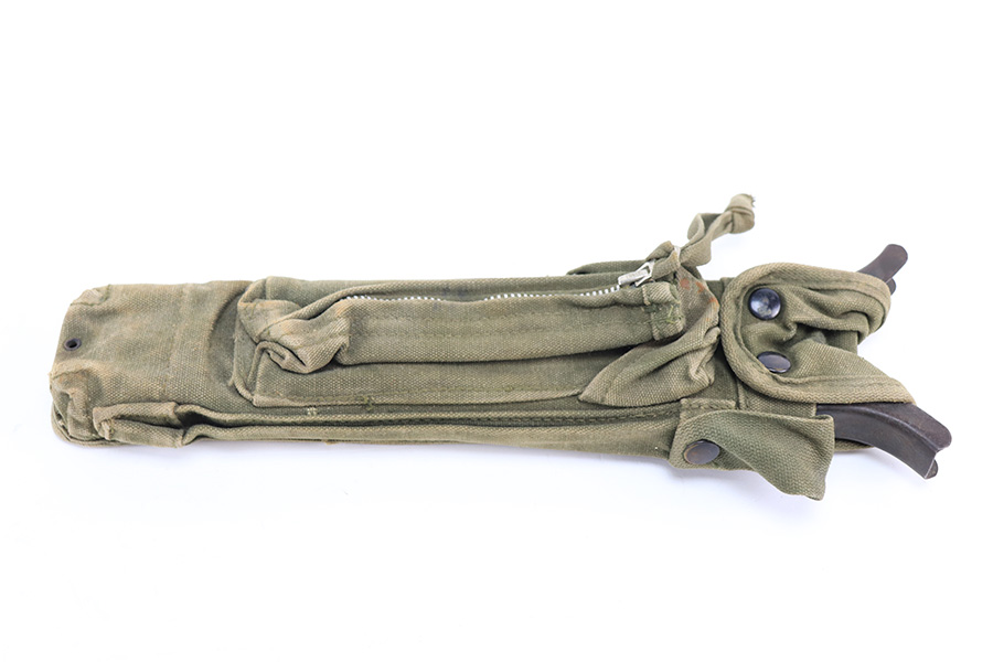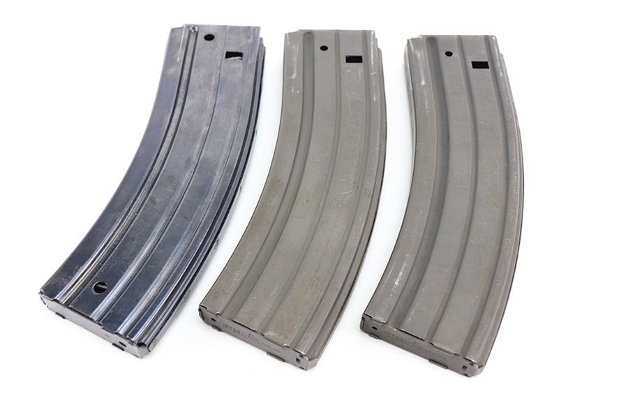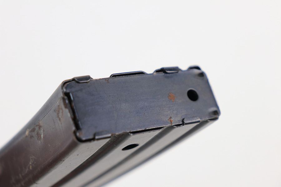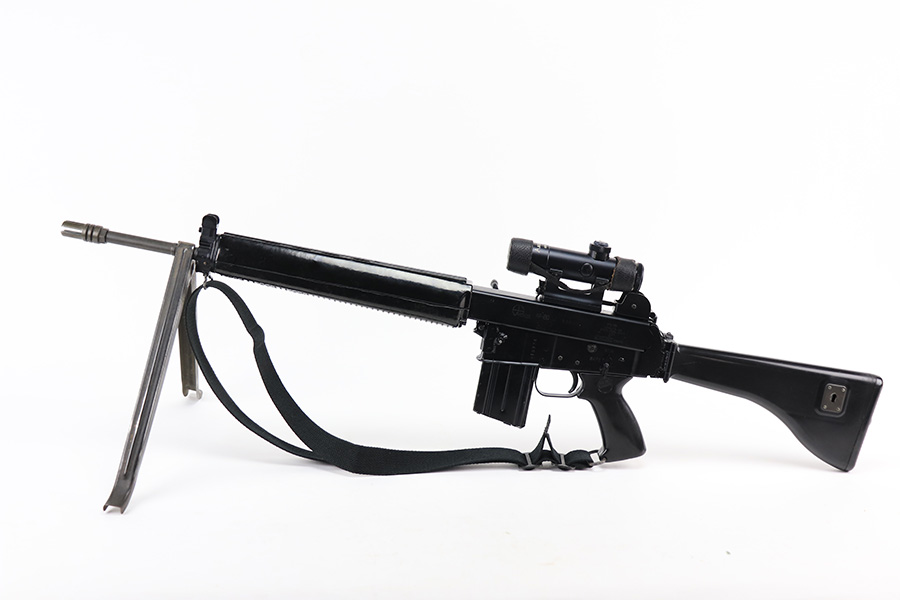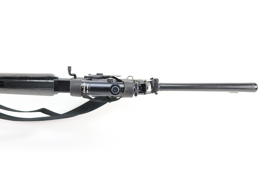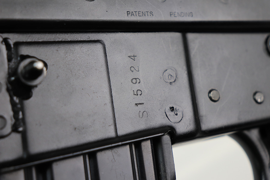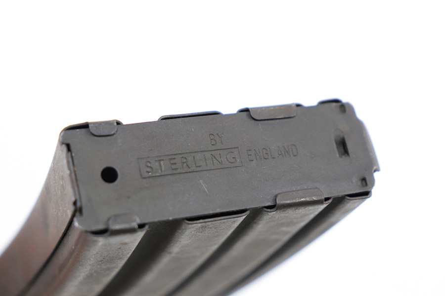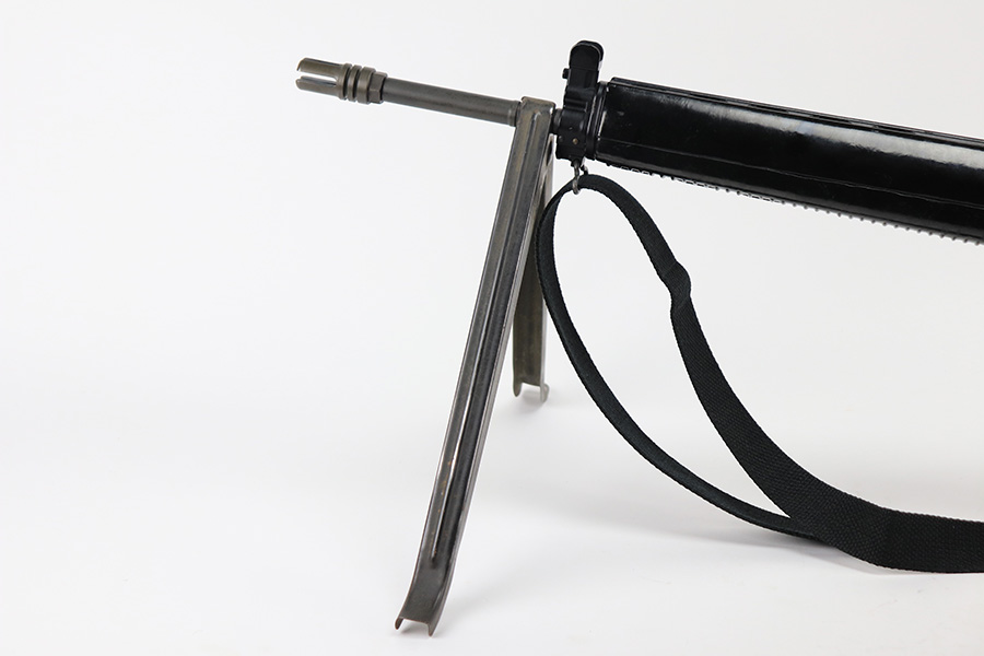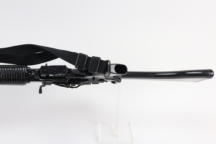 1/6/22 – This is an excellent example of a rare Armalite AR-180 Rifle. According to research, only about 4,000 of these guns were made in Costa Mesa, CA starting in July of 1969. The AR-18/180 was the latest iteration of the then-new method of rifle construction featuring stamped and welded steel fabrication. It is, for all intents and purposes, a scaled-down version of the 7.62 NATO-caliber ArmaLite AR-16. The AR-18/180 utilizes a short-stroke piston to facilitate operation. The rifle retains the familiar rotating bolt of the AR-15/M16, mounted in a carrier, but the carrier rides on a pair of guide rods. Instead of a buffer-spring unit contained in the buttstock as the AR-15/M16 has, the AR-18/180 utilizes a pair of action springs on the guide rods. You could say that the AR-18/180 is the more-or-less budget version of an AR-15/M16, which still used expensive forgings in its critical operation components. The AR-18/180 replaced most of these with stamped steel and welded components. Even the internal hammer is a stamping. The use of these stamped components required an increase in the tolerances, that some say leads to a slight increase in reliability in dirty environments, though this notion is by no means proven. A sliding, spring-loaded dust cover, also a stamping, offered some protection of the receiver from debris while the rifle was being transported. This particular example is in excellent condition, retaining virtually of its finish – just some light scuffs here and there. The gun comes with a very nice 2.75x20mm Armalite scope (excellent optics), black canvas sling, two 15-rd Armalite mags, two 30-rd Sterling mags, and one 30-rd un-marked magazine. The gun also comes with a bipod and canvas bipod cover. The bore is mint.