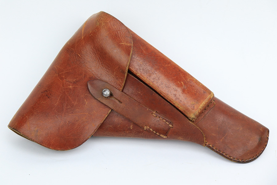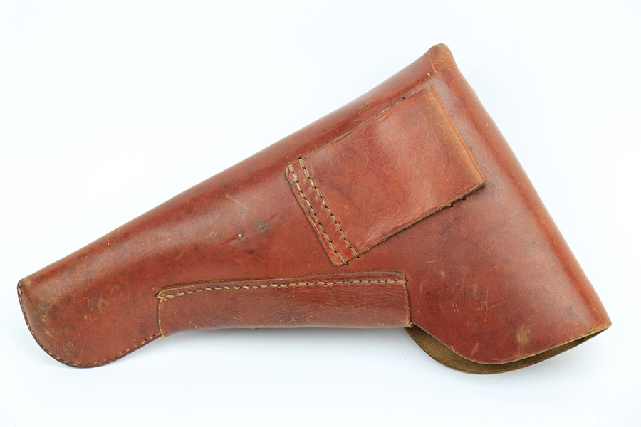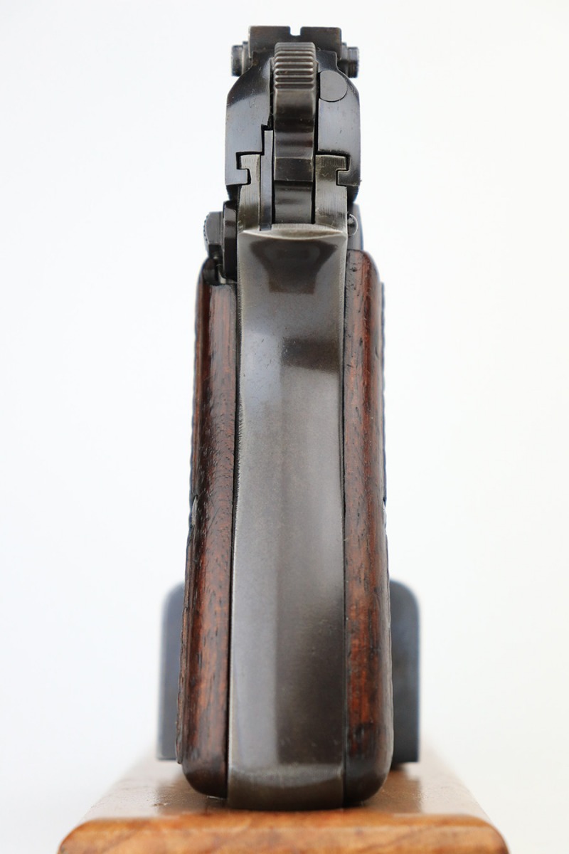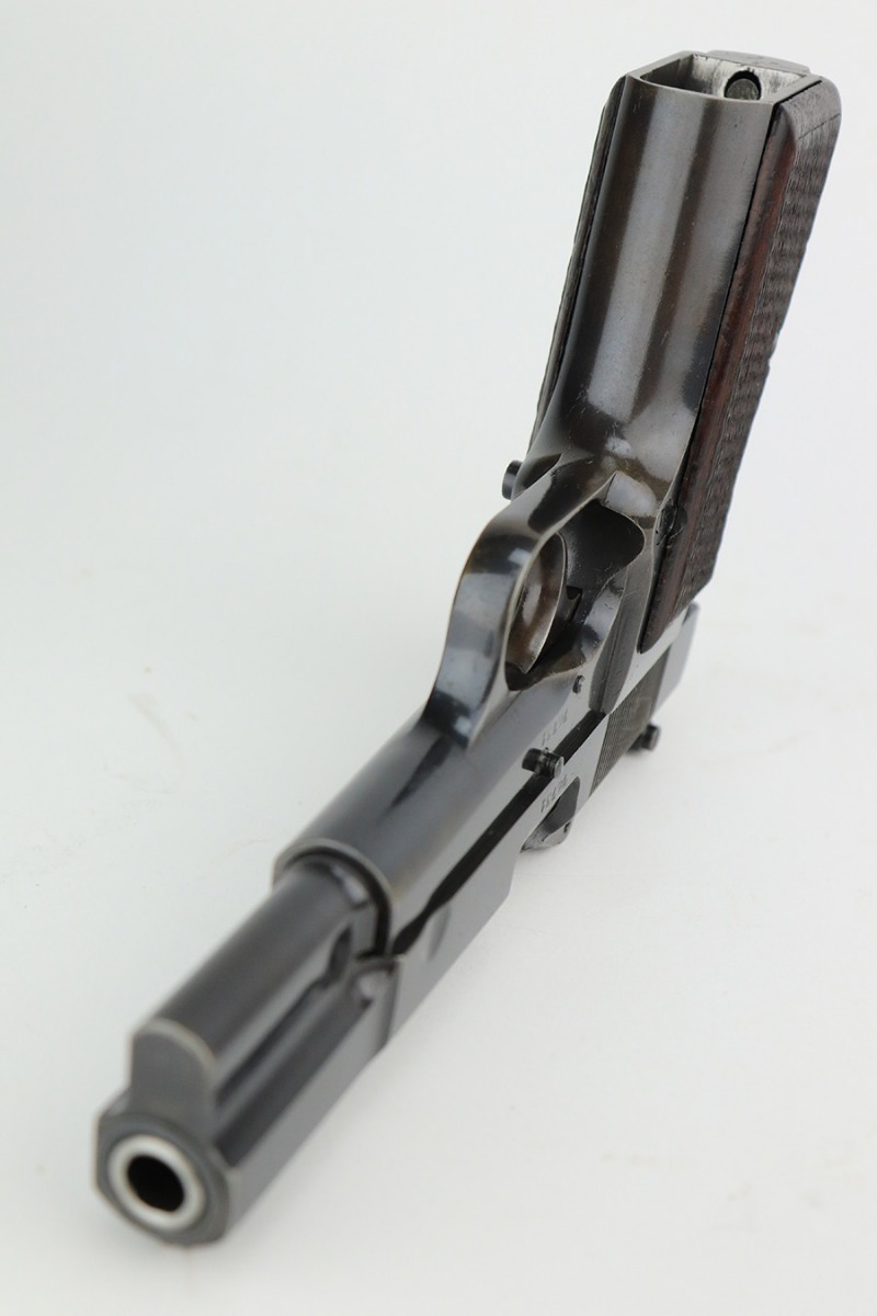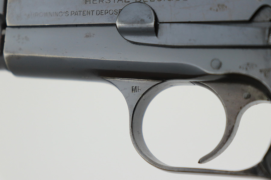 5/25/23 – This is a scarce and desirable FN Browning High Power rig with WaA103 acceptance proofs and tangent rear sight. All matching and original with 95+% of the blue remaining, there isn’t much finish loss on this pistol in general but there is some patina on the straps and some pitting along the left side of the pistol, especially on the muzzle. Terrific bore. Excellent grips with minor handling wear but no cracks. The rig has two magazines, both of which are also WaA103 proofed. It’s completed by a very nice ‘dla’ maker marked holster with sharp waffenamt.