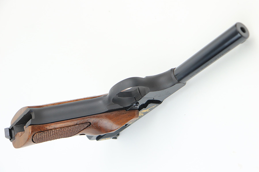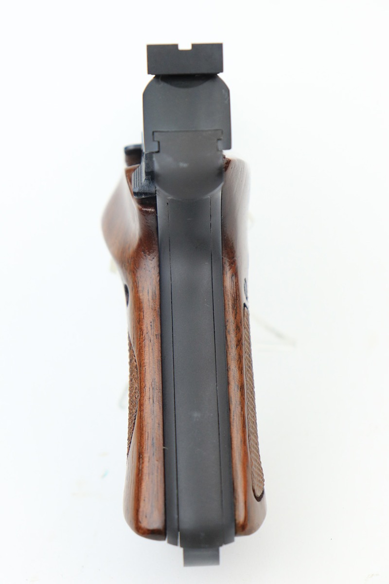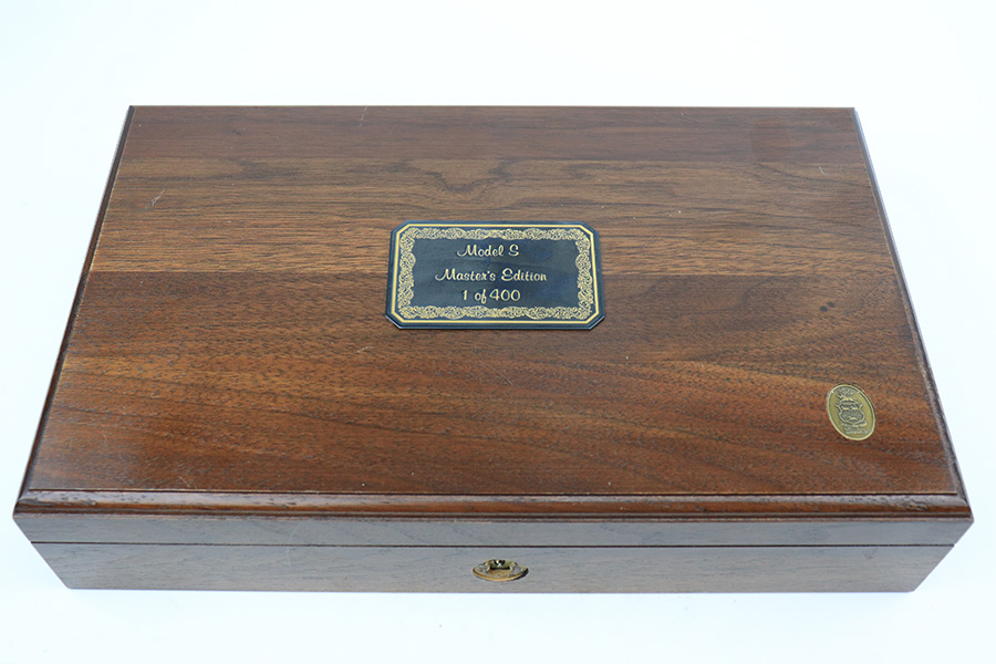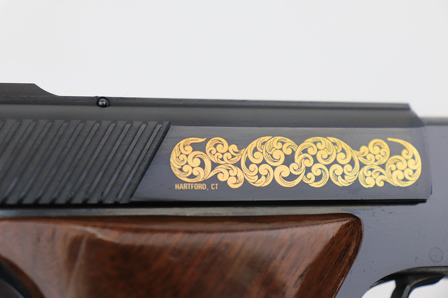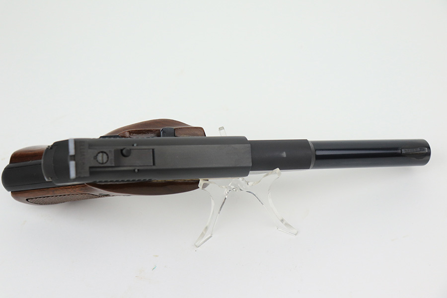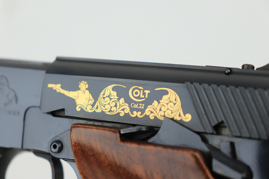 12/2/21 – This is a rare, gorgeous Colt Huntsman Model “S” Master’s Special Edition pistol, one of only 400 produced. It comes with Colt factory letter, indicating this pistol was shipped to a sporting goods retailer in Alabama in 1983. It features gold etching on the slide with floral scroll engraving. The pistol is in mint condition, and looks like it has only ever been used for display purposes. It has just a single spot of “box wear” along the top of the slide. It comes in a walnut presentation case that has Francis Blue lining with external plaque and Colt custom shop medallion.