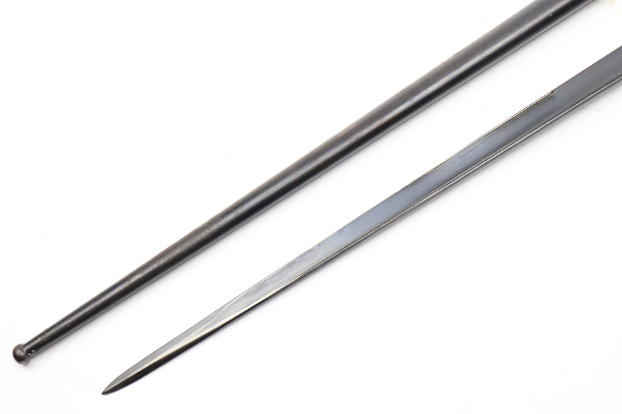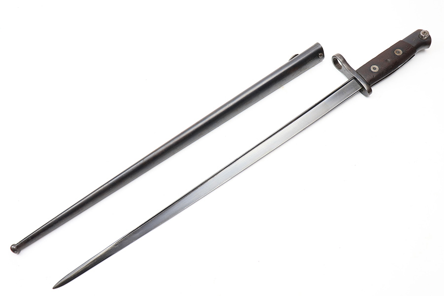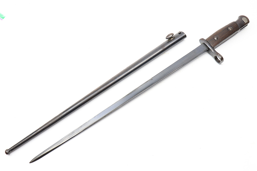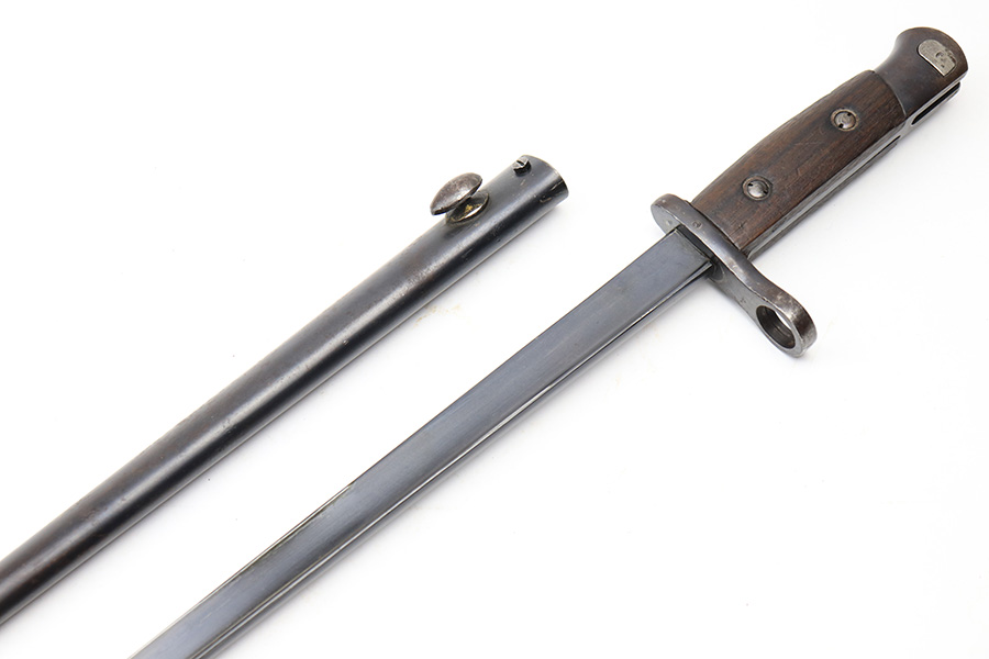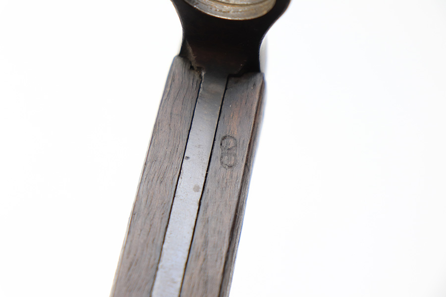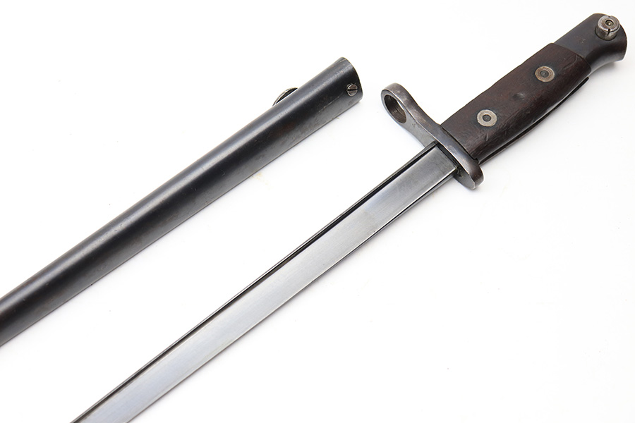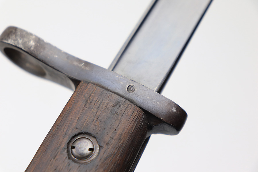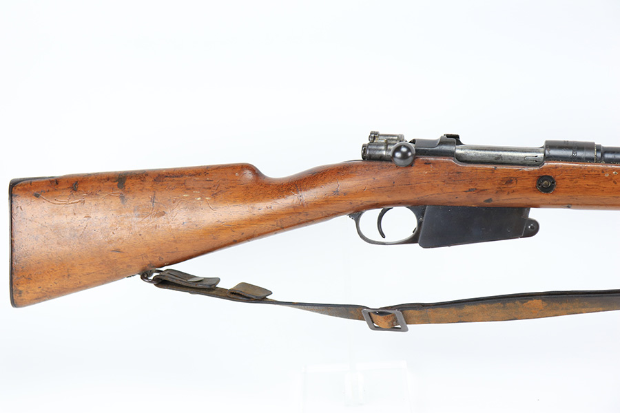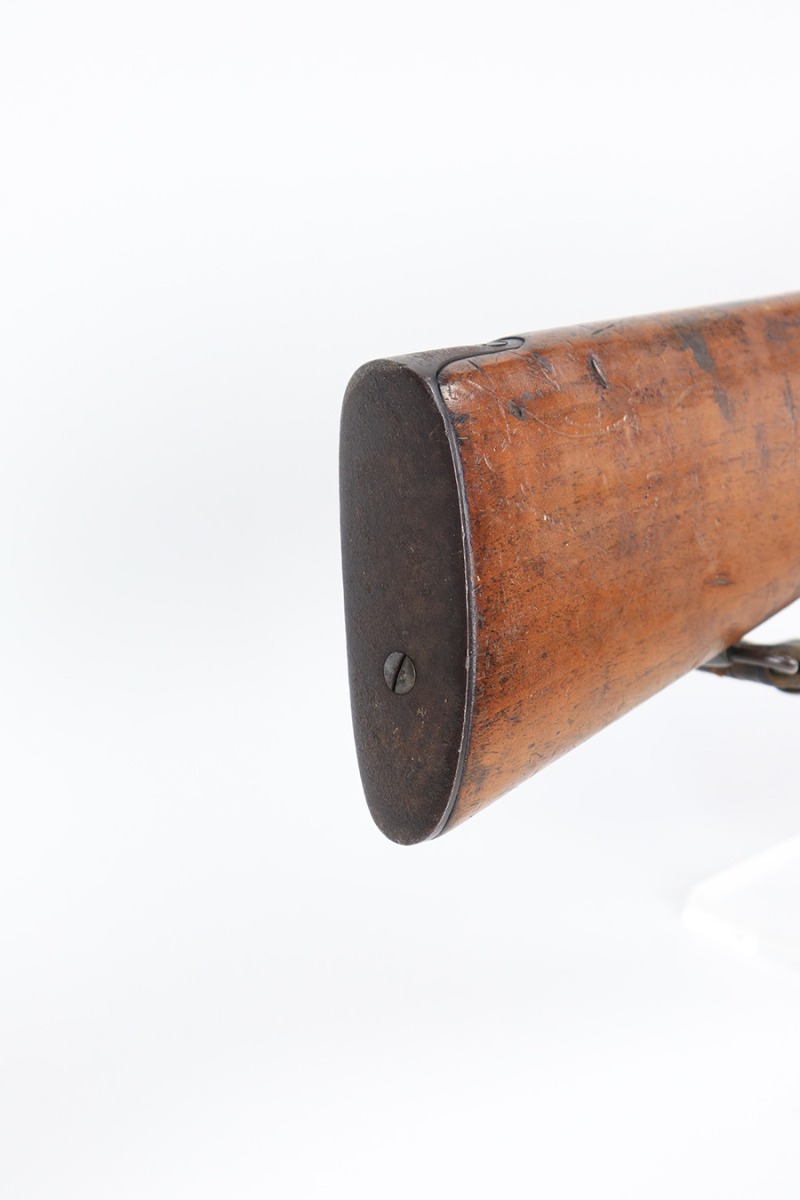 3/31/22 – This is a nice example of a rare Belgian Model 1889/36. Originally manufactured as a Model 1889 rifle, it was subsequently rebuilt just prior to WWII and modified into its current, somewhat more modern configuration. This rifle is chambered for the 7.65x53mm cartridge and had a new 23″ Model 1935 style barrel installed when it was reworked by Manufacture d’Armes de l’Etat. Numerous other modifications to the original rifle were performed during the same rebuild including shortening the front of the stock, installation of new barrel bands & bayo lug, and fitting of a Mauser 98 style bolt sleeve and safety. These rifles saw service with Belgian troops defending their homeland against the invading Nazi’s during WWII and were also in service with Belgian Congolese troops fighting the Germans in North Africa. The barrel and stock (arsenal-renumbered) match the receiver. Bolt assembly, magazine, and butt plate are mismatched. No import marks. The gun comes with a period-correct bayonet, scabbard, and leather sling. There isn’t much actual finish loss, but there is freckling and light spotty oxidation throughout. Tiny dings, scratches, and bruises on the stock throughout. The bore has good rifling with minor pin-pricking in the grooves.