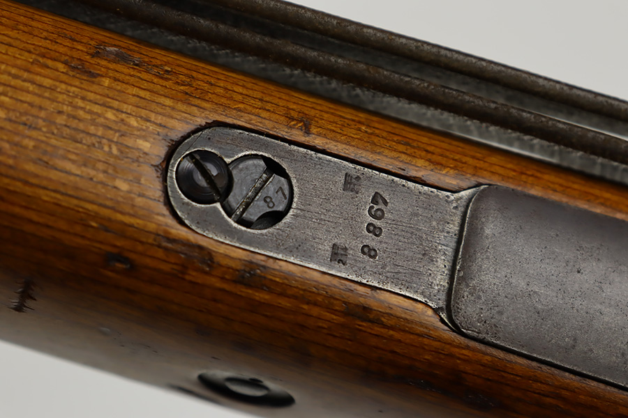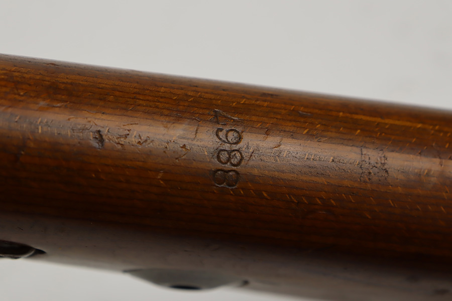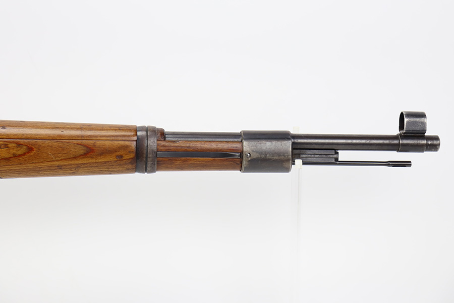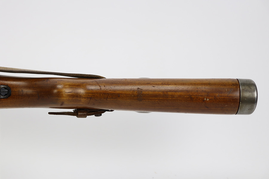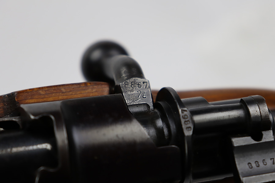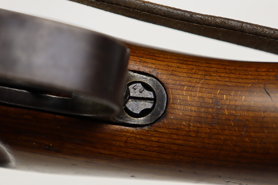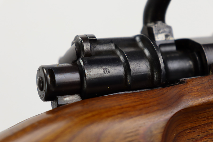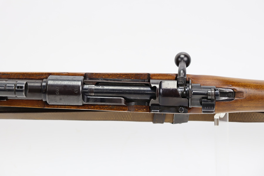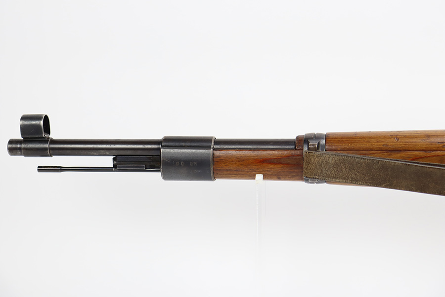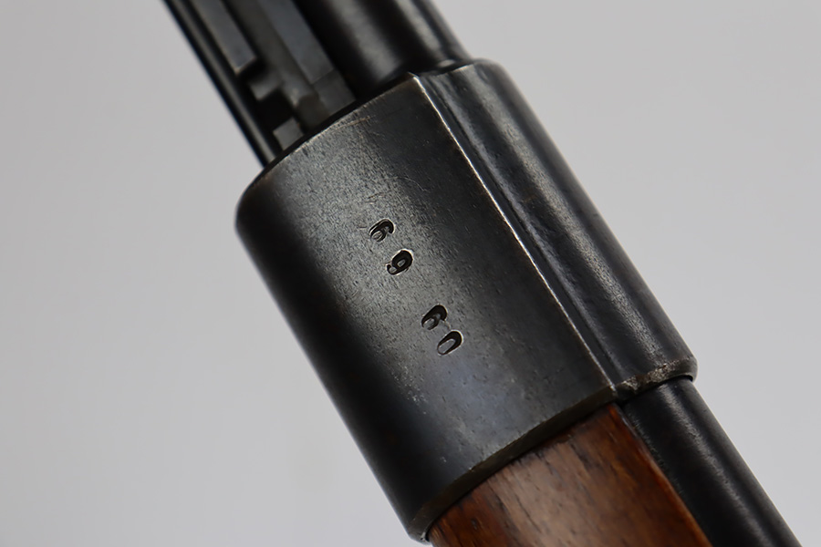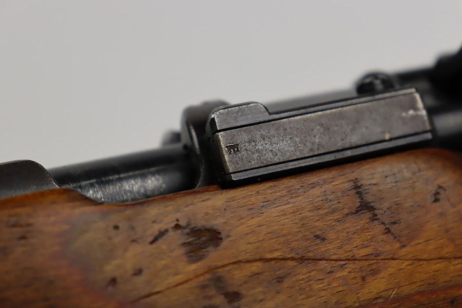 10/12/23 – This is a rare, early Berlin-Lubecker Z.F.41 K98 sniper rifle from 1941. The rifle is mostly matching, with only mismatched barrel bands (they match each other). Matching numbers on the bolt, stock, receiver, barrel, bolt release, floorplate, follower, etc. The stock is likely force matched though as it does not have the correct waffenamt. The screws in the trigger group are matching to each other but mismatched to the stock. The bluing on the rifle is very nice overall with minor oxidation on the receiver, and thinning on the trigger group. The stock has been lightly sanded, but waffenamts and serial are still visible. It has various dings and minor chips but no cracks. The rifle features the early flat roller mount with correct ‘duv’ scope mount. The scope is marked ‘Z.F’ with a ‘bmj’ maker mark. Scope is in good condition with slightly cloudy optics. The listing also includes a sling, cleaning rod and sight hood, as well as a scarce scope can.