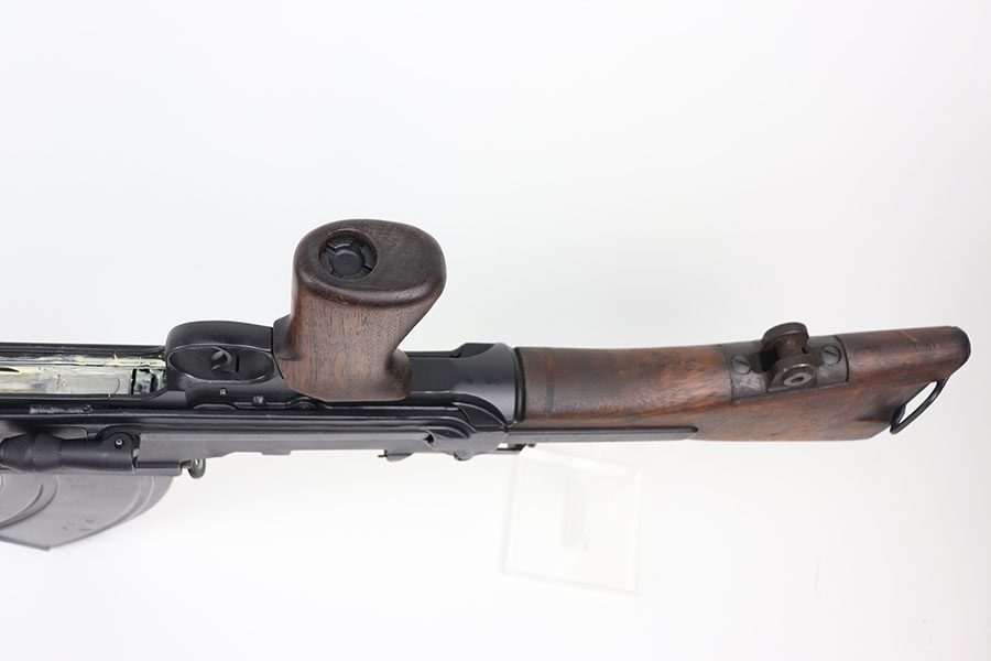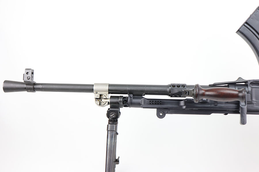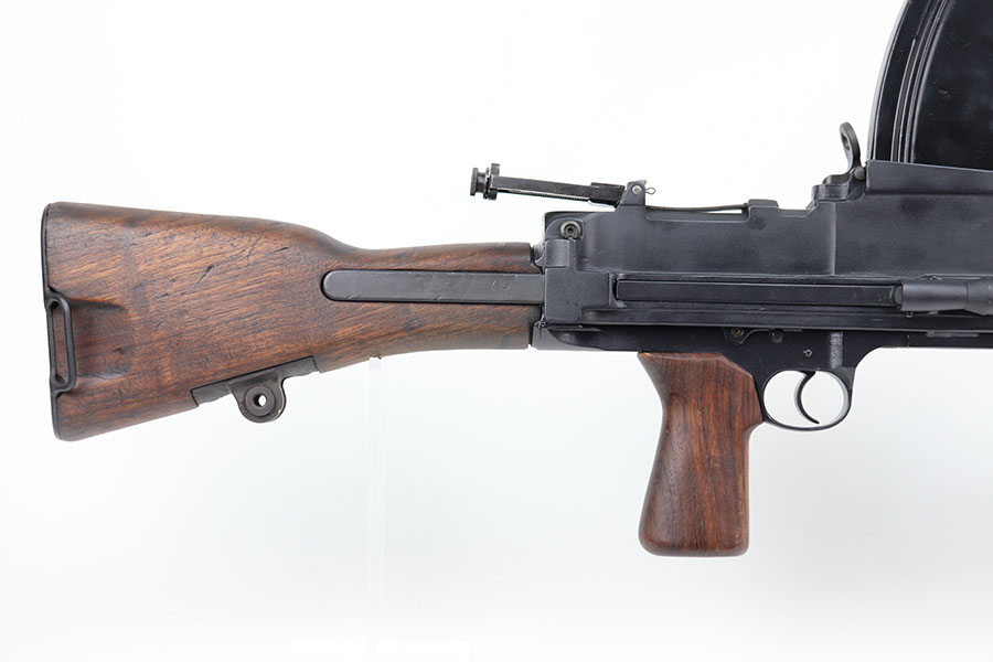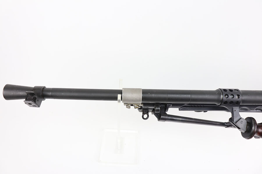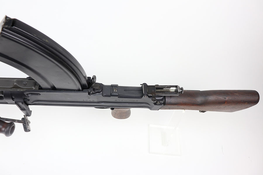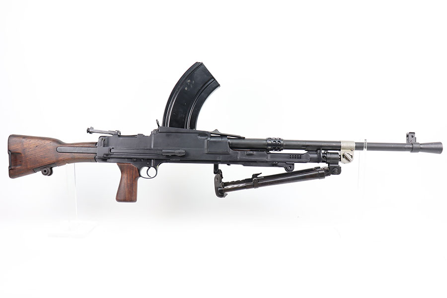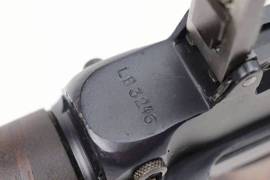 3/16/21 – This is a rare Bren Mk3 that was rebuilt in semi-auto from a matching parts kit by Historic Arms. Our consignor was the only previous owner of this piece and never fired it. It has all matching numbers throughout, including buttplate, receiver, barrel, and more. Fantastic finish with no wear. The bore has strong rifling but does need a through cleaning and has some frost throughout as the kit was built using a vintage barrel. The Bren Mk3 was a shorter and lighter Bren made by Enfield from 1944 for the war in the East and for Airborne Forces. This was similar to the Mk2 but with the light weight features of the early Mk1. With the main distinguishing feature being a shorter barrel and serrated area in front of the barrel nut. This example still has the original grease from Historic Arms lining it. Can’t currently find another example online, especially in this condition.