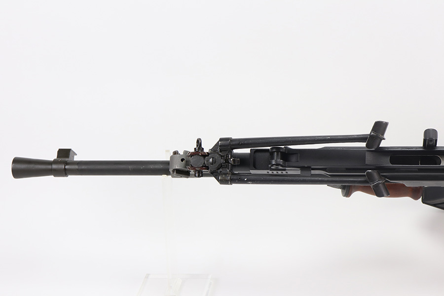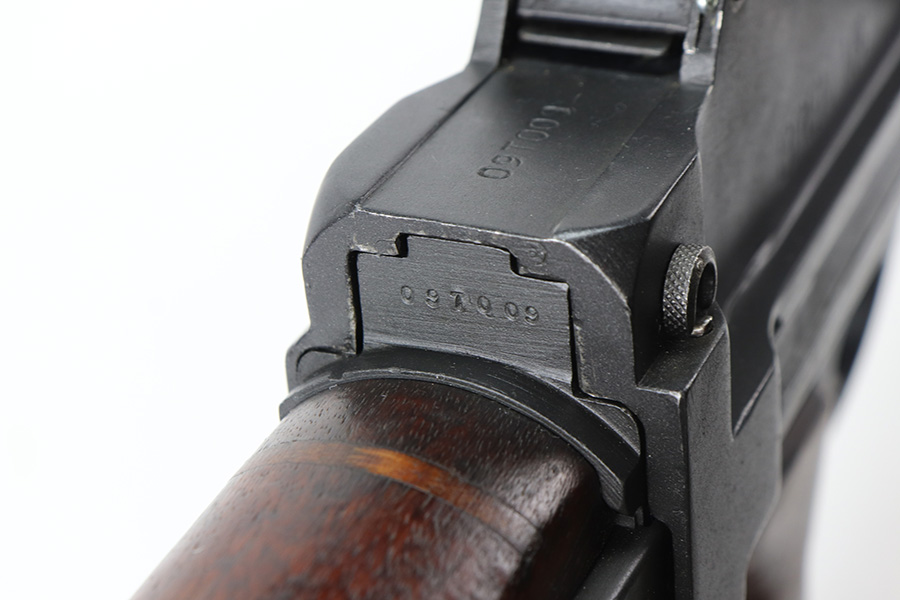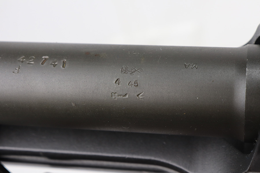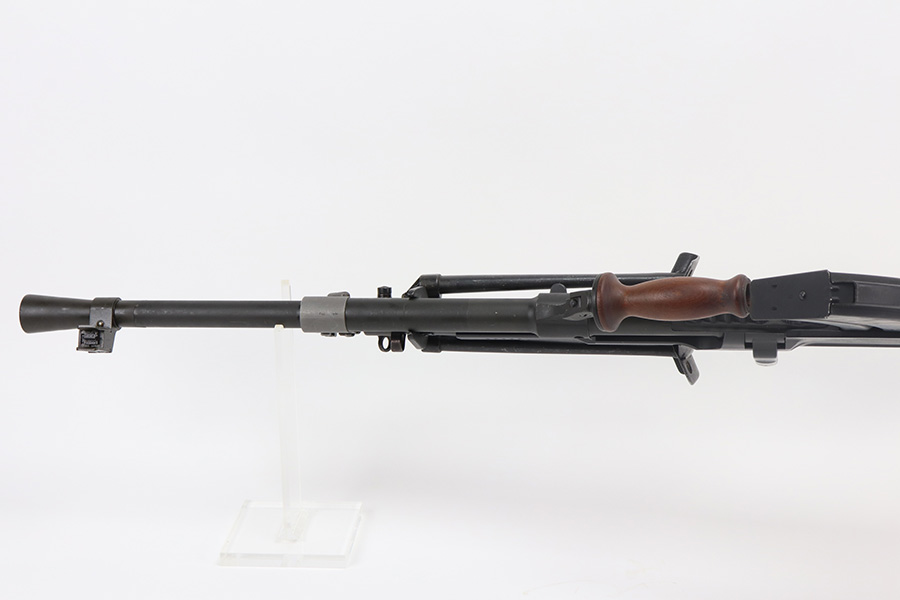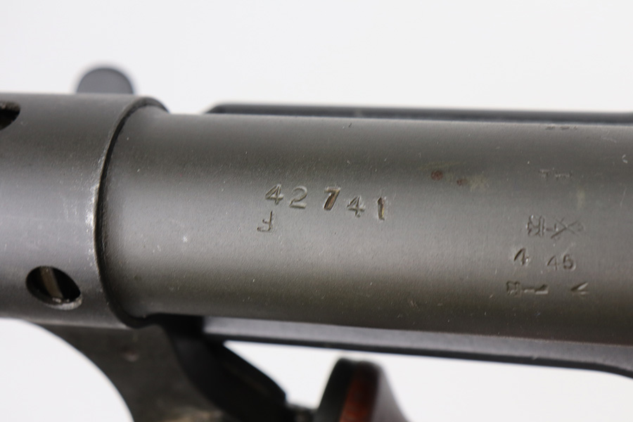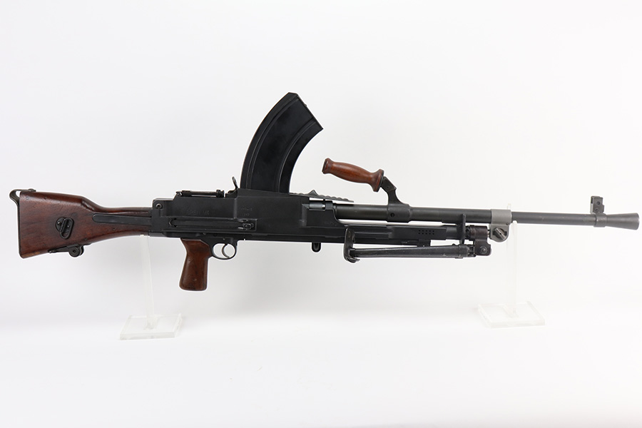 6/9/21 – This is a rare Bren Mark II that was rebuilt in semi-auto from a matching parts kit by Historic Arms. The rifle has fantastic finish with no wear. Terrific bore. The Bren Mk II was introduced in 1941, and this receiver is marked INGLIS with a 1943 date. The Mark II features a folding-leaf rear sight, bipod, fixed cocking handle and the receiver was simplified as compared to the Mark I. Also features a removable flash hider, and a sheet metal buttplate. Comes with one proper magazine. All in all a fantastic example of a rare and highly desirable World War II firearm.