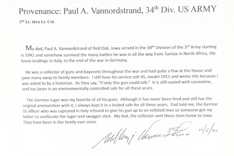 SOLD – Rare, Captured 1937 Commercial Mauser Banner Luger – With Signed Provenance Letter