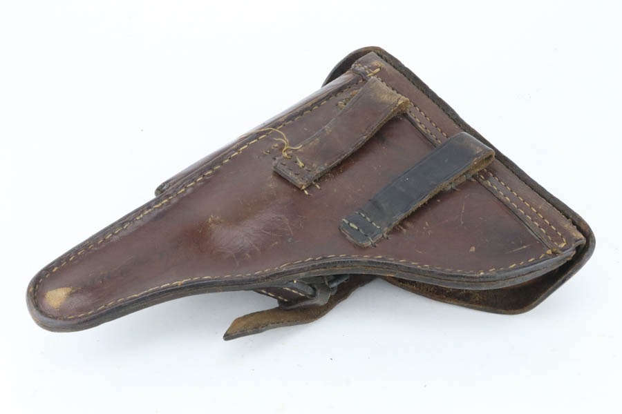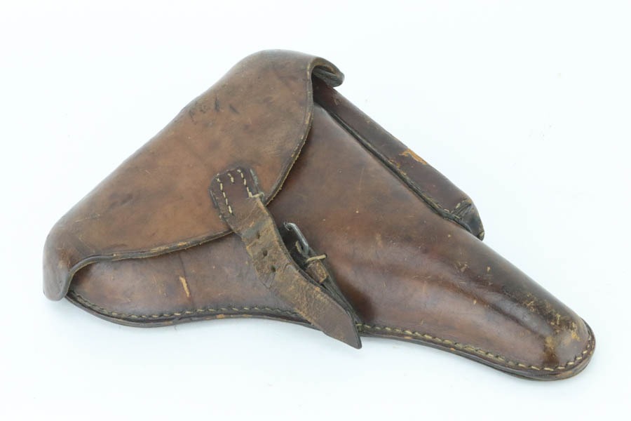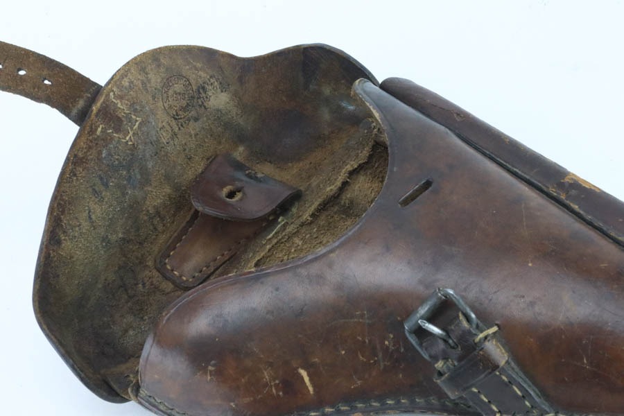 12/2/24 – This is a very nice example of rare 1937 Mauser Banner Luger sold in the commercial market. There were only about 300-400 of this variation made and about 25 reported examples. This one has all of the correct characteristics, is all matching, and has the proper “Crown U” commercial proofs. It comes as a rig with 1918-dated holster (missing its lift strap, and the stitching on one of the belt loops is missing), an Imperial marked tool, and magazine that is not matching but is only one serial number away! It also comes with a copy of a signed letter from our consignor, explaining how his father captured this gun from a German SS Officer at the end of WW2. The gun has retained about 94-95% of its original finish with minor wear on the high edges, on the side plate, and around the muzzle. Excellent straw-colored finish on the small parts. Fitted with excellent un-numbered wood grips. The bore shows obvious pitting throughout.