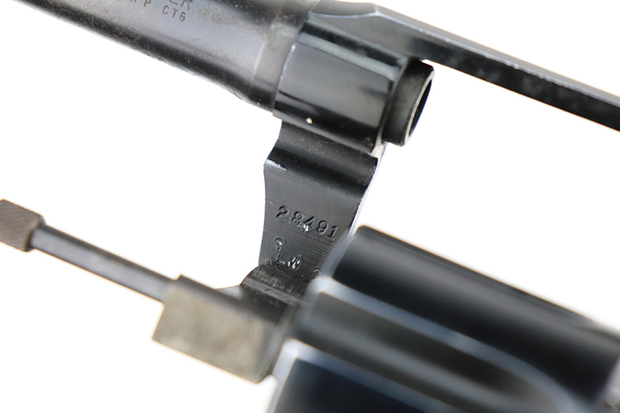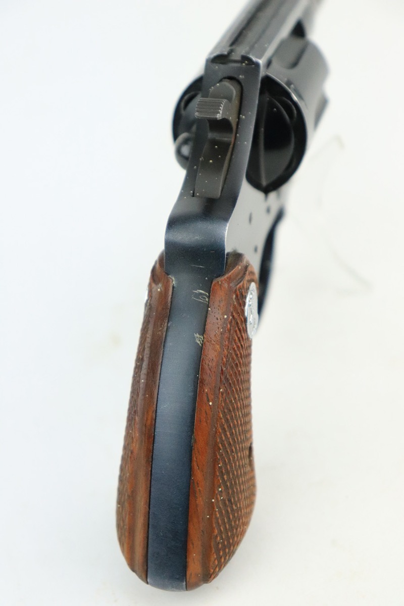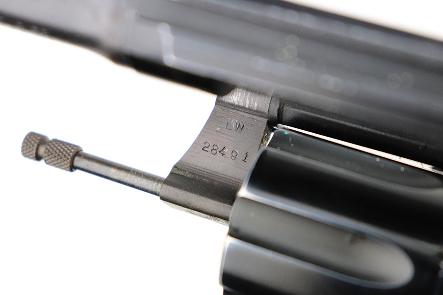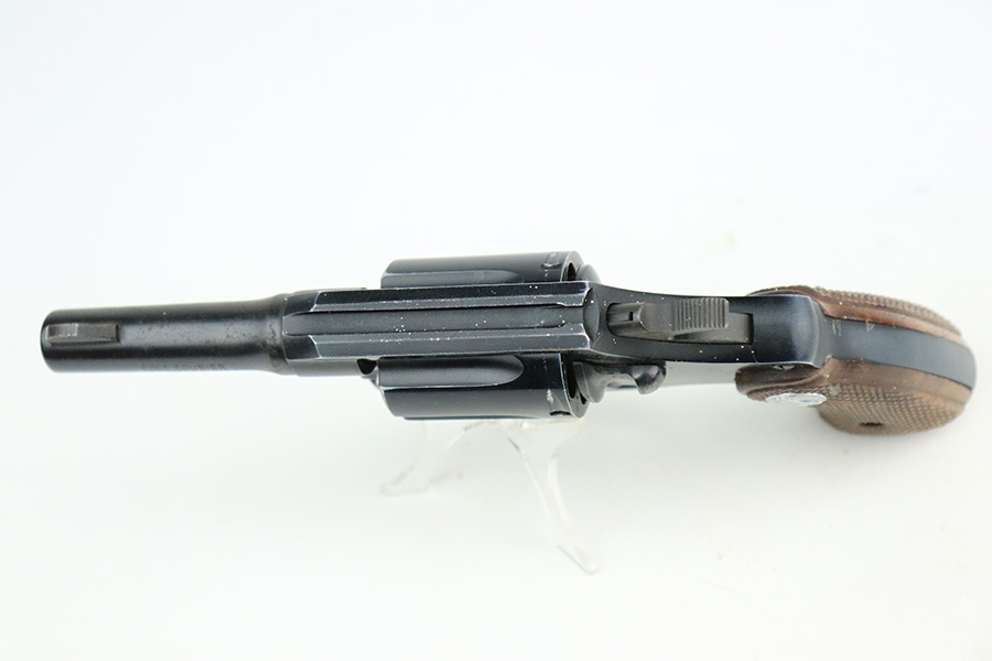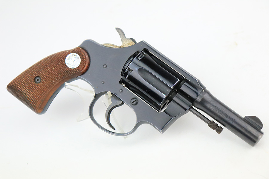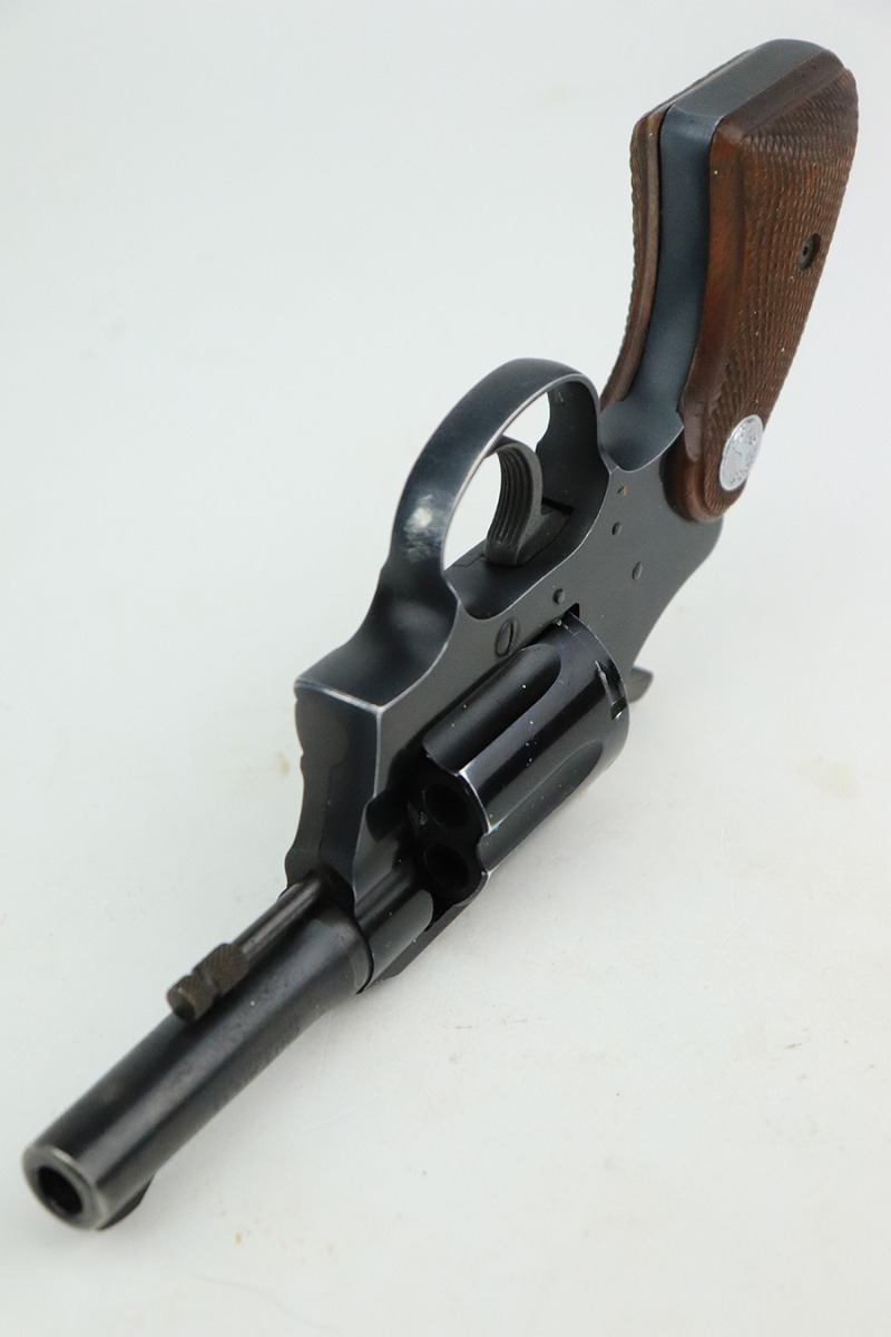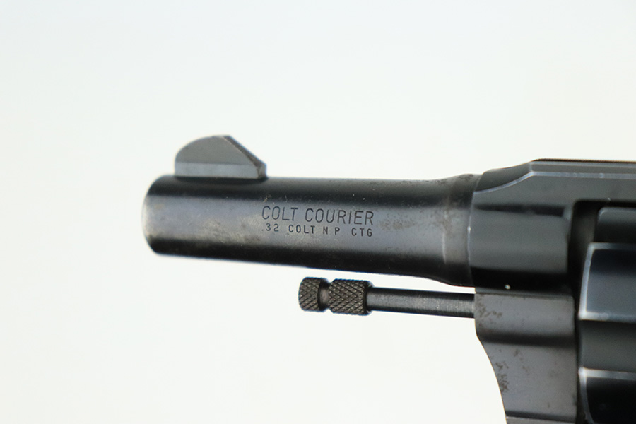7/26/22 – This is an original example of the rare Colt Courier revolver from the 1950’s. Only ~3,000 were produced, all from 1953-56. This one has a 3in barrel and is chambered for .32 New Police. This example features the alloy cylinder, and the frame is also aluminum alloy. The alloy frame features the black anodized finish, with excellent finish. Most of the wear and oxidation is on the barrel, but there is a little pinpricking on the frame. Good timing and minty bore. Nice walnut grips with the Colt medallion and minor smoothing.