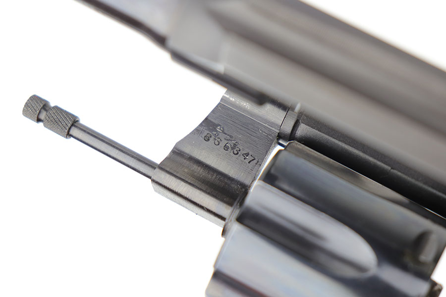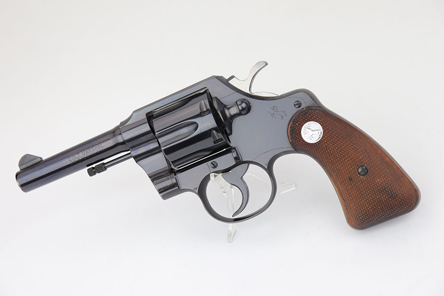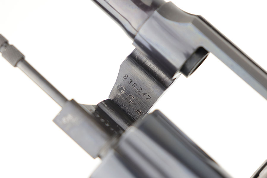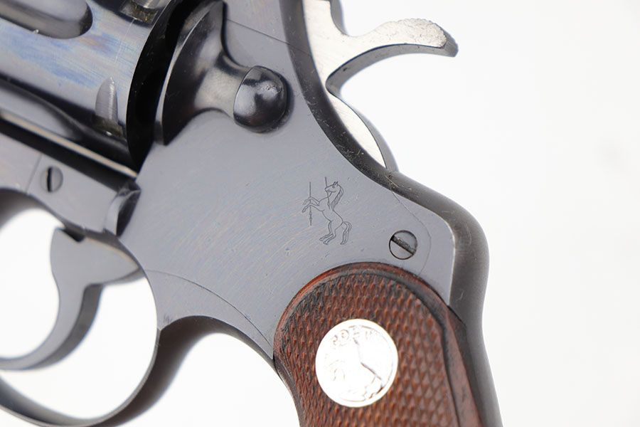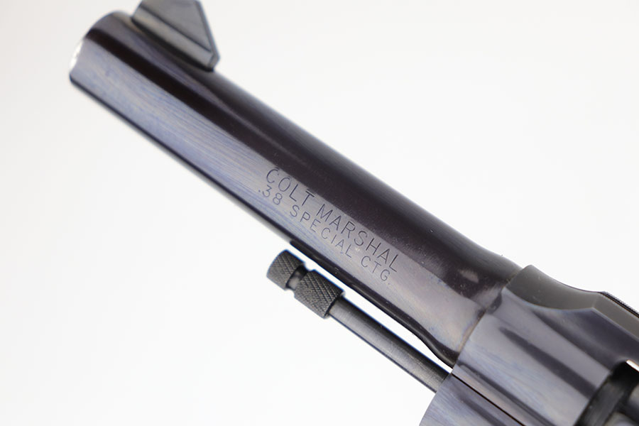 3/12/20 – This is a near-mint example of a rare Colt Marshall revolver, one of only ~2,500 produced. It has 98-99% of the original, lustrous blue, with a very minor roll mark on cylinder and a bit of muzzle wear. Minty bore and proper timing/action. The grips are in excellent condition and hand numbered to the gun internally. These were only made from 1954-56, and this one appears fairly early in the serial range.