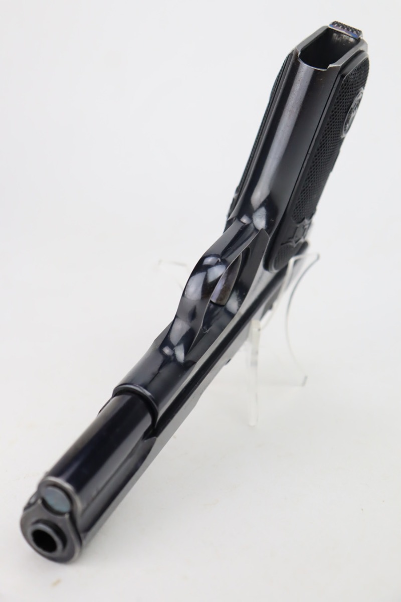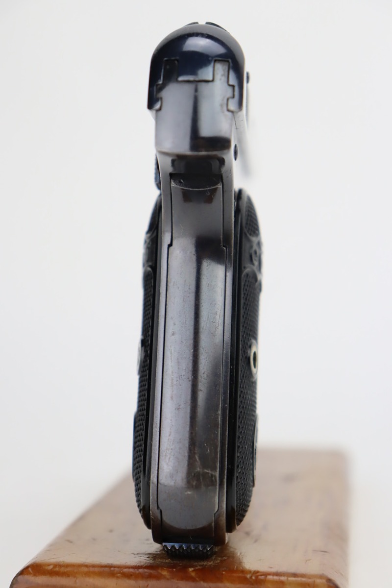 9/26/23 – This is a rare, early Colt Model 1903 Pocket Hammerless, one of the first 2,000 made and one of only 4,100 made in 1903. The pistol is in excellent condition with about 94-95% of the blue remaining. Mnior high edge wear, mostly on the slide and around the muzzle. Minor oxidation on the front strap and grip safety. Beautiful fire blue on the small parts. Excellent Colt hard rubber grips with no cracks. Minty bore. Later, unmarked blued magazine.
