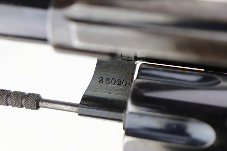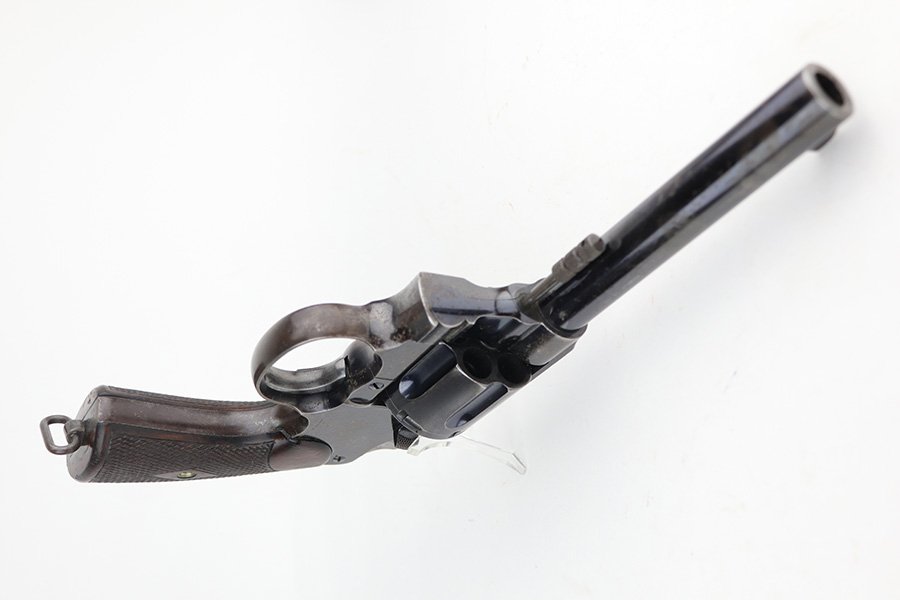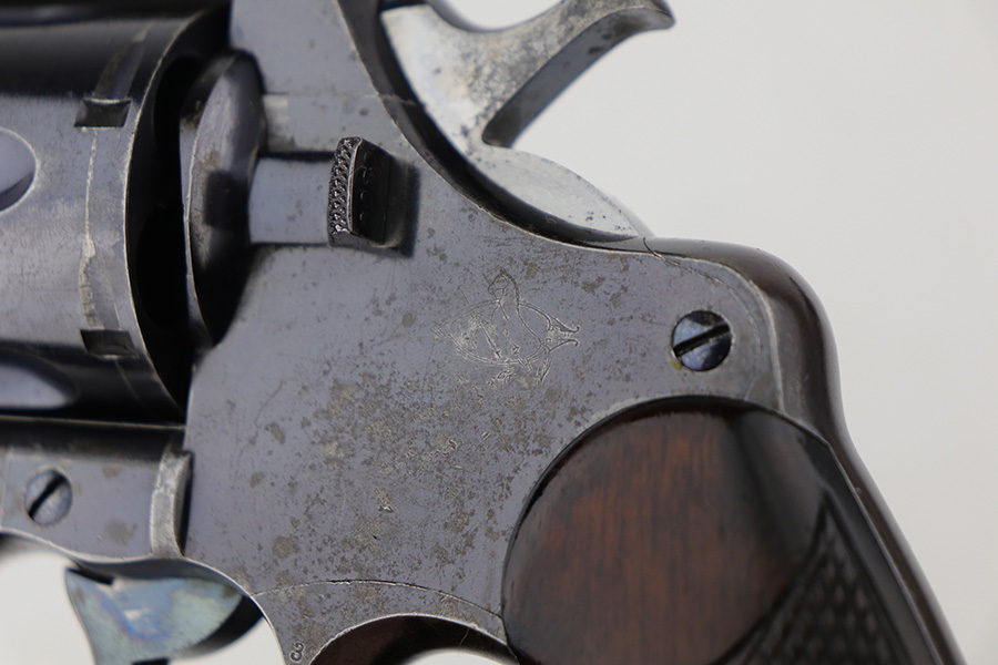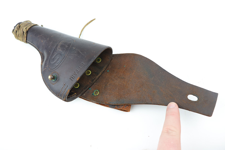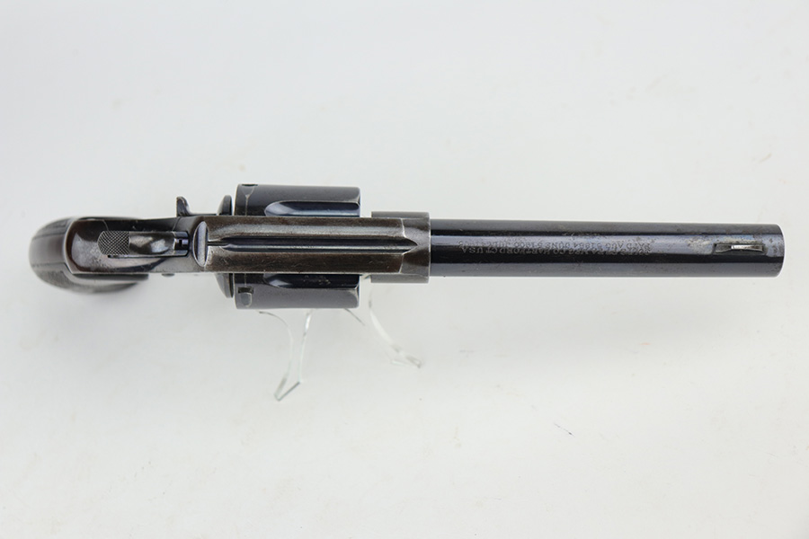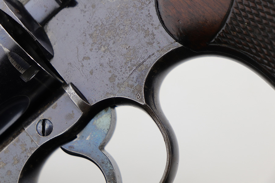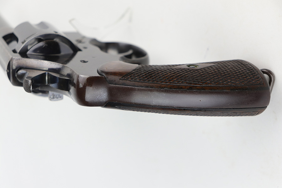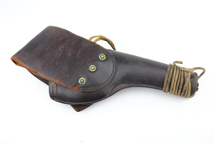 10/1/21 – This is a scare Colt Model 1909 issued to the USMC with a correct Rock Island made holster dated 1911. It retains about 60% of its original high polish blued finish, with some light pin pricking on the left side of the frame. The screws are clean and show some remaining fire blue finish. The bore is near mint and the action works properly in both single and double action. The grips are original and unique to the Model 1909. They are in excellent condition and both sides of the grip are numbered to the gun on the inside. Overall, this is a hard to find, rare variation in very nice, original condition.